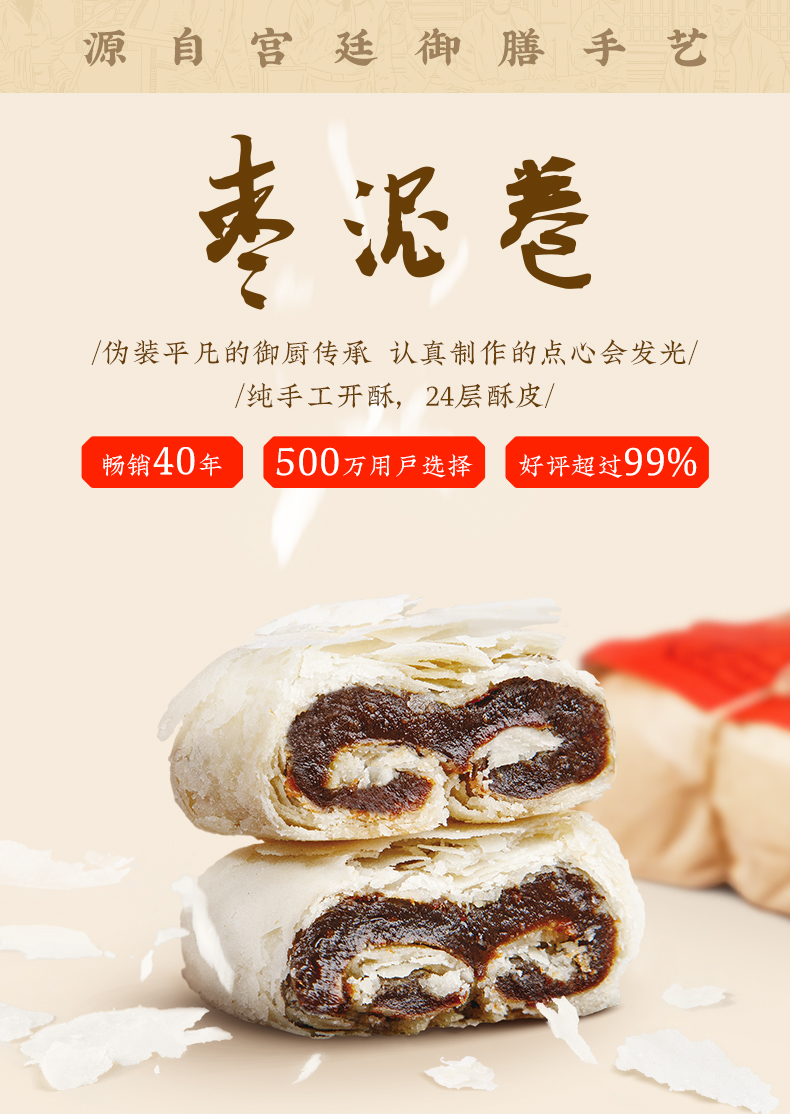 祥禾饽饽铺-镇店之宝枣泥卷250g/6枚*3包手工糕点