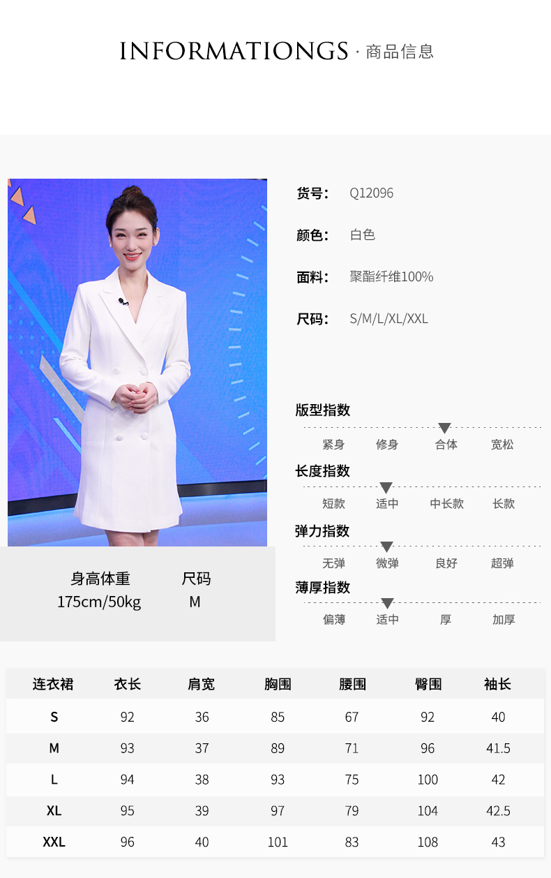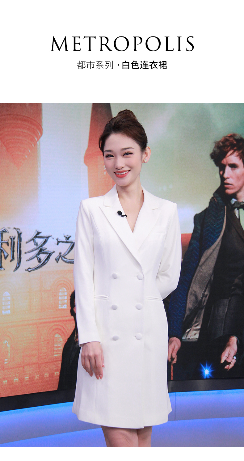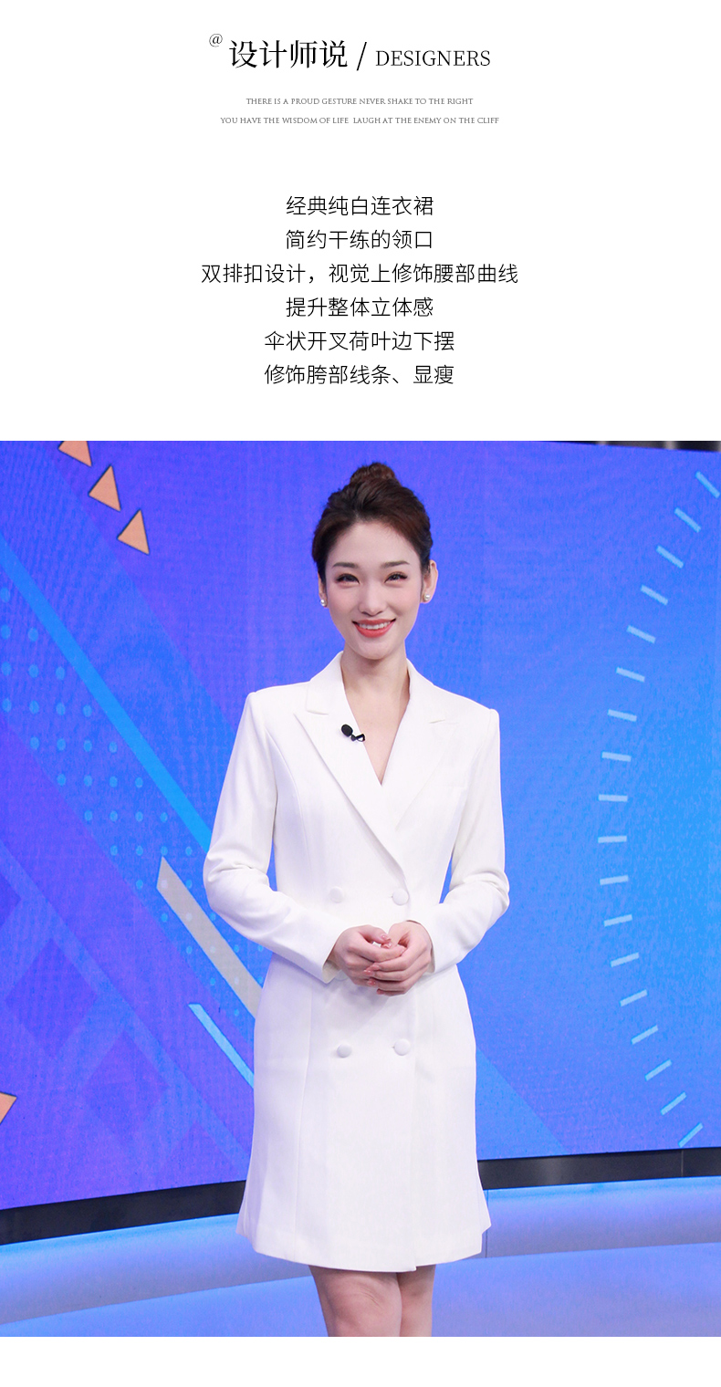 IWY/主持人正装女气质白色西装连衣裙时尚高端双排扣收腰职业裙工作服Q12096