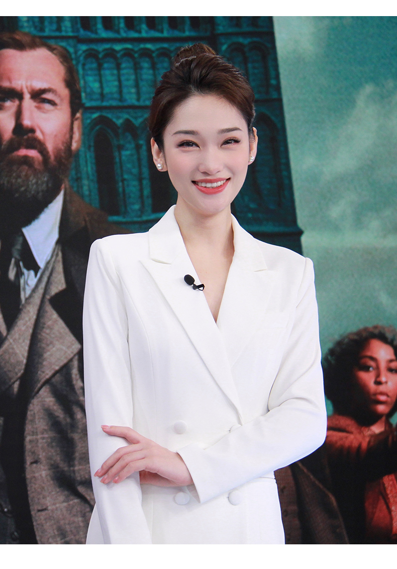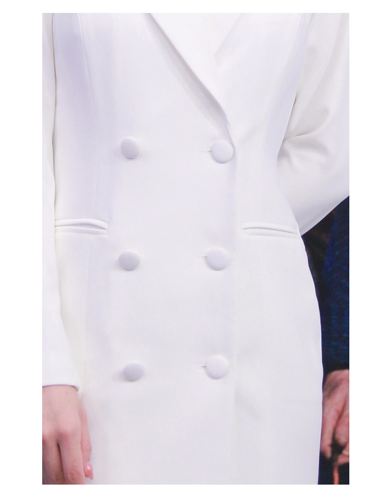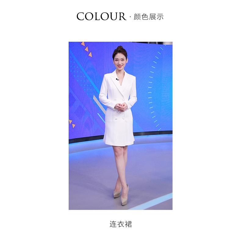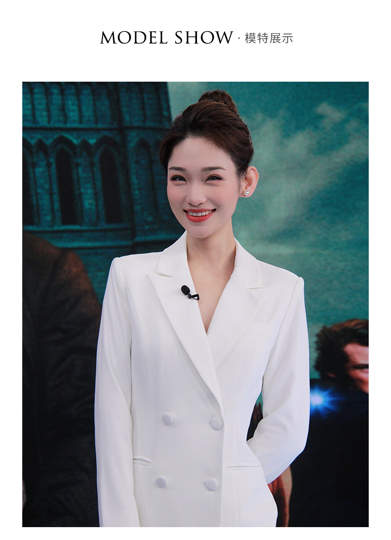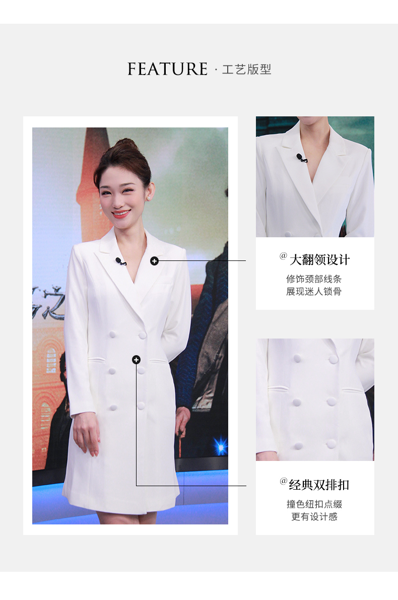 IWY/主持人正装女气质白色西装连衣裙时尚高端双排扣收腰职业裙工作服Q12096