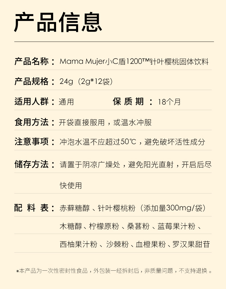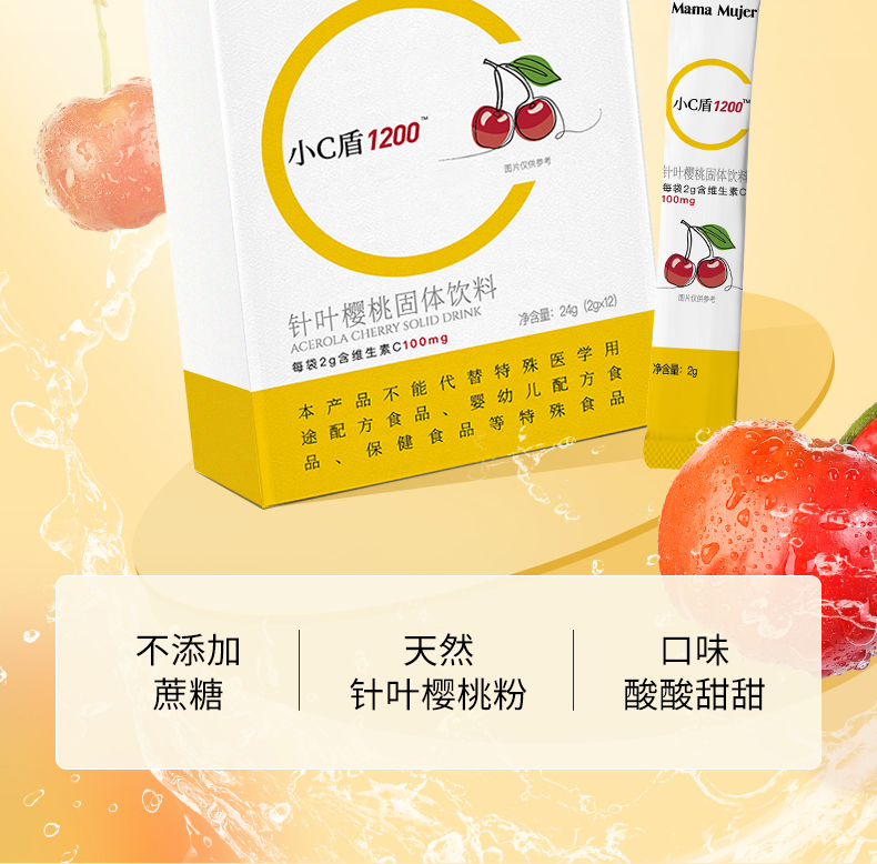 Mama Mujer 小C盾1200™针叶樱桃固体饮料(2g*12条)