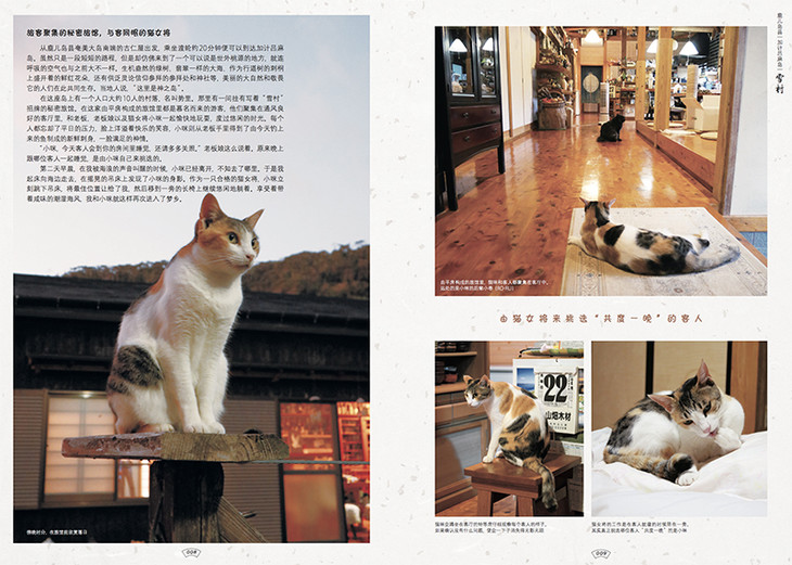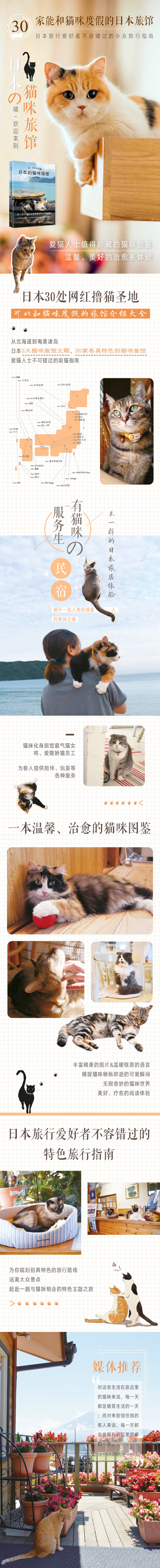 北至北海道,南至奄美群岛,《喵~欢迎来到日本的猫咪旅馆》为您介绍,能和各种可爱猫咪一起度假的30家日本旅馆。这些旅馆外表看来平平无奇,真正吸引客流量的却是可以萌化您的猫咪。来住宿的客人可以享受将猫咪带进房间的陪伴服务,当然也接受客人带自家的猫咪一起入住,不住宿的客人也可以单纯在旅馆的咖啡厅内与猫咪玩耍。能和猫咪玩耍,让猫咪陪睡,甚至还能把合眼缘的猫咪领养回家……这大概是所有爱猫之人的梦想了。旅馆里的猫咪身娇体软,性格各异。客人享受猫咪陪伴的同时,猫咪也在挑选客人,有些“网红”猫咪甚至还有自己的工作时间。