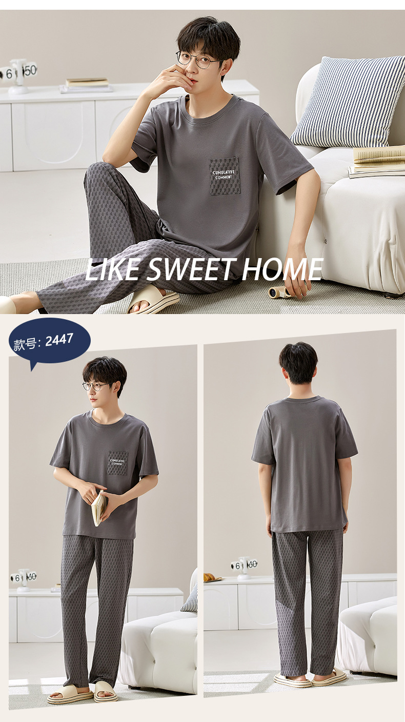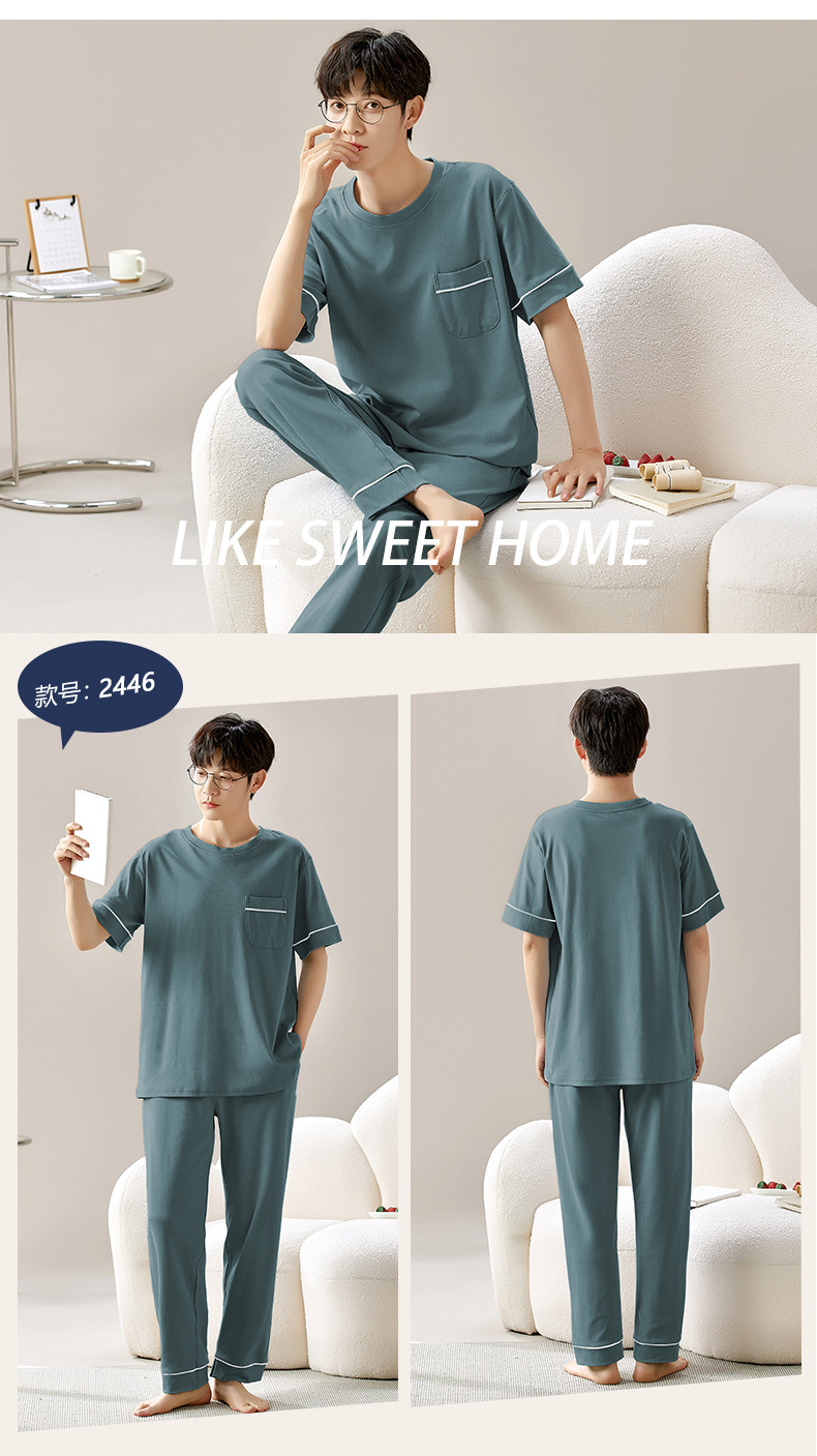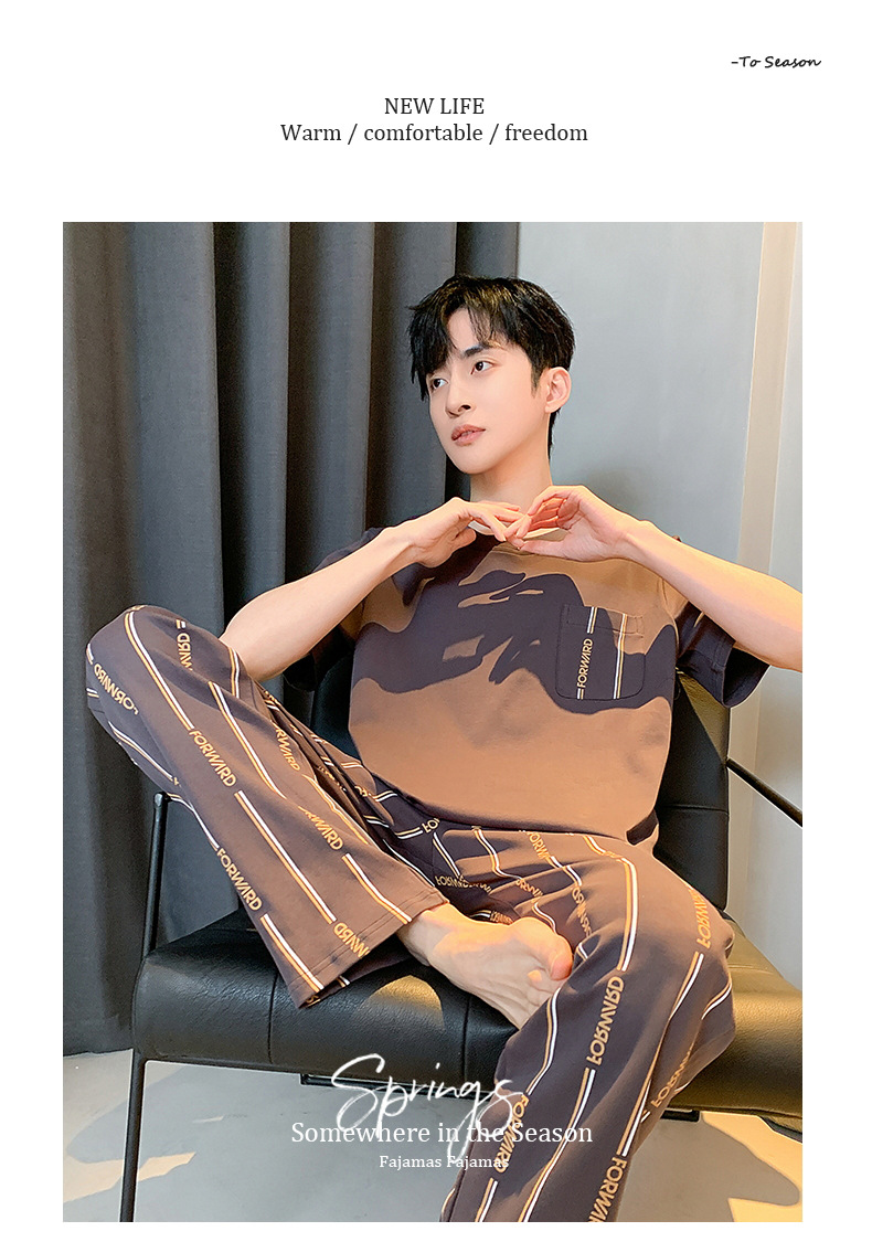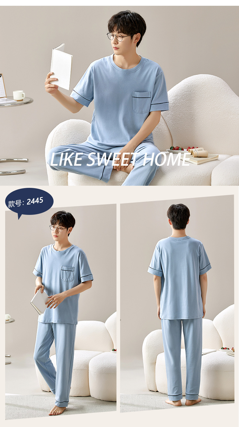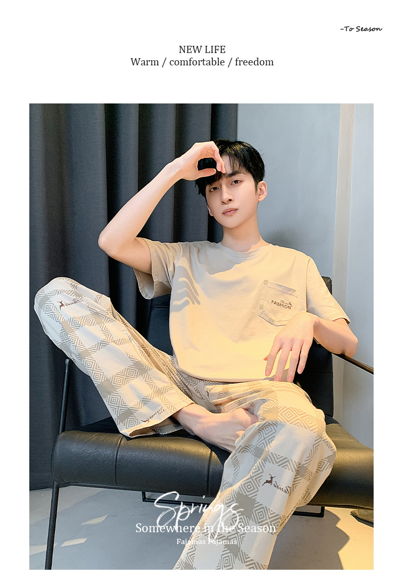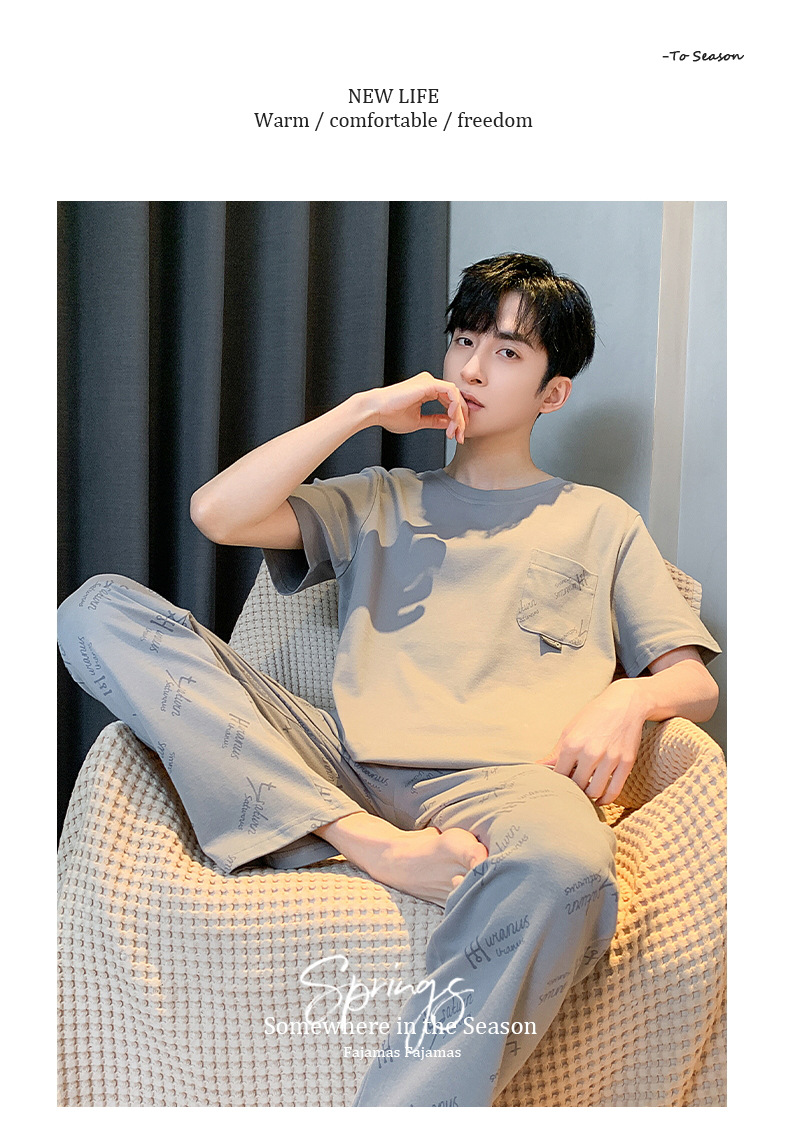 【限时秒杀69元/套】2024新款男士睡衣短袖长裤套装 可外穿休闲家居服套装