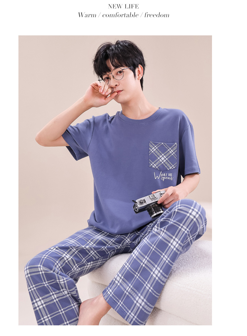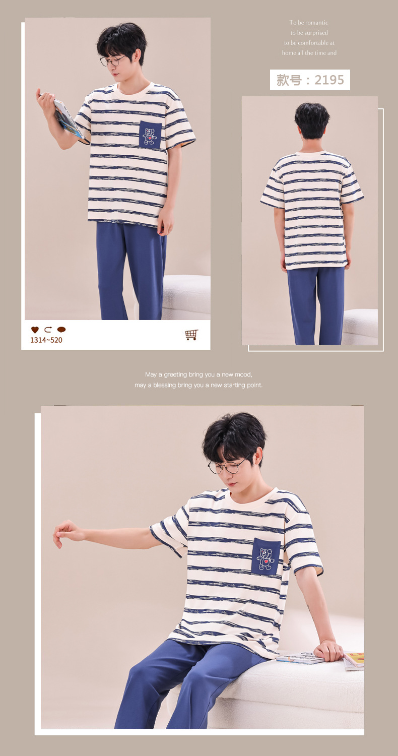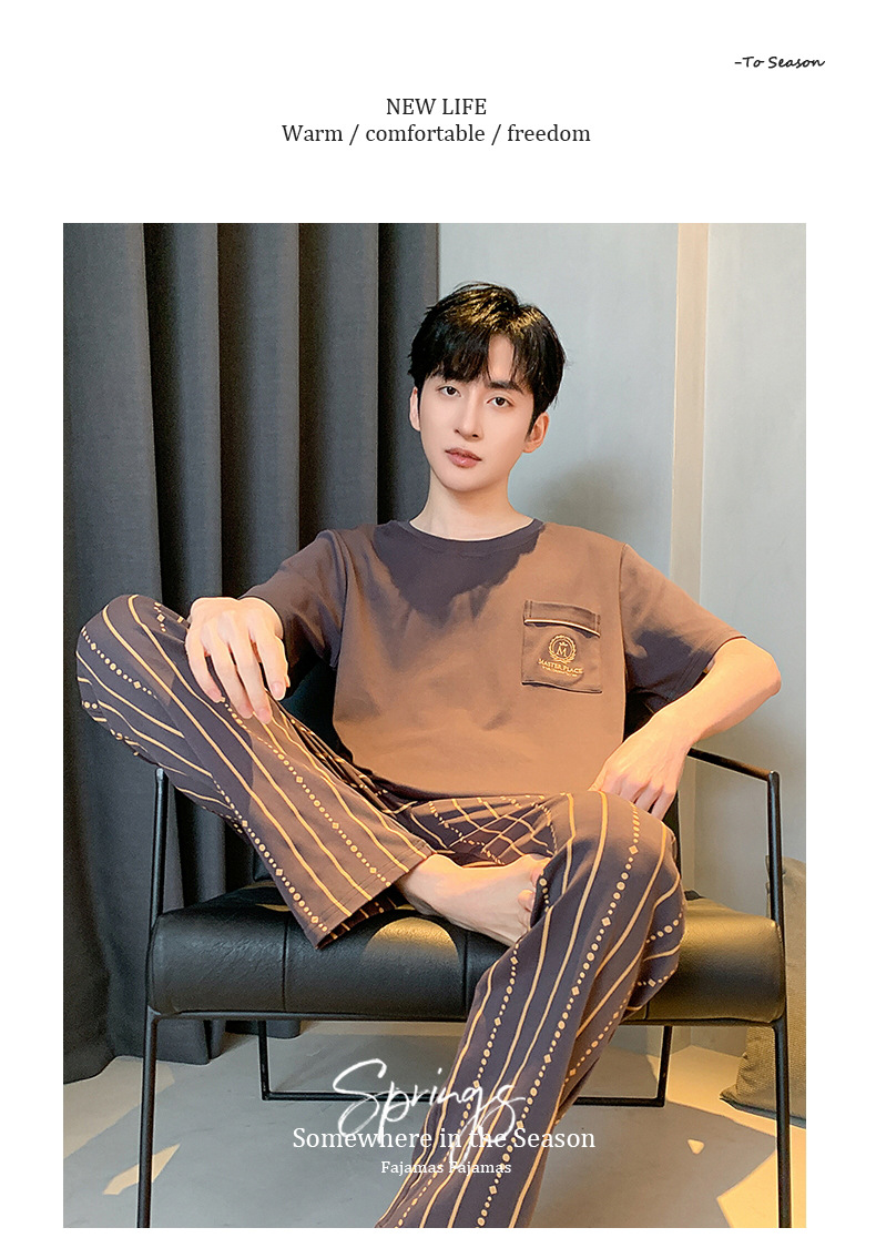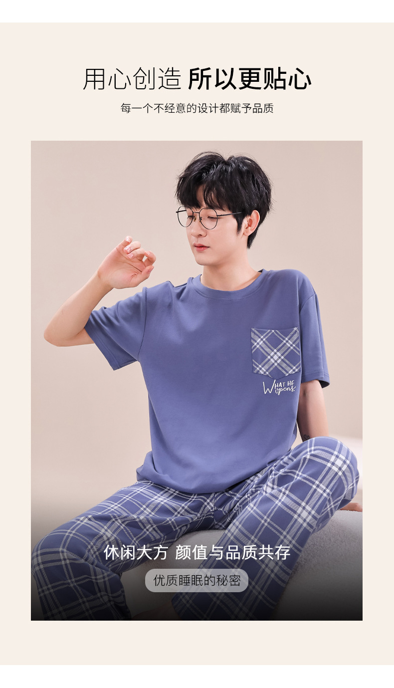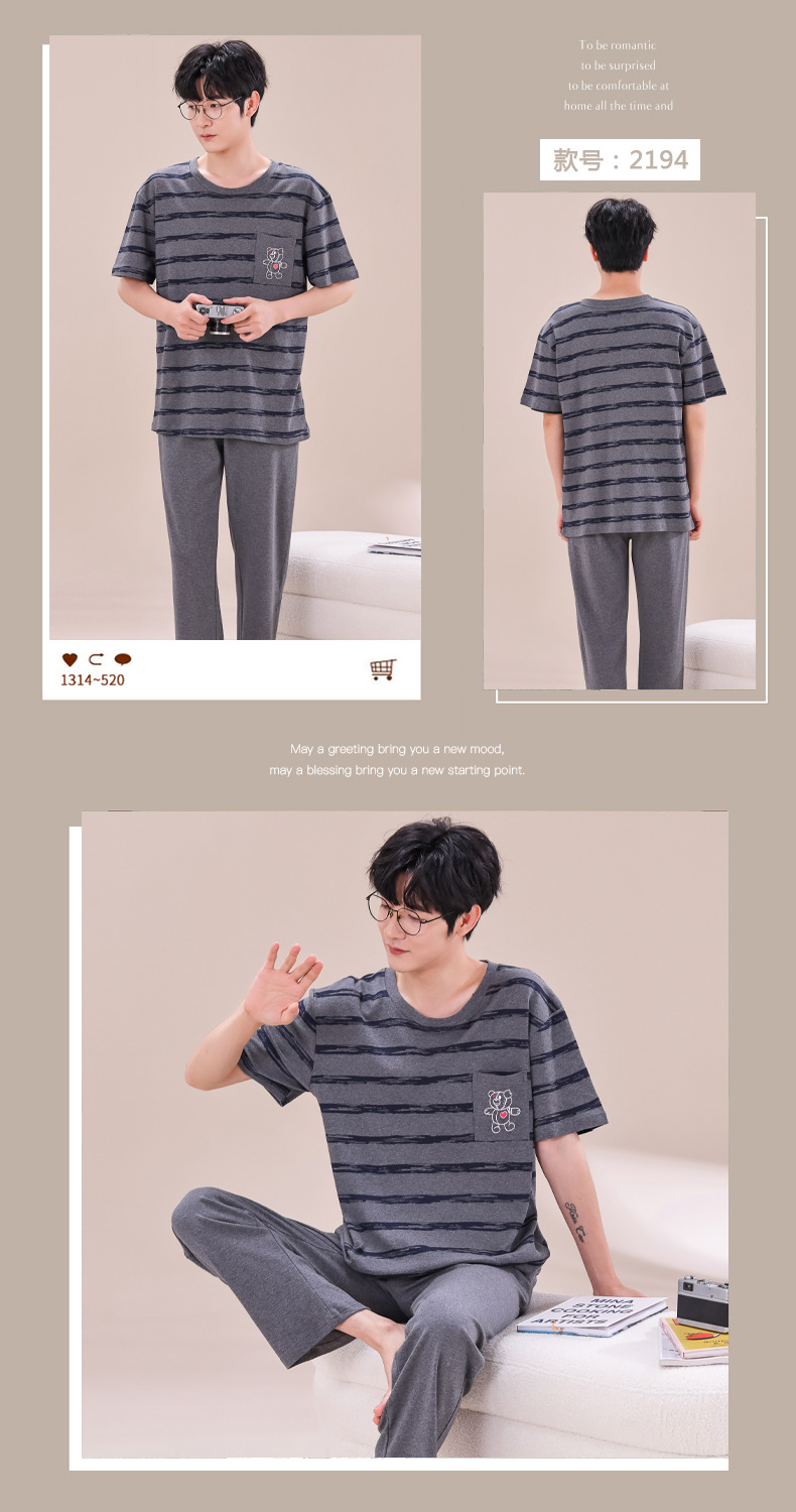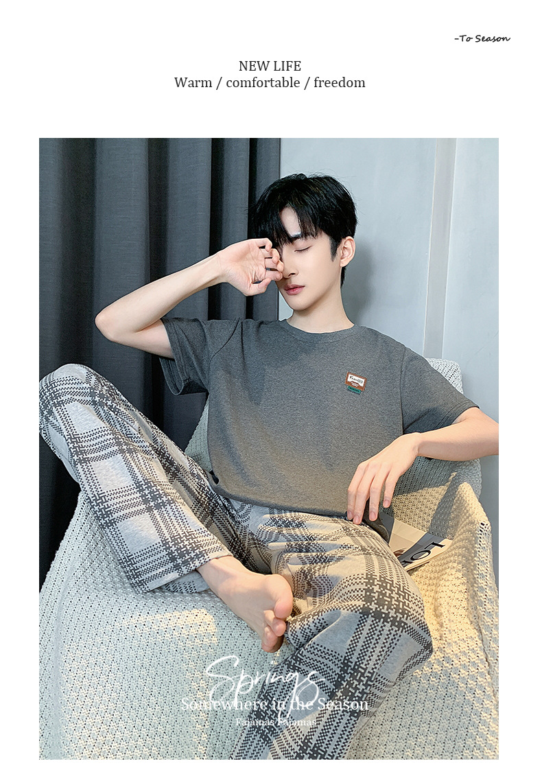 【限时秒杀69元/套】2024新款男士睡衣短袖长裤套装 可外穿休闲家居服套装
