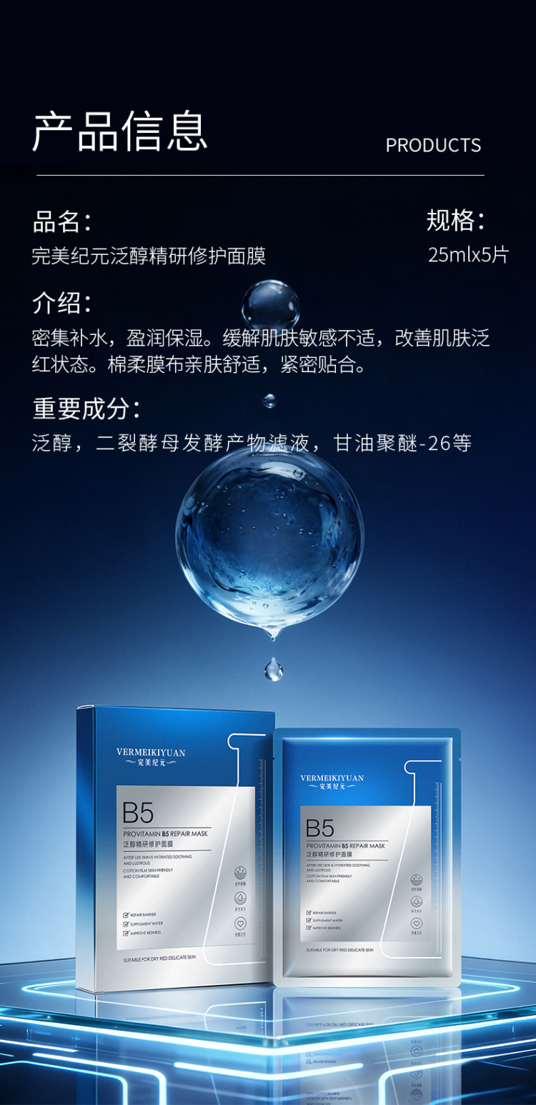 完美纪元泛醇精研修护面膜(25ml*5片/盒)*2 B5面膜