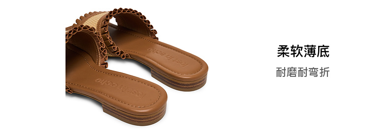lost in echo2025年春夏新款羊皮度假风草编薄底一脚蹬凉拖鞋女