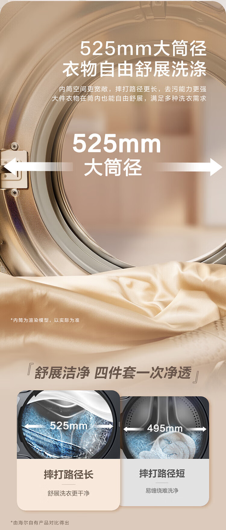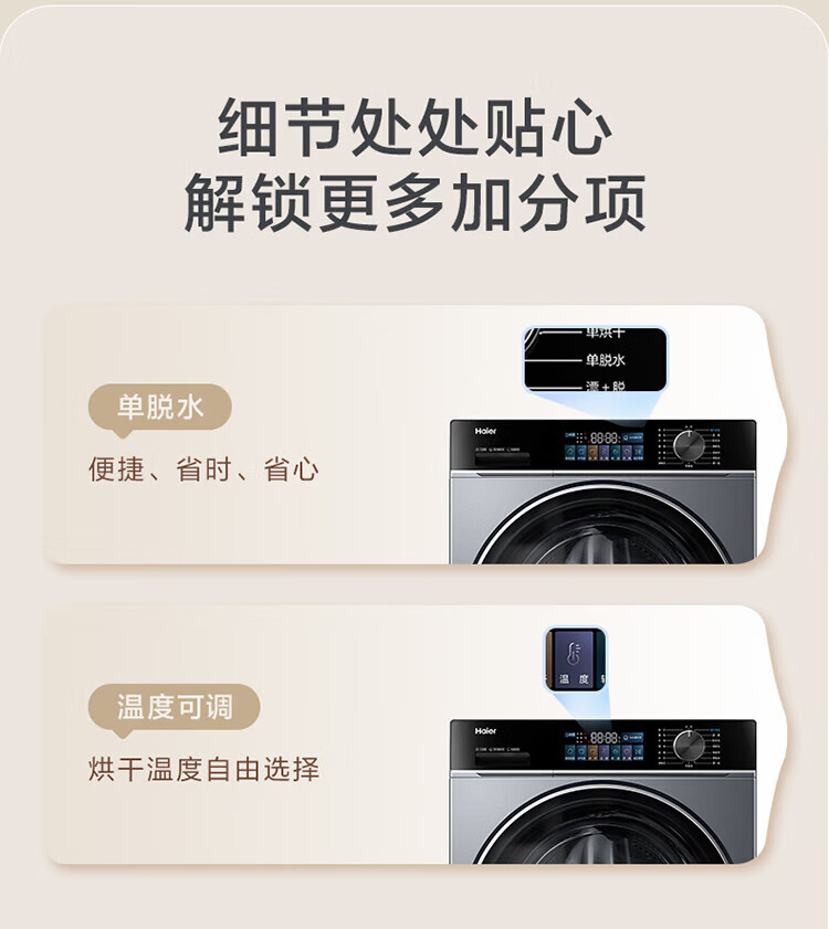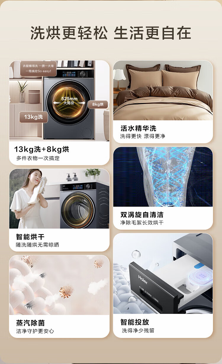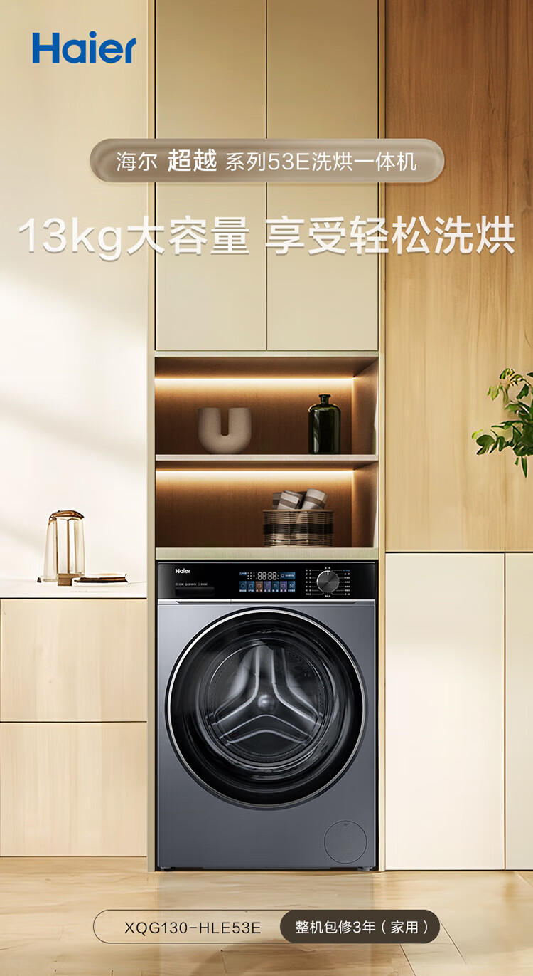 海尔13公斤大容量精华洗 滚筒洗衣机全自动洗烘一体机 超薄懒人家用525大筒径 家电补贴 XQG130-HLE53E