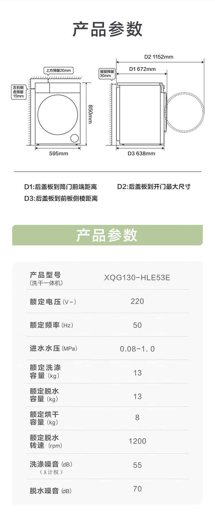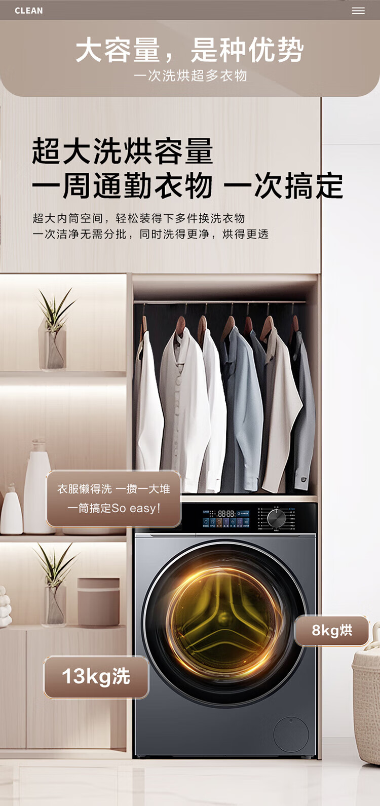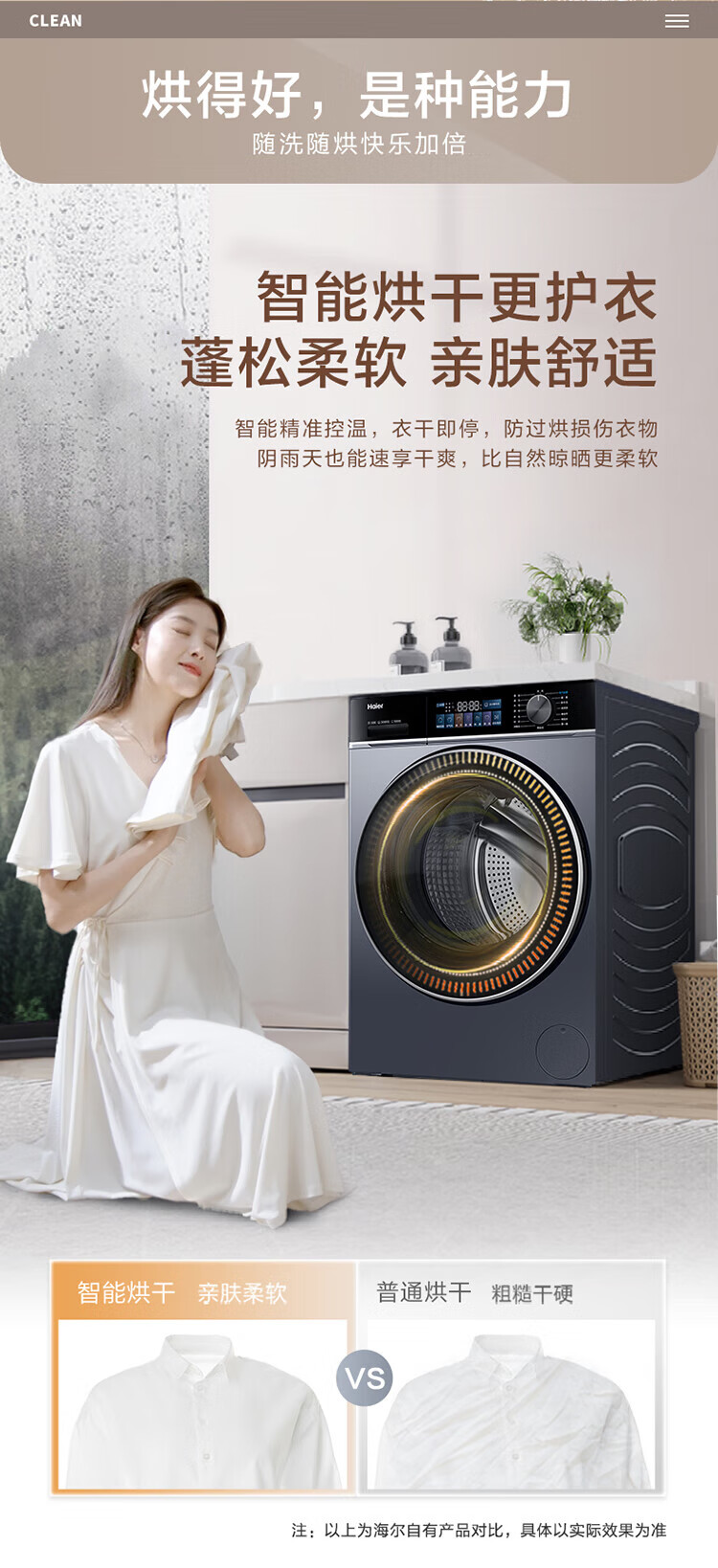 海尔13公斤大容量精华洗 滚筒洗衣机全自动洗烘一体机 超薄懒人家用525大筒径 家电补贴 XQG130-HLE53E