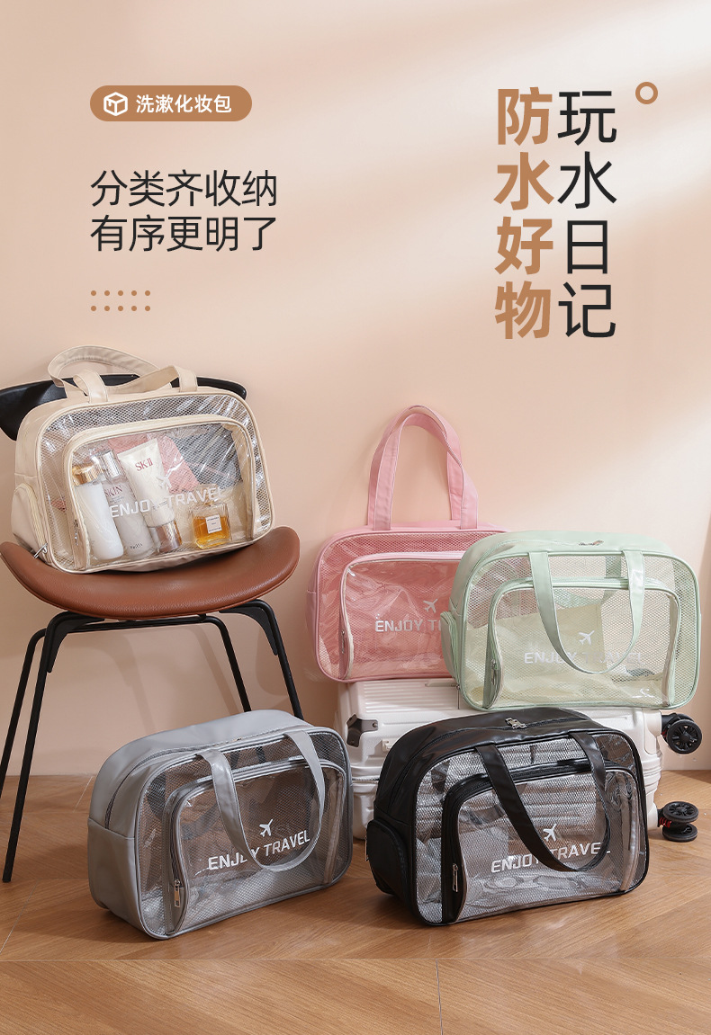 【整套运动装备!只需一包带走】透明可视,查找一目了然,防水沙滩包干湿分离健身运动包洗漱化妆包收纳泳镜泳衣游泳包。rb