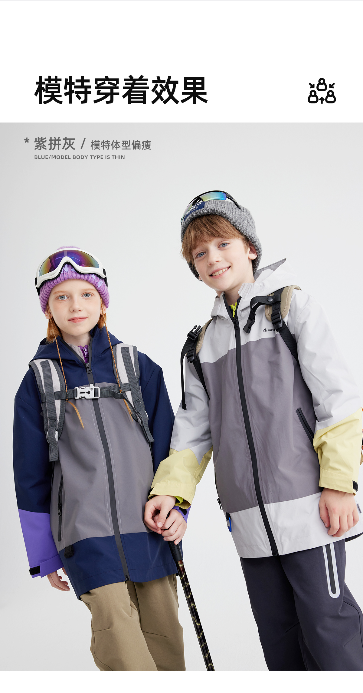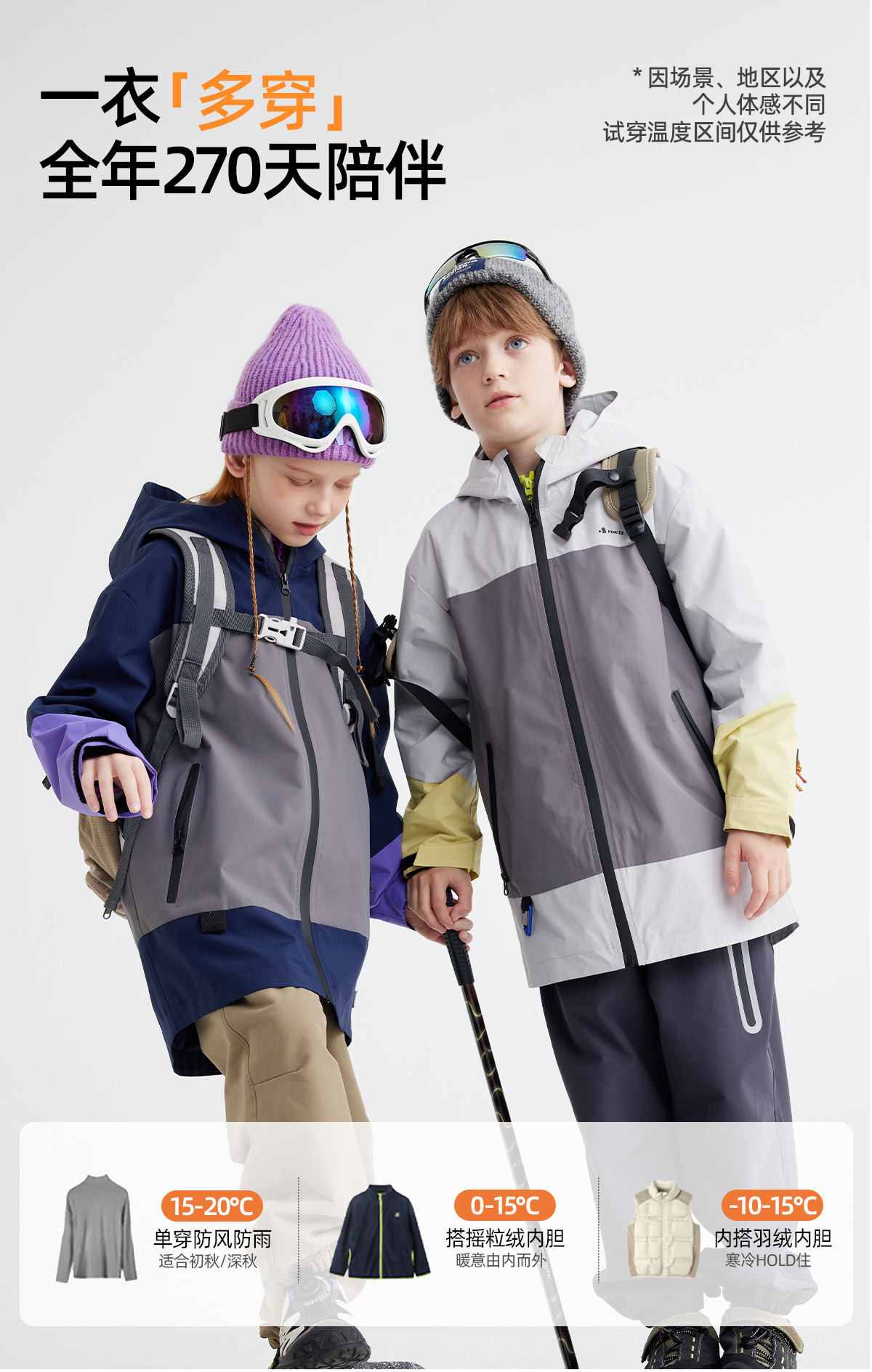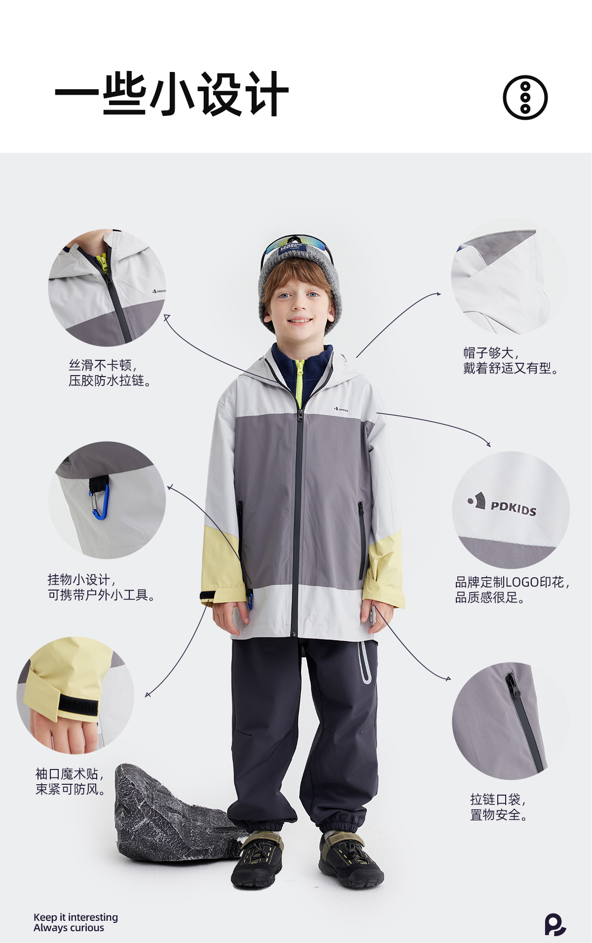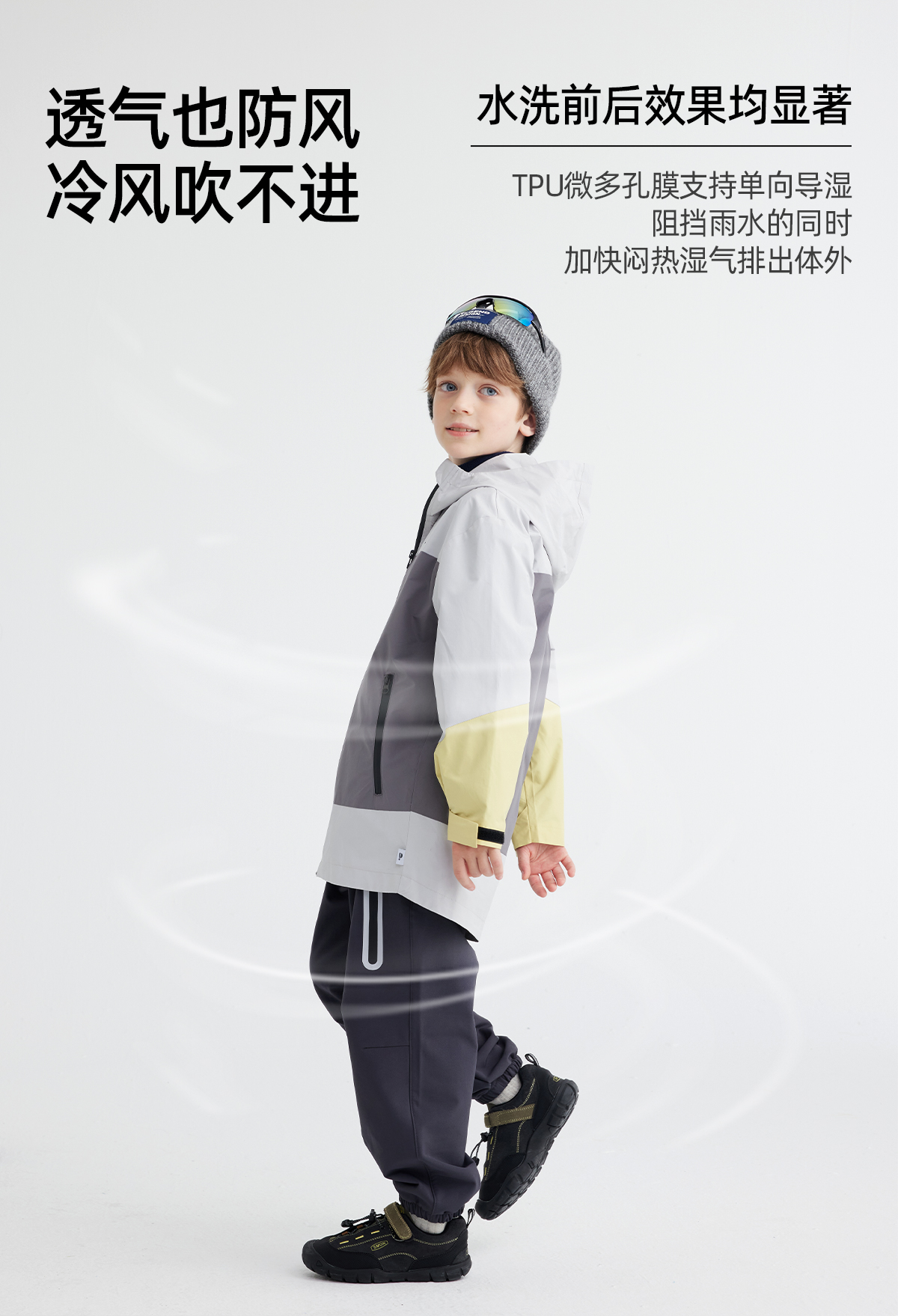 【软壳三合一系列】儿童户外山系连帽拼色外套 PQWT2413