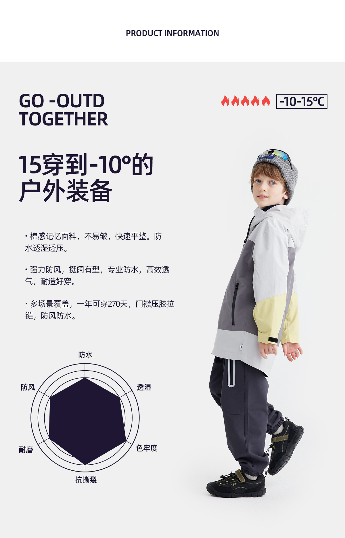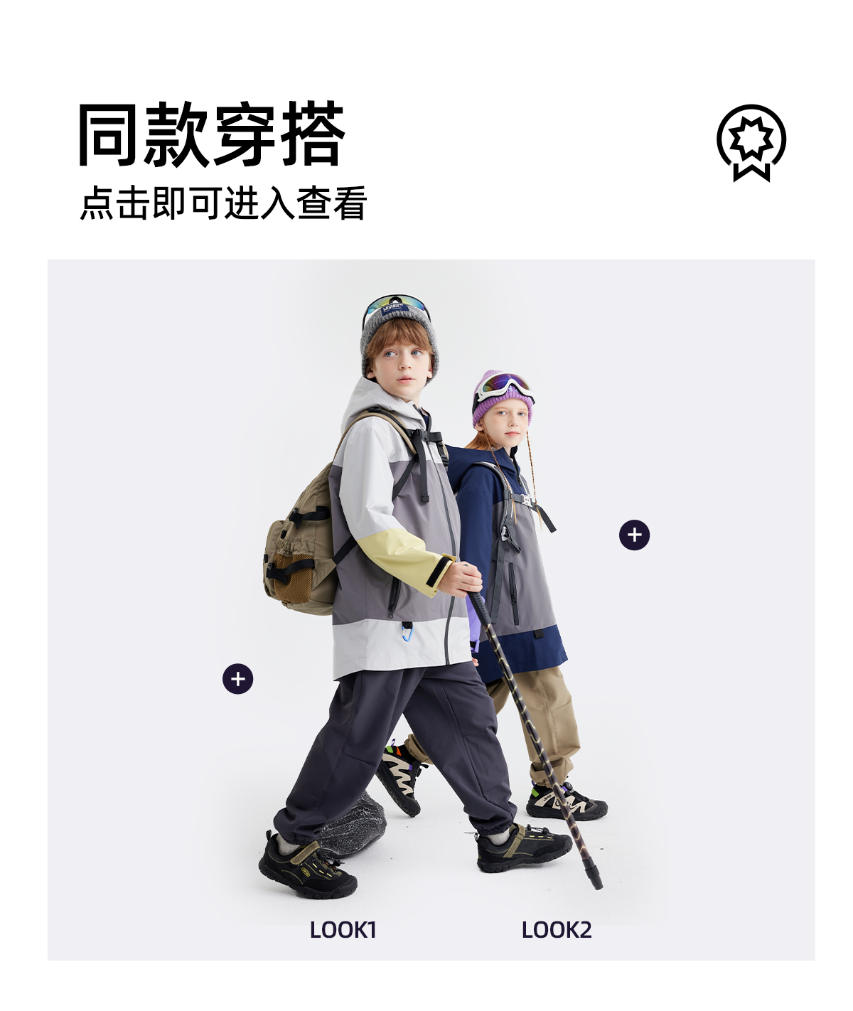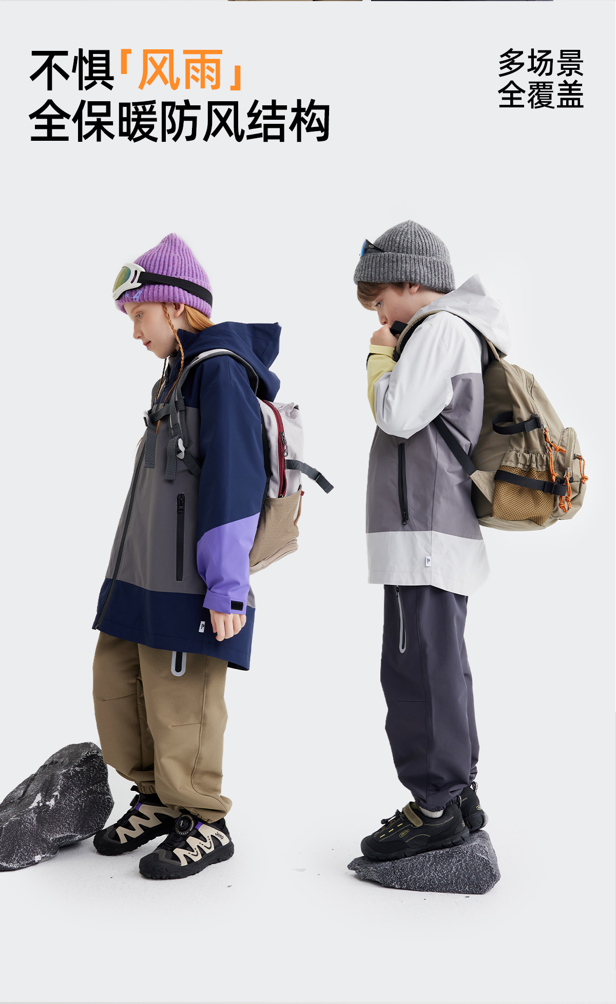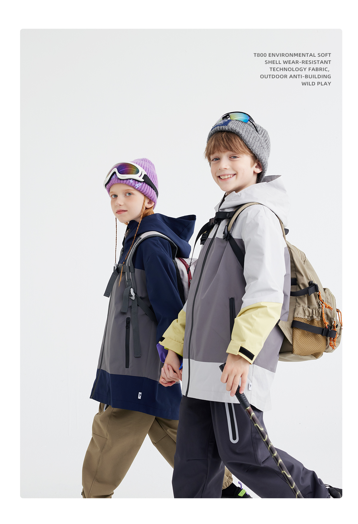 【软壳三合一系列】儿童户外山系连帽拼色外套 PQWT2413