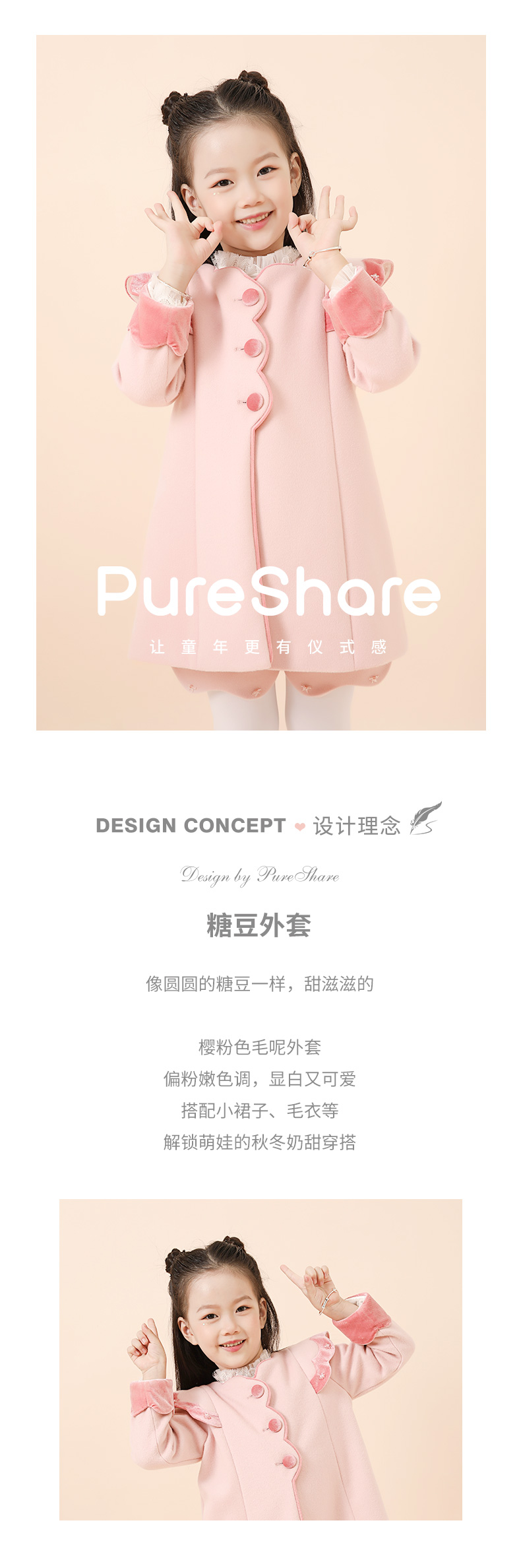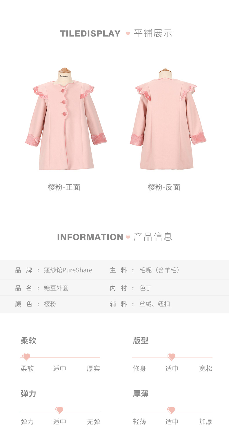 PureShare女童公主裙新款时髦加厚毛呢秋冬款连衣裙-糖豆外套