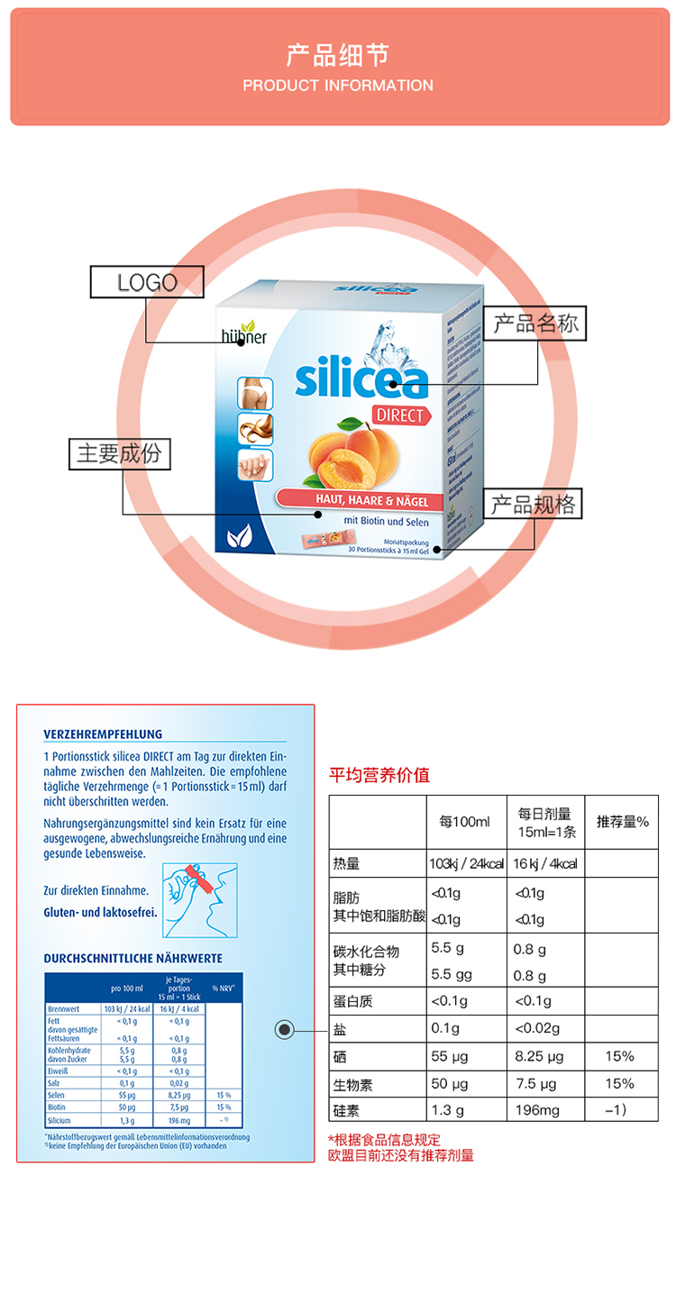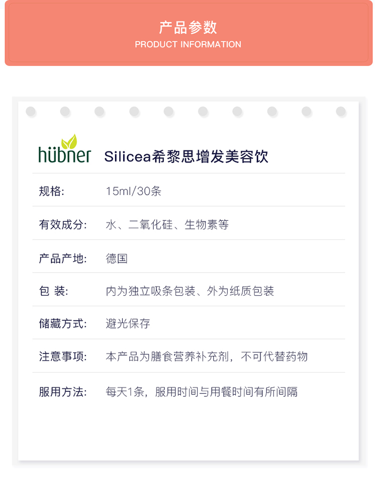 德国原装huebner郝柏娜希黎思硅素silicea增发护发口服液生发防脱30条