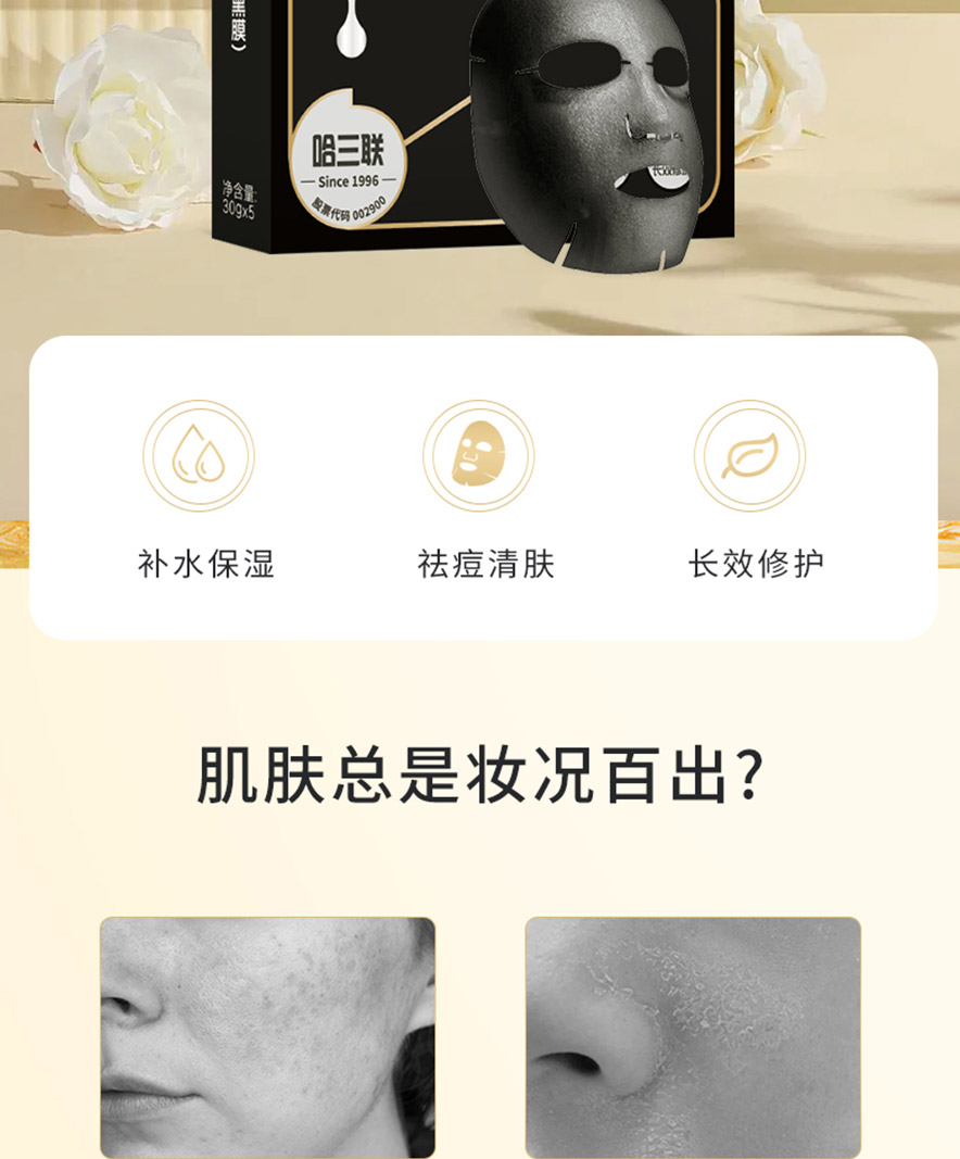 纪念日百货哈三联透明质酸钠修护黑面膜5片面膜162344586