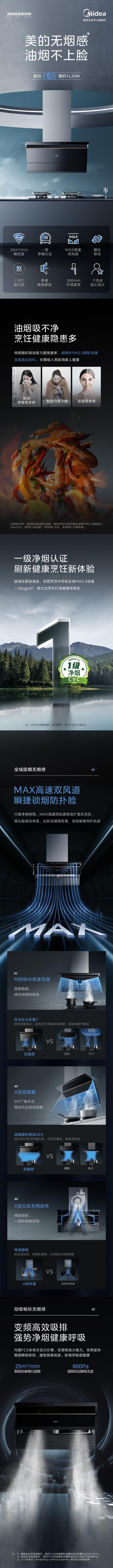 美的(Midea)(510249 )美家系列 侧吸式油烟机 25立方大风力 高温蒸汽洗 挥手智控 超薄平嵌橱柜 厨房家用油烟机 YL25M 【超薄油烟机】 强劲吸力