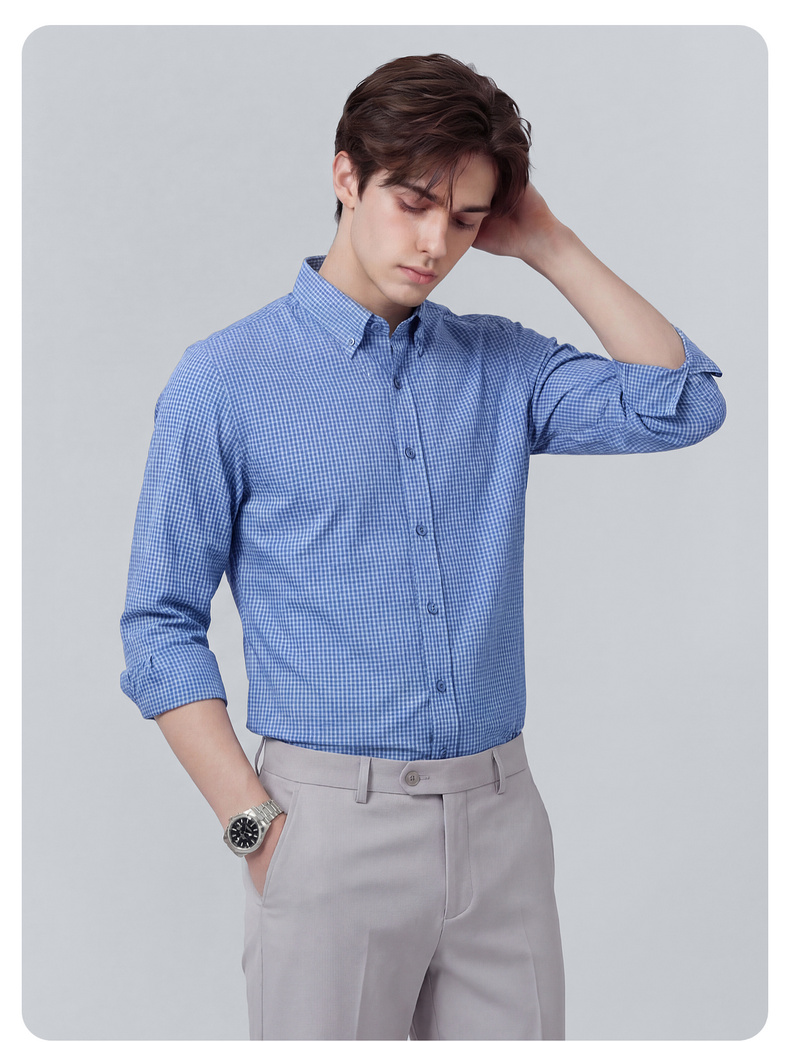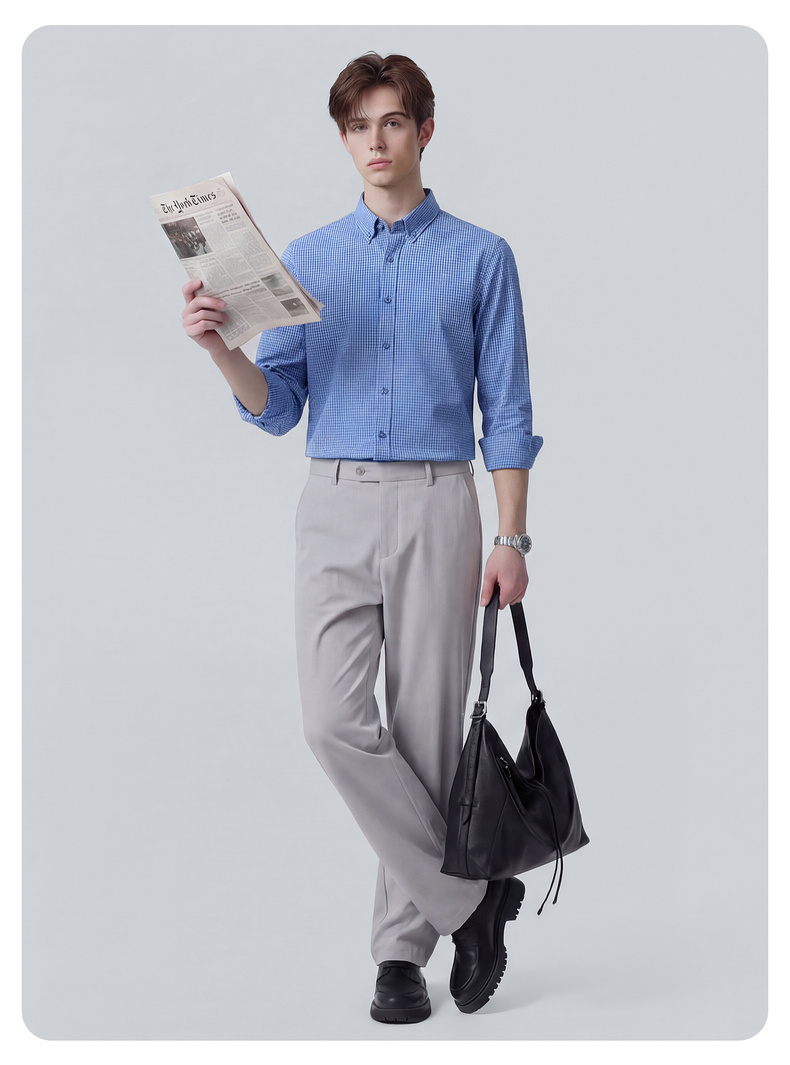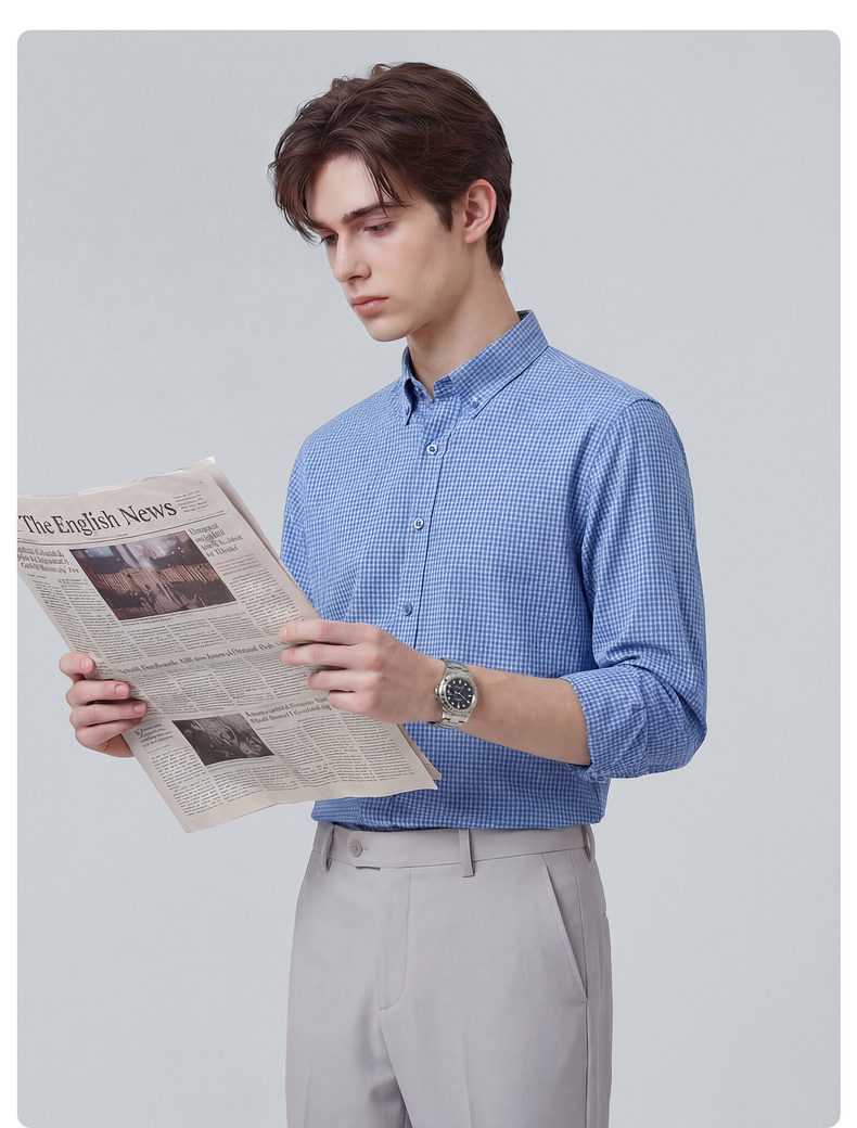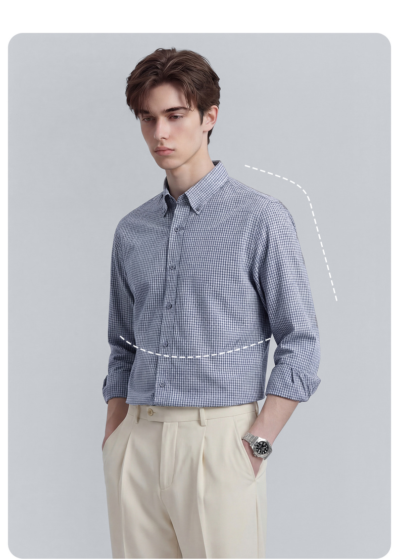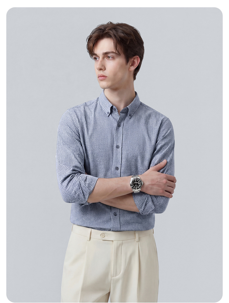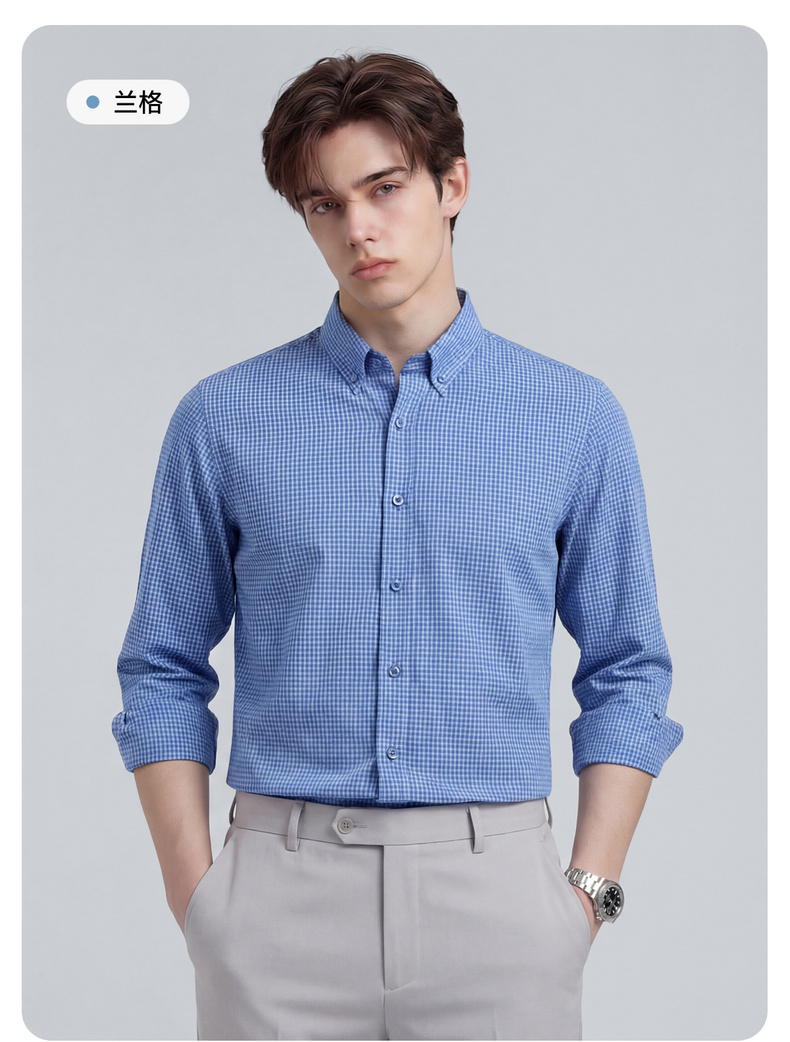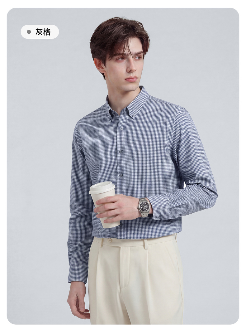 【100%棉】圣得西格纹长袖休闲衬衫2026新款春季男士商务绅士上衣