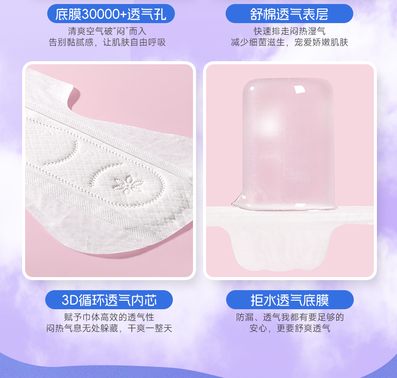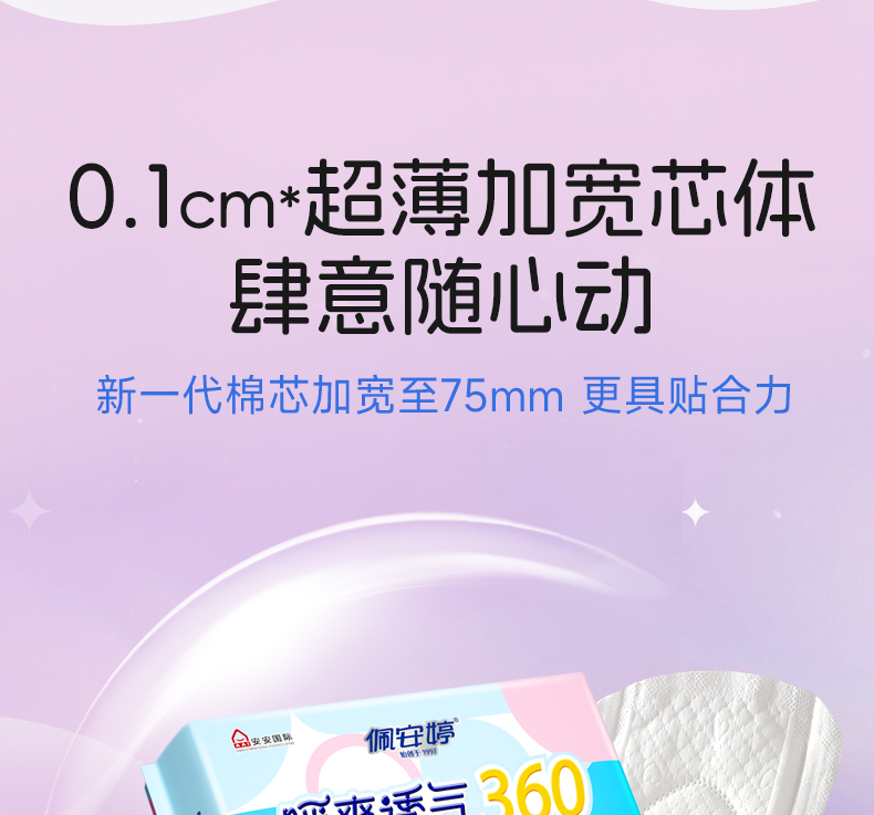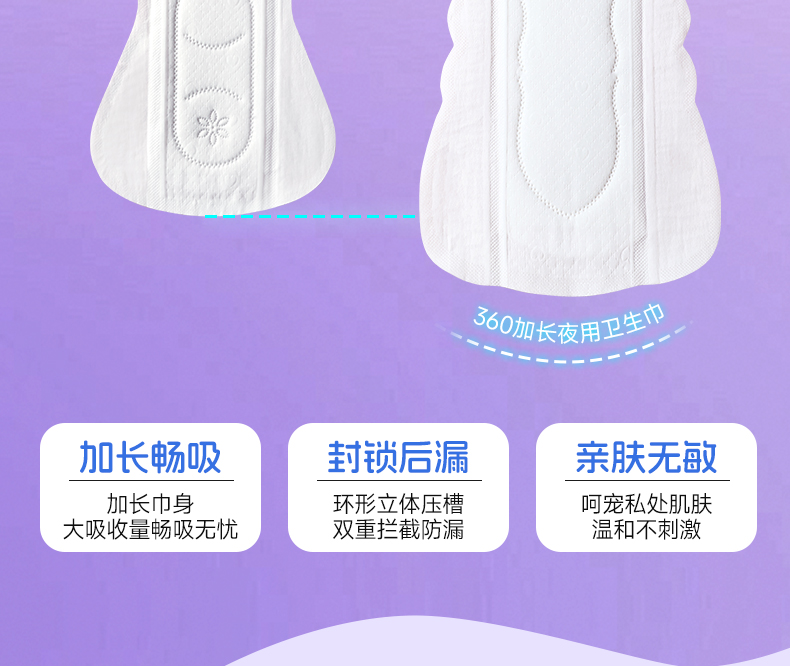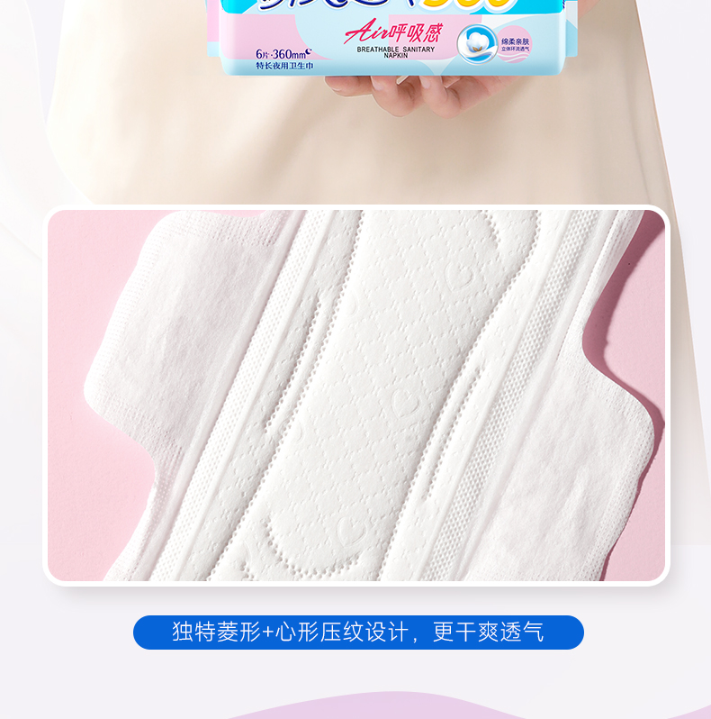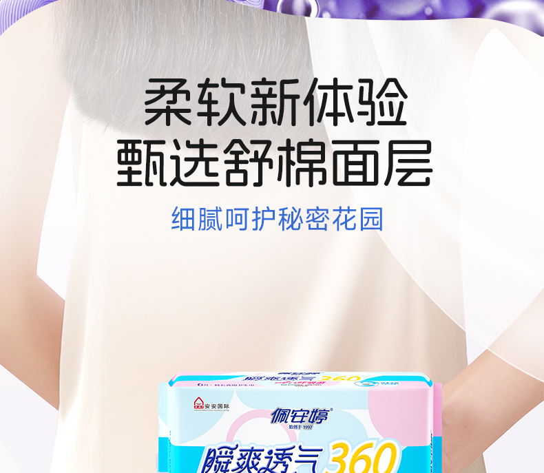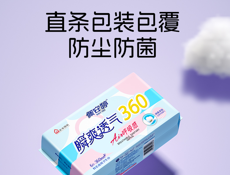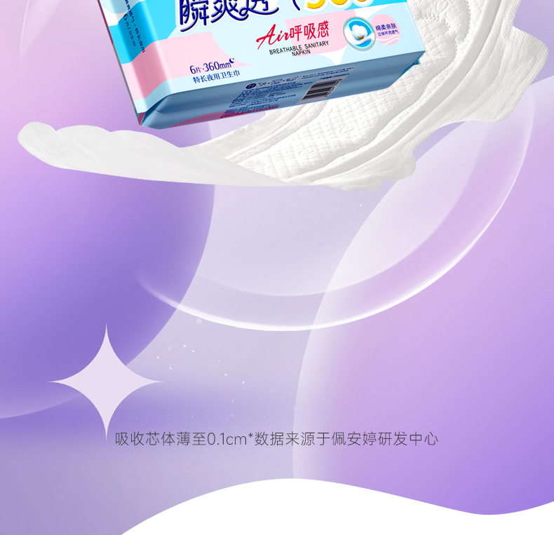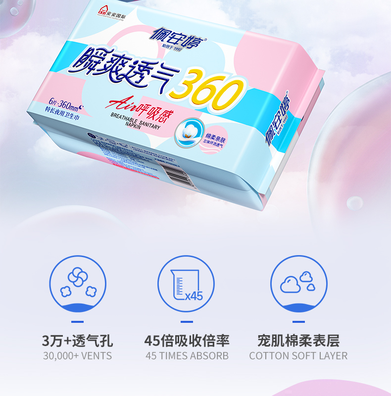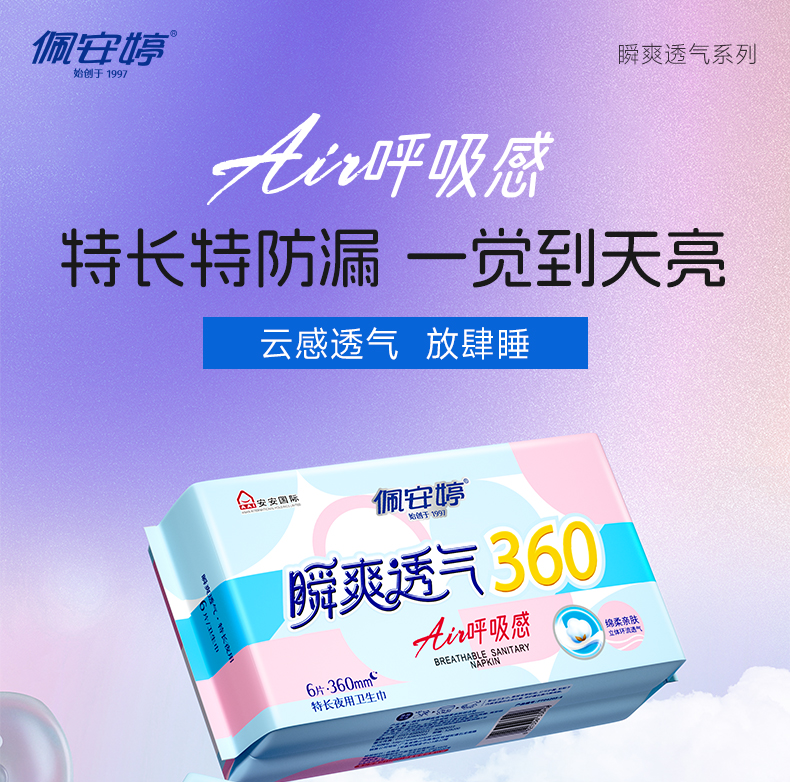 佩安婷瞬爽透气系列特长夜用舒棉卫生巾360mm6片
