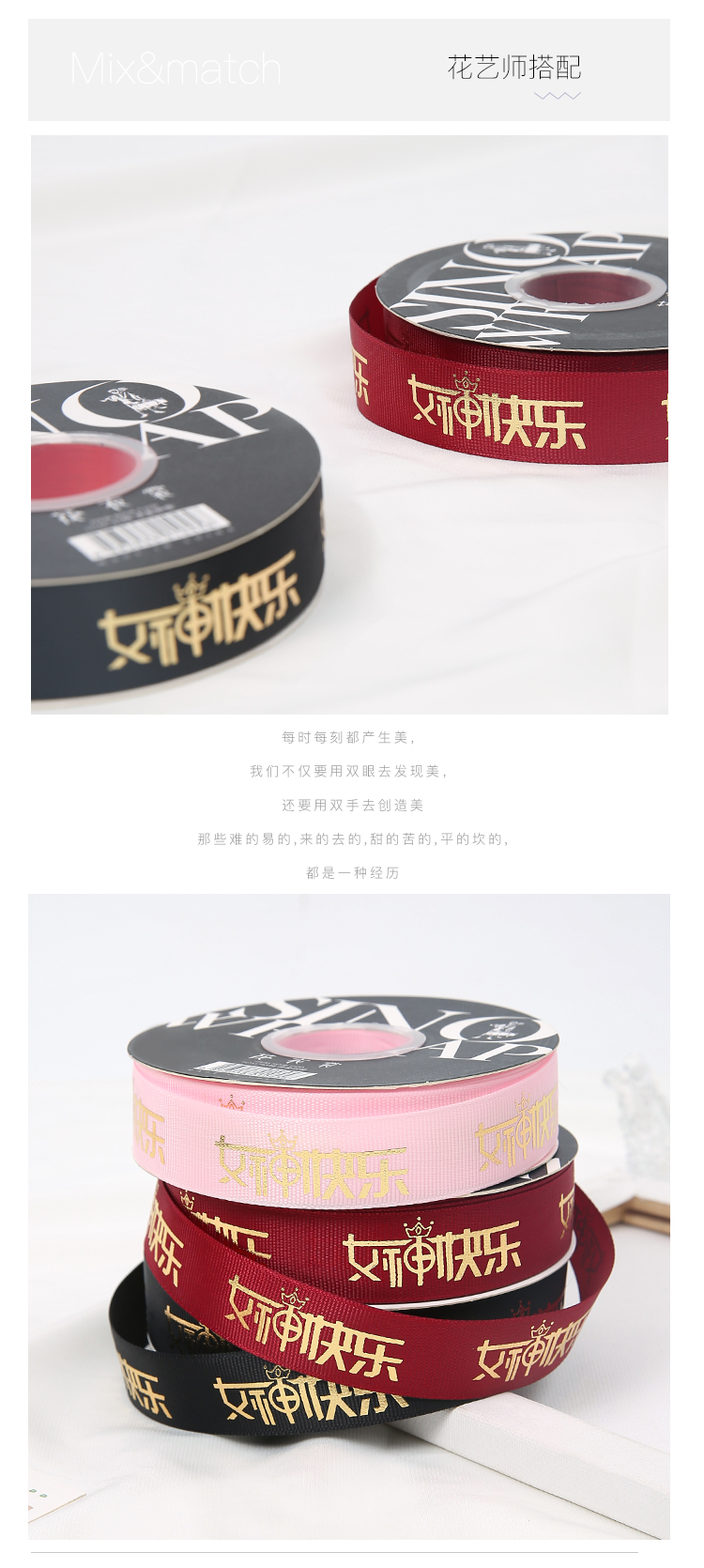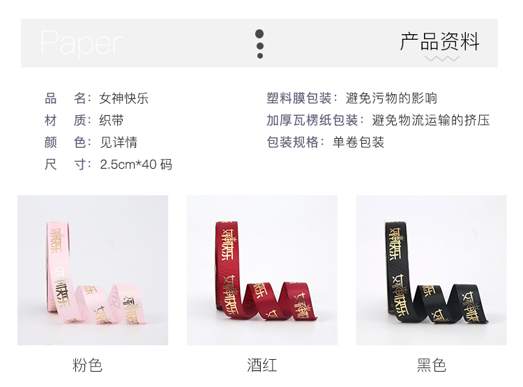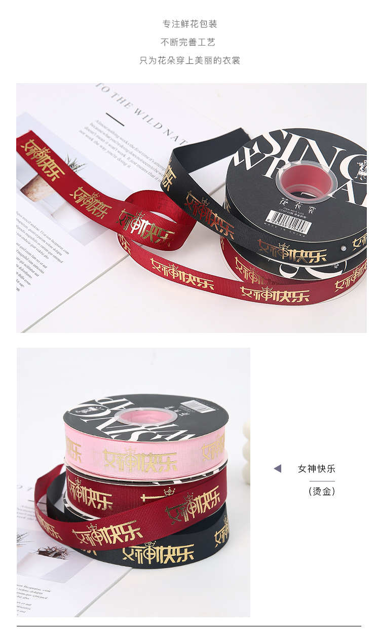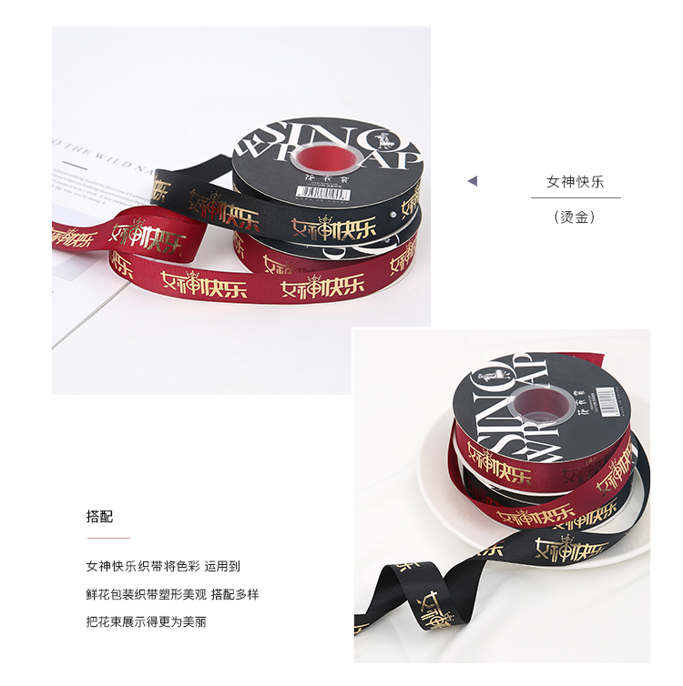 女神节2.5公分螺纹烫金带(40码)