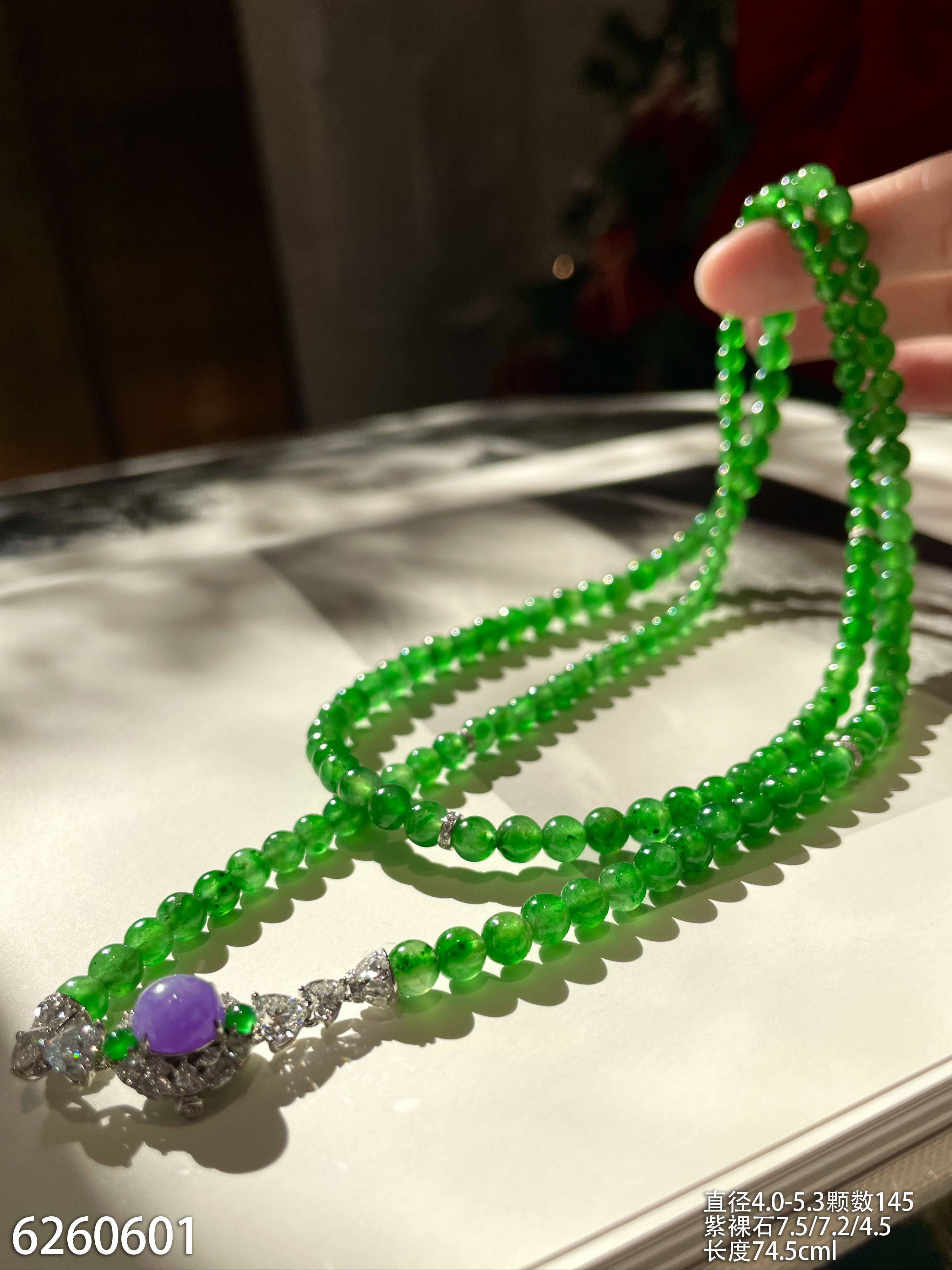 艳绿长珠链【6260601】具体价格微信咨询