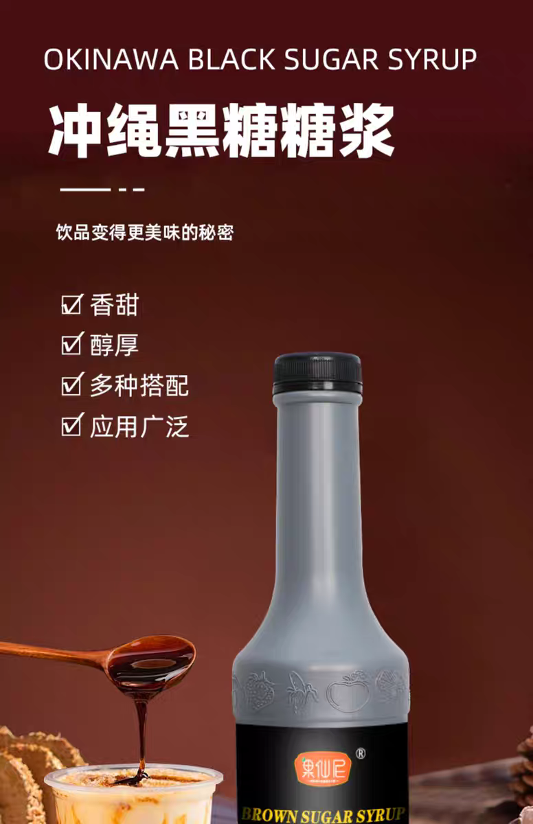 1.3kg 果仙尼 冲绳黑糖风味糖浆 奶茶咖啡饮品专用调味糖浆 脏脏茶鲜奶制作原料