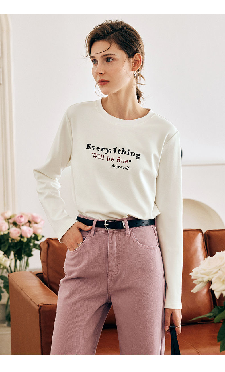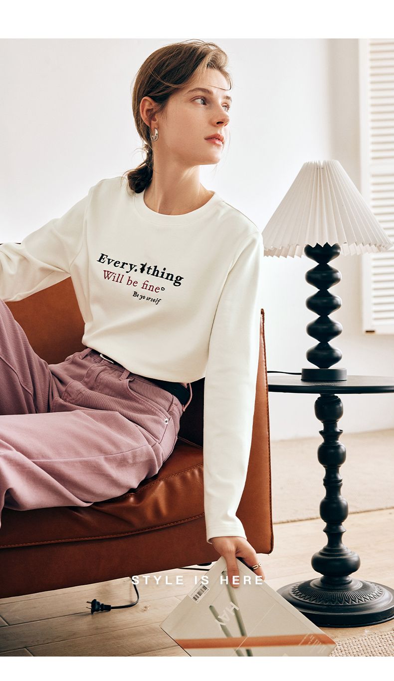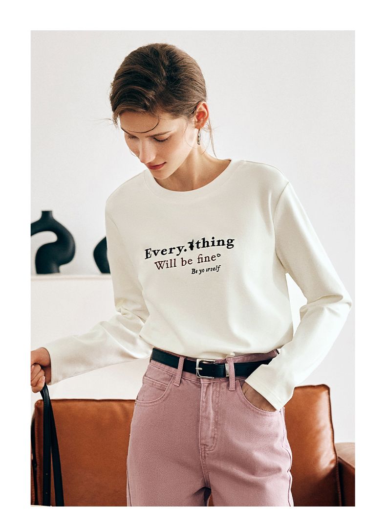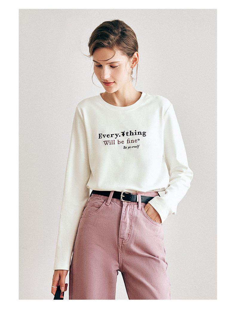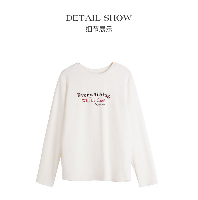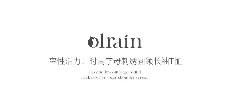 OLrain欧芮儿法式白色长袖T恤女早春2023年新款字母刺绣正肩上衣