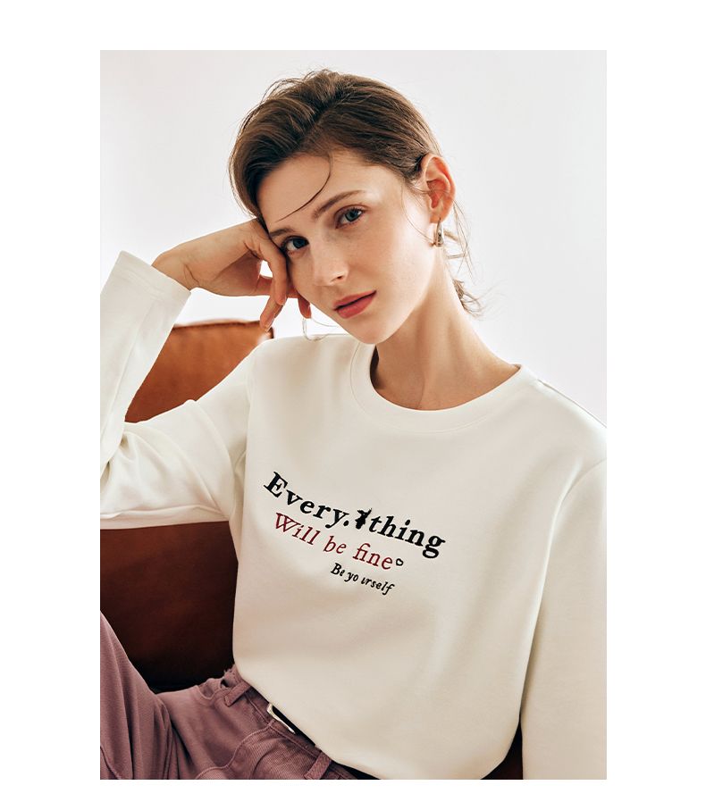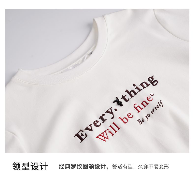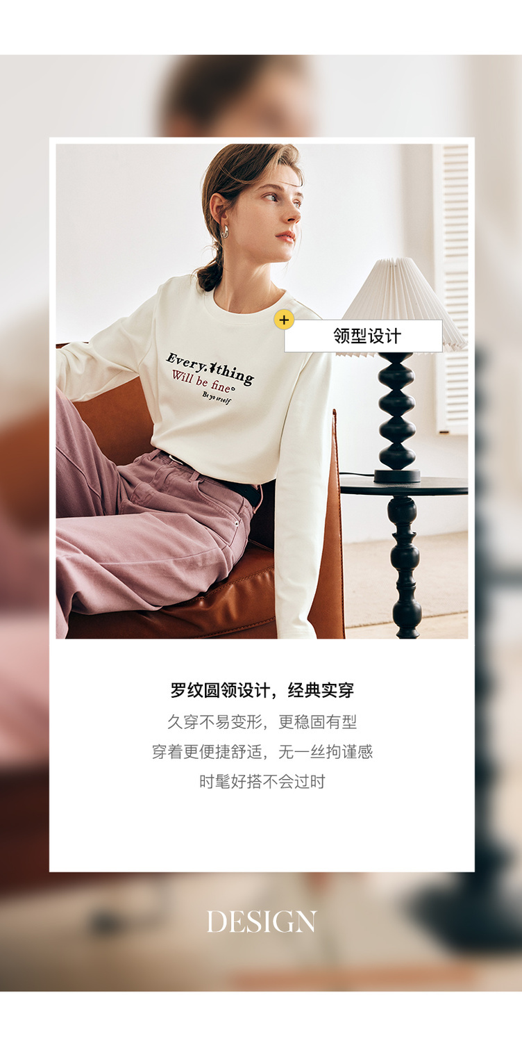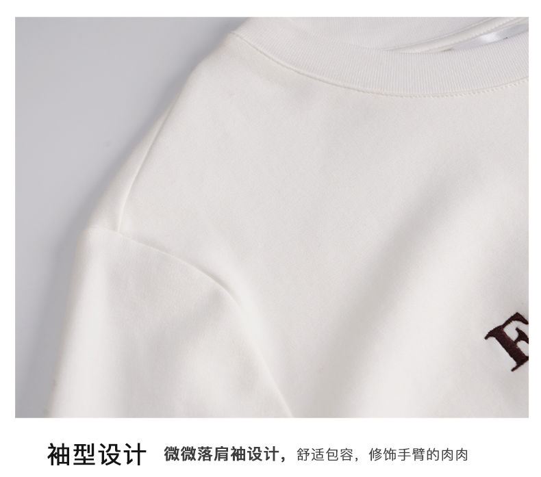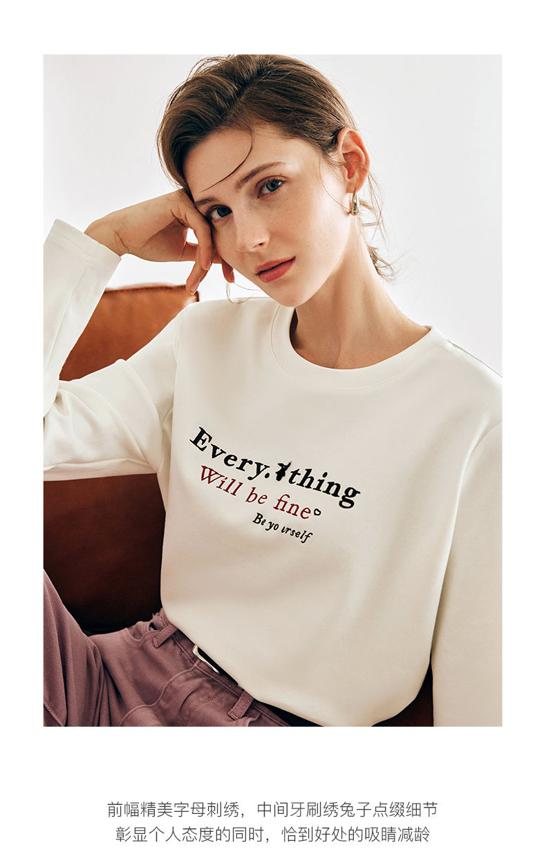 OLrain欧芮儿法式白色长袖T恤女早春2023年新款字母刺绣正肩上衣