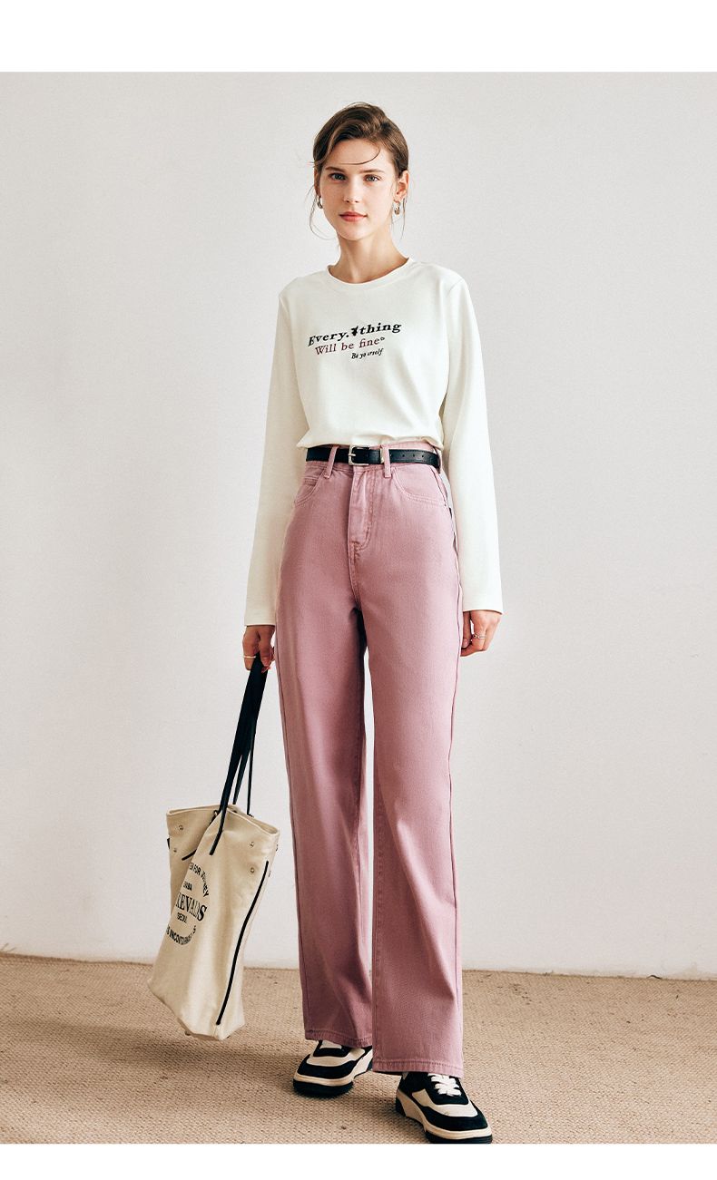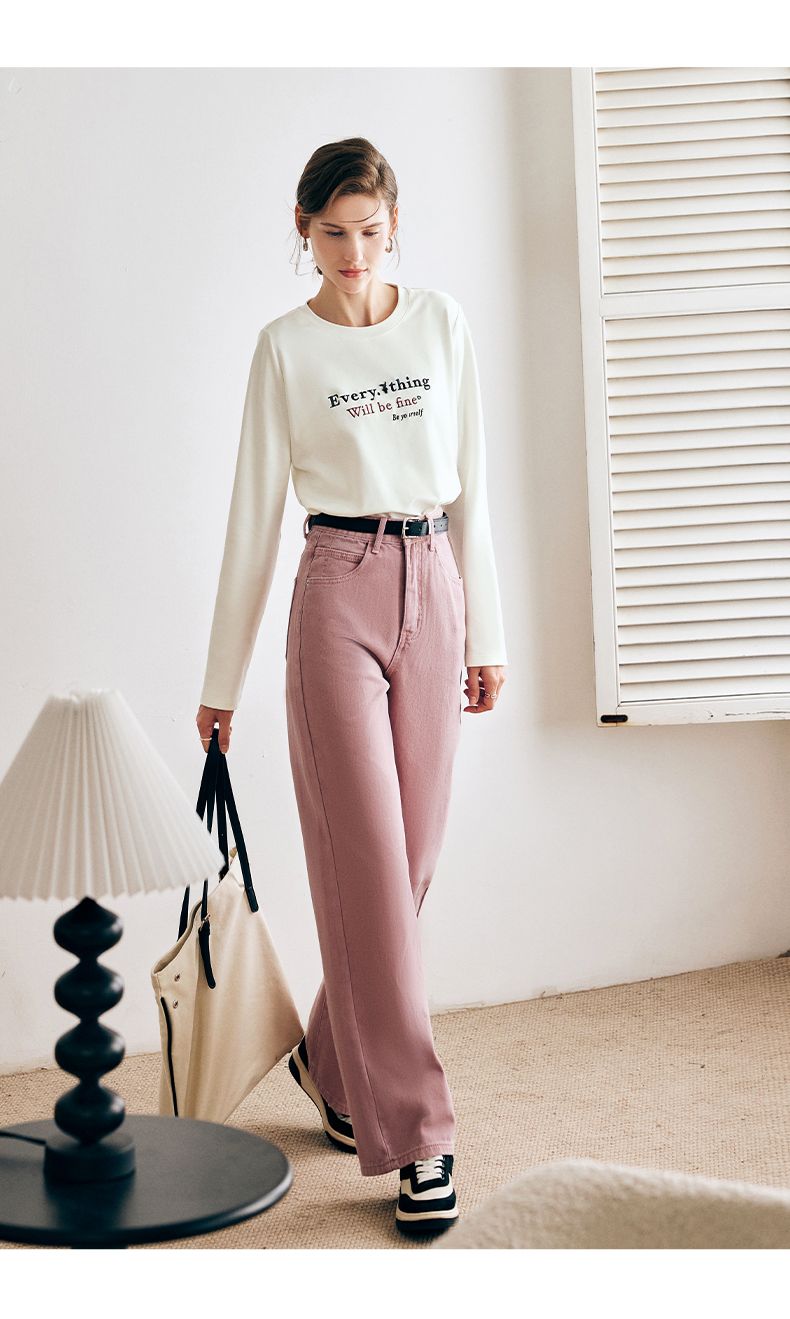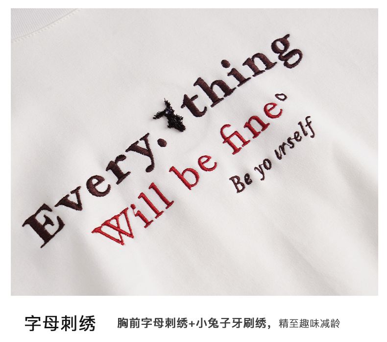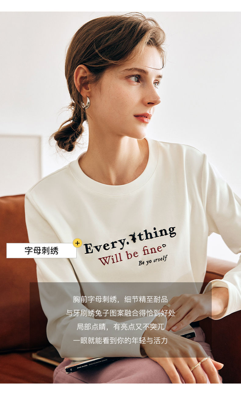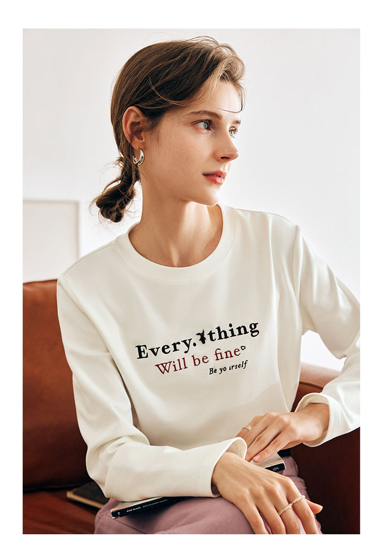 OLrain欧芮儿法式白色长袖T恤女早春2023年新款字母刺绣正肩上衣