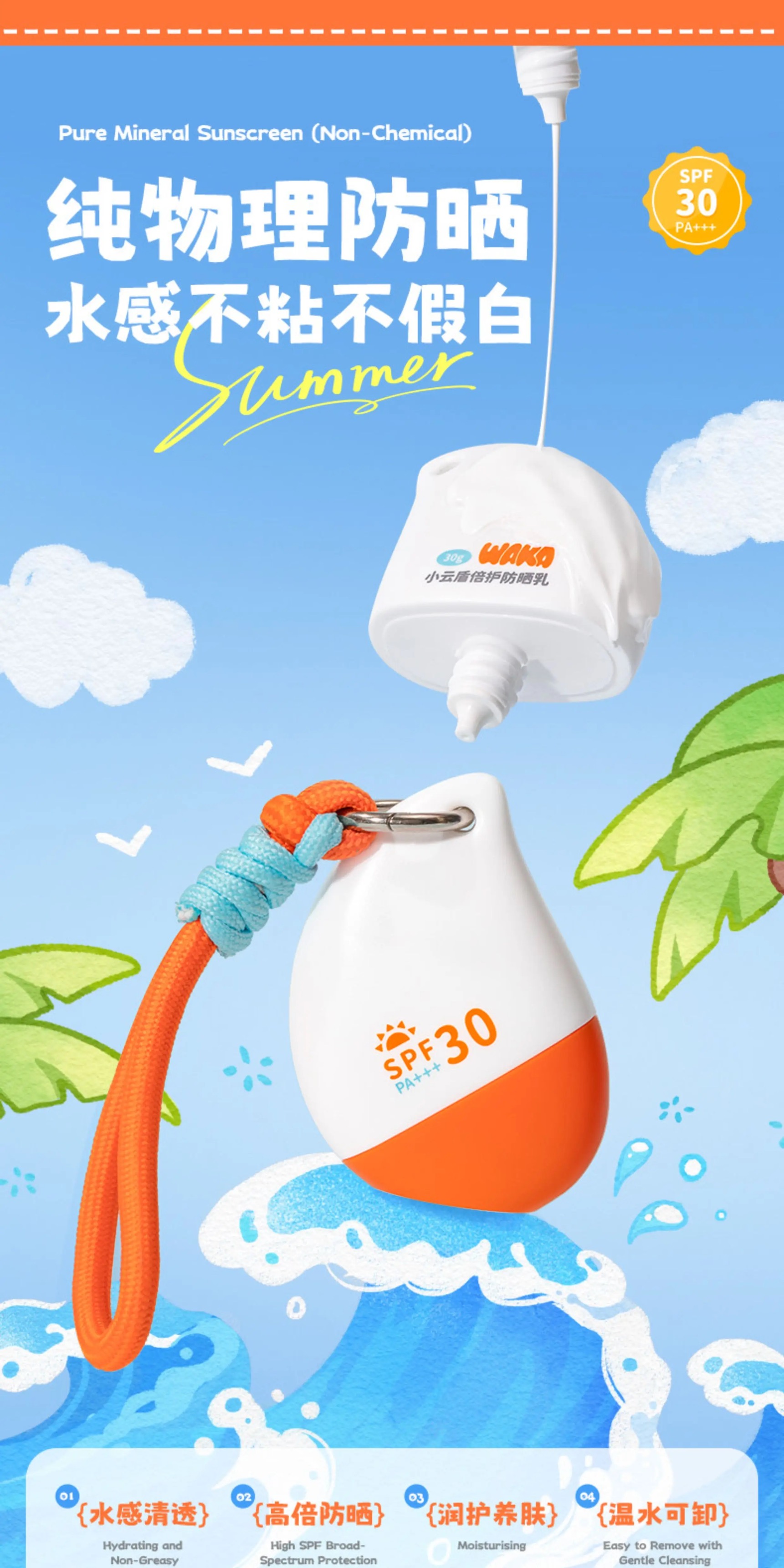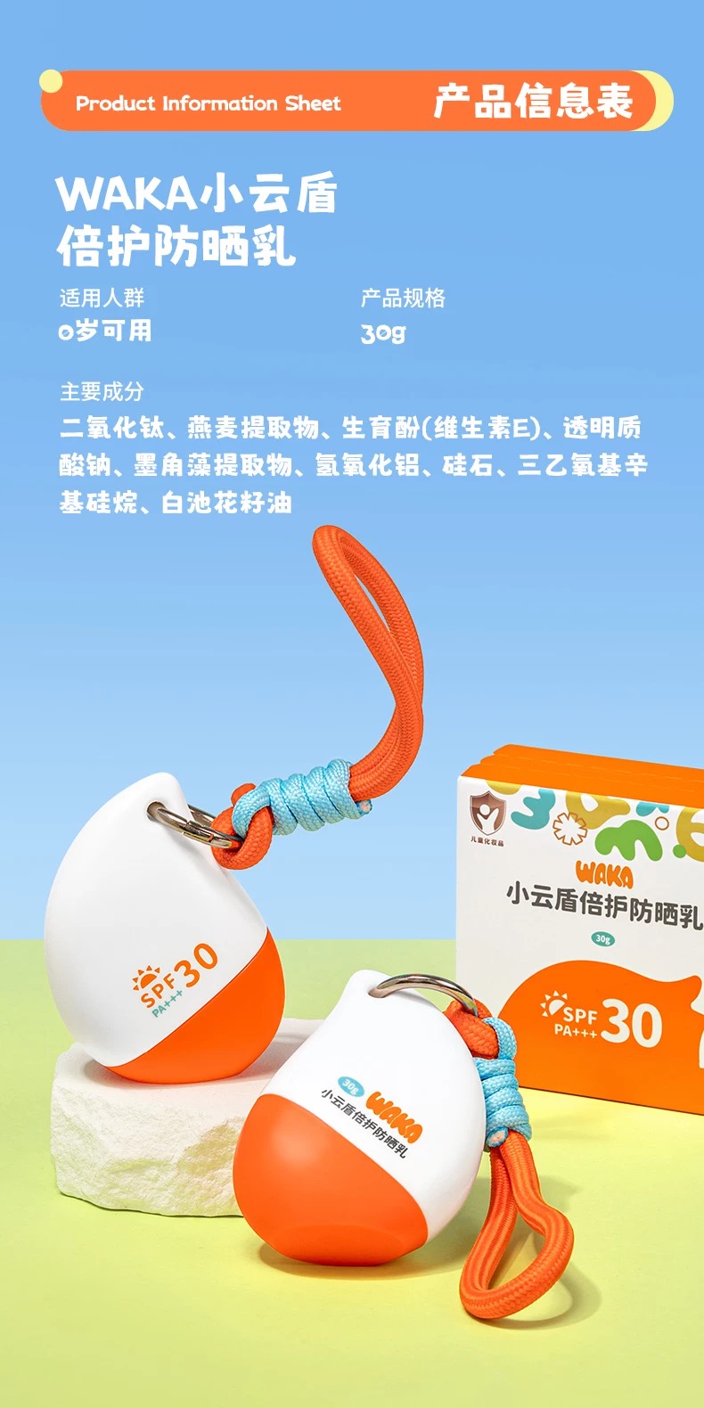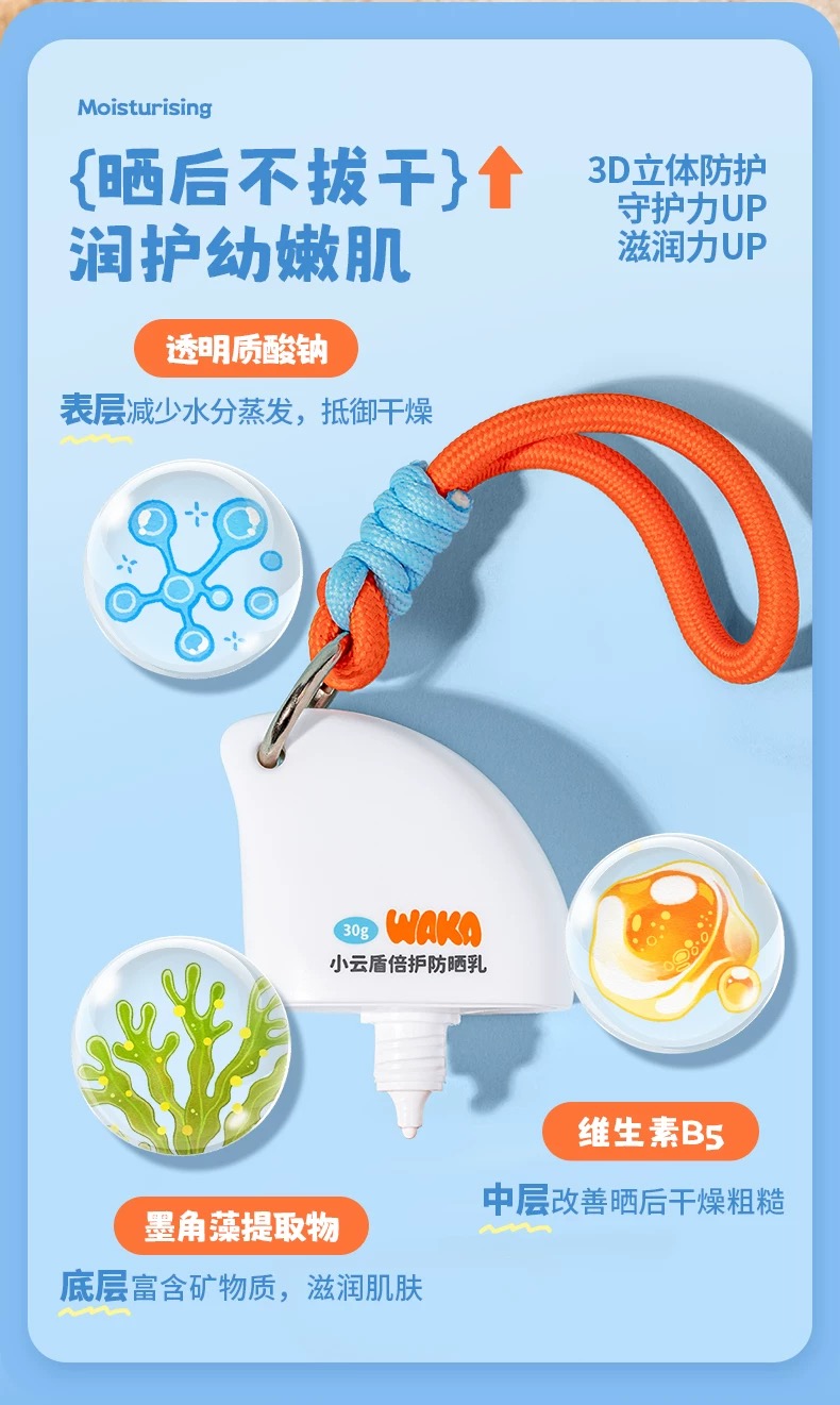 WAKA小水滴儿童水感防晒乳霜物理隔离紫外线户外海边清爽清水可卸