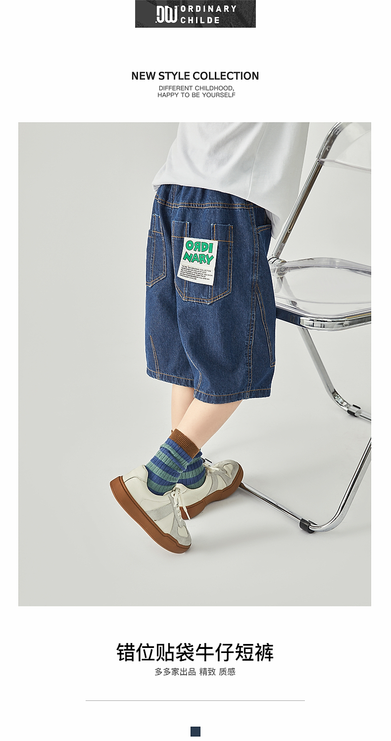 【团购价59.9元】多多家 男童牛仔短裤2024夏季新款透气休闲六分裤儿童帅气裤子9336