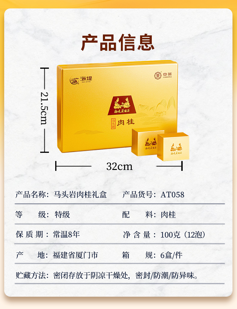 中茶海堤AT058马头岩肉桂礼盒100g/盒(12泡)