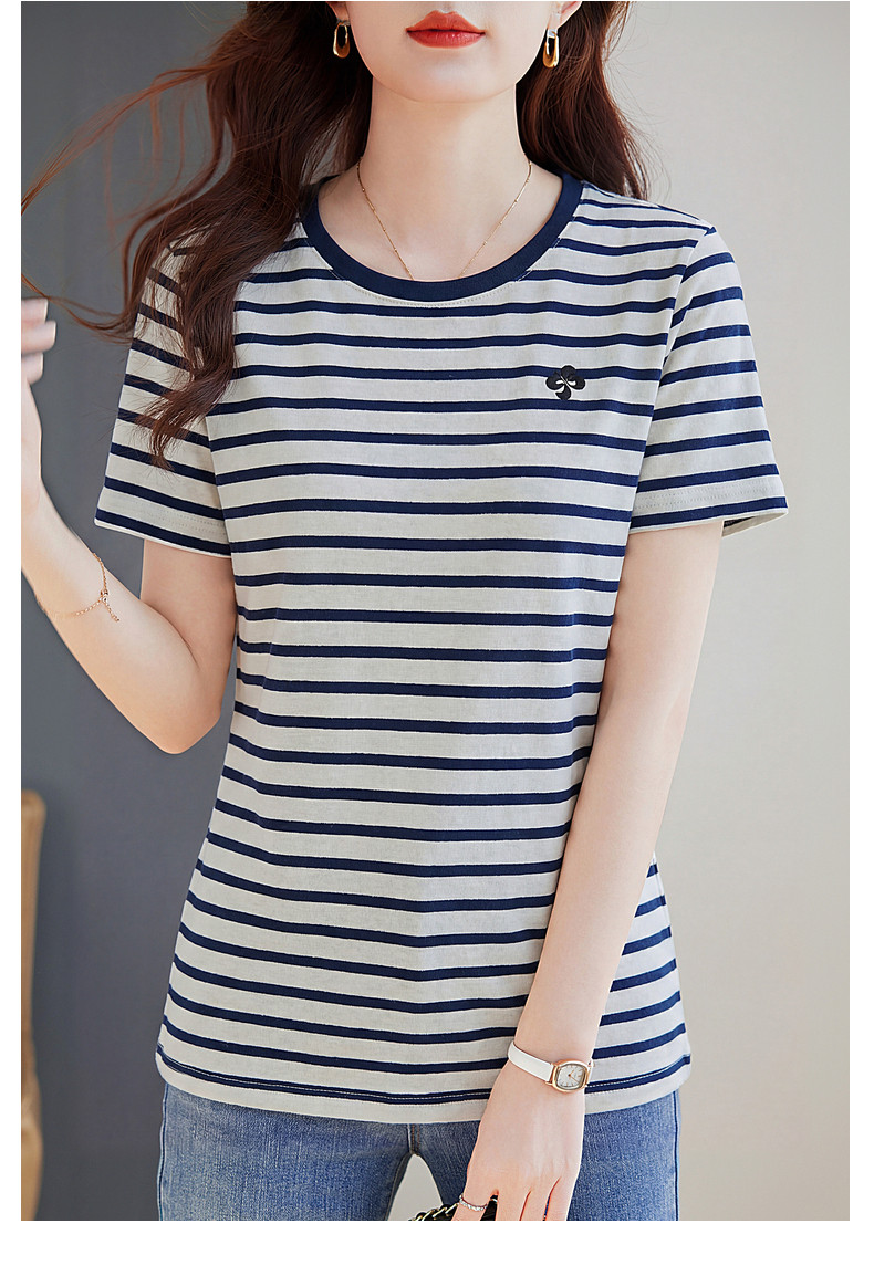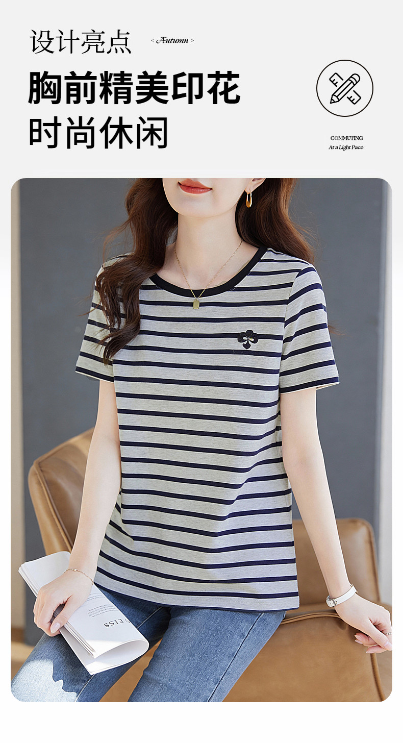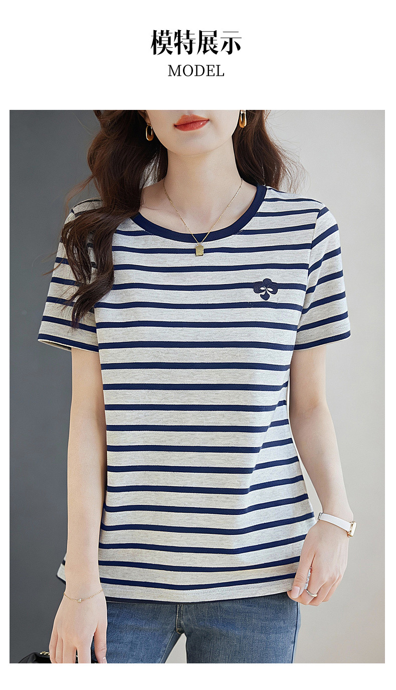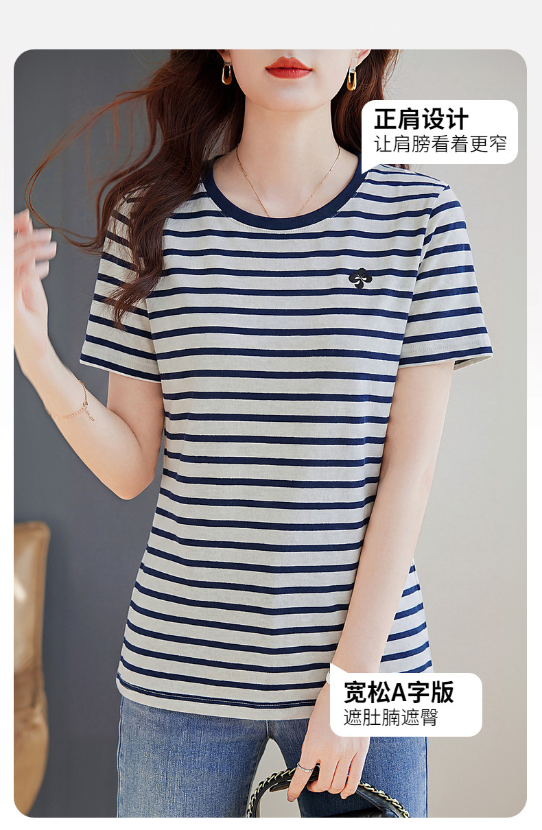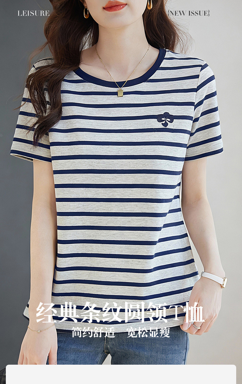 条纹短袖t恤女2026新款夏爆款高端洋气女装休闲减龄上衣半袖体恤