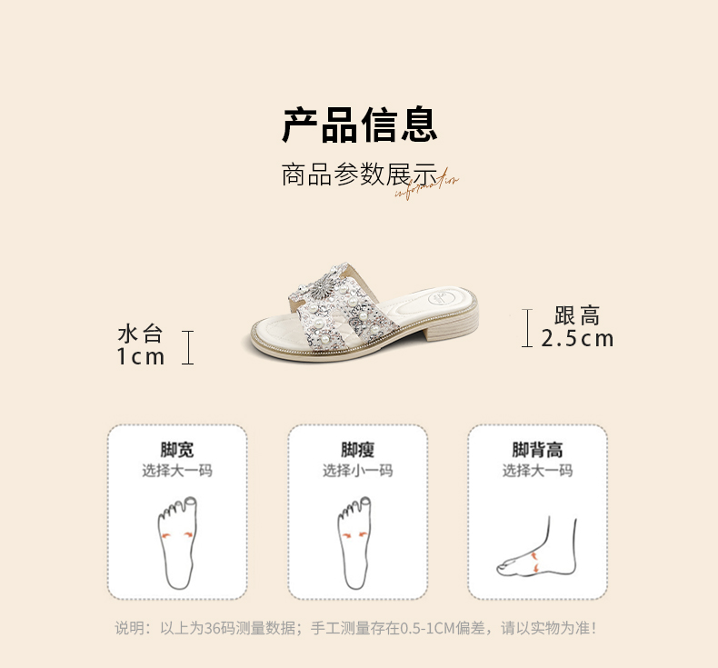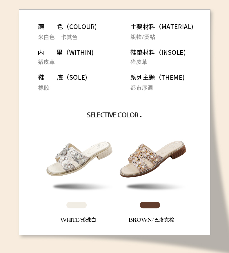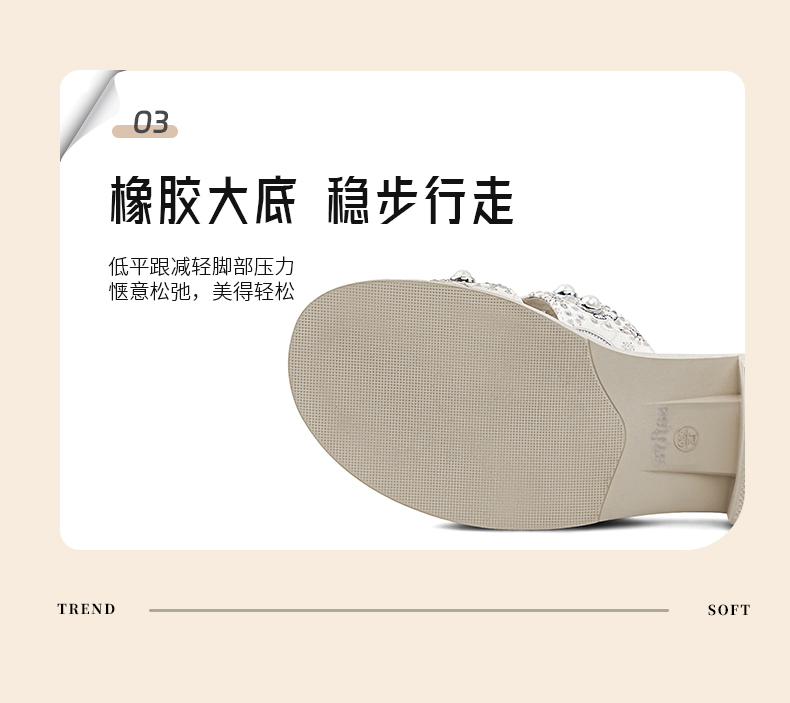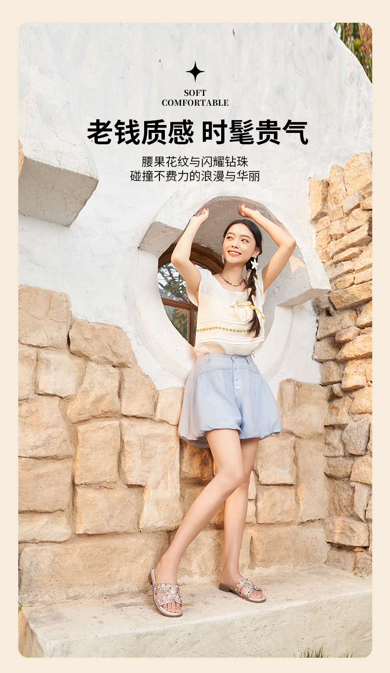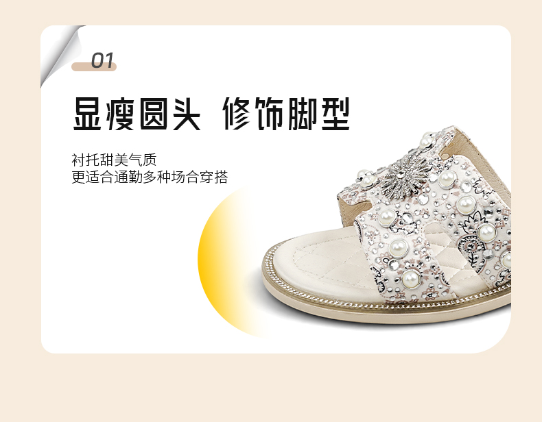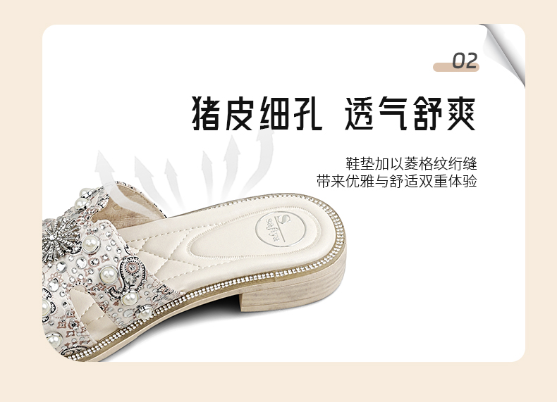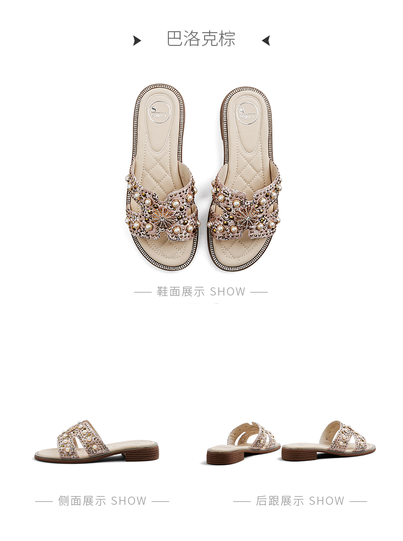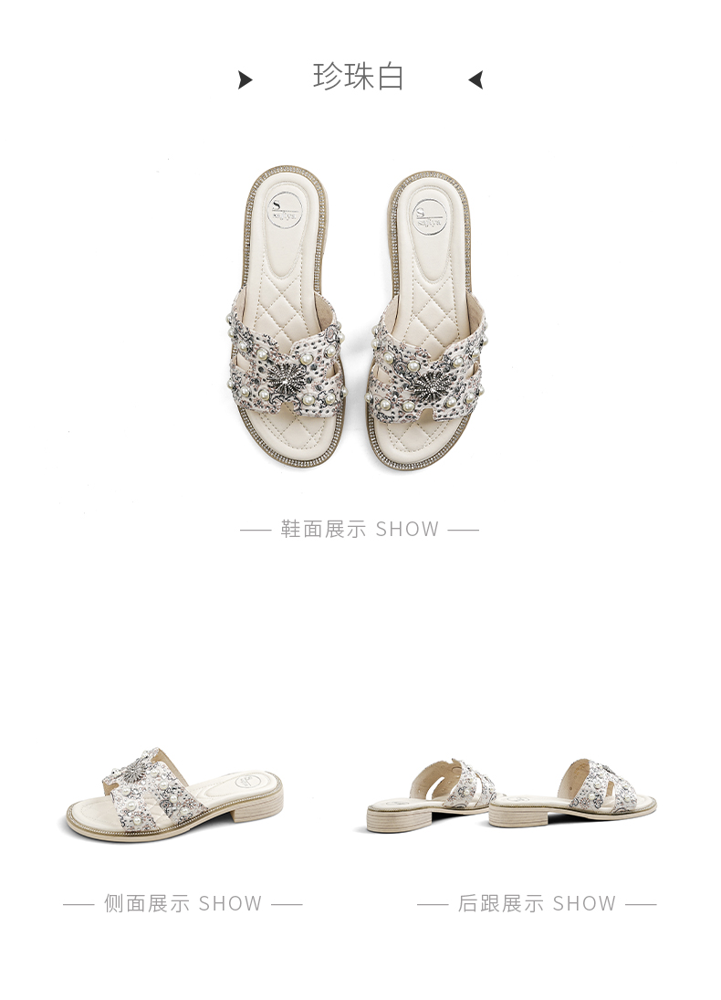 Safiya/索菲娅2025夏季轻便平底复古闪钻珍珠仙女休闲露趾拖鞋SFD2110380