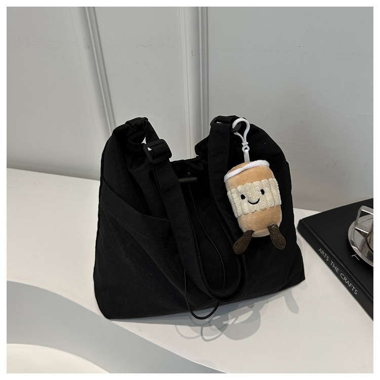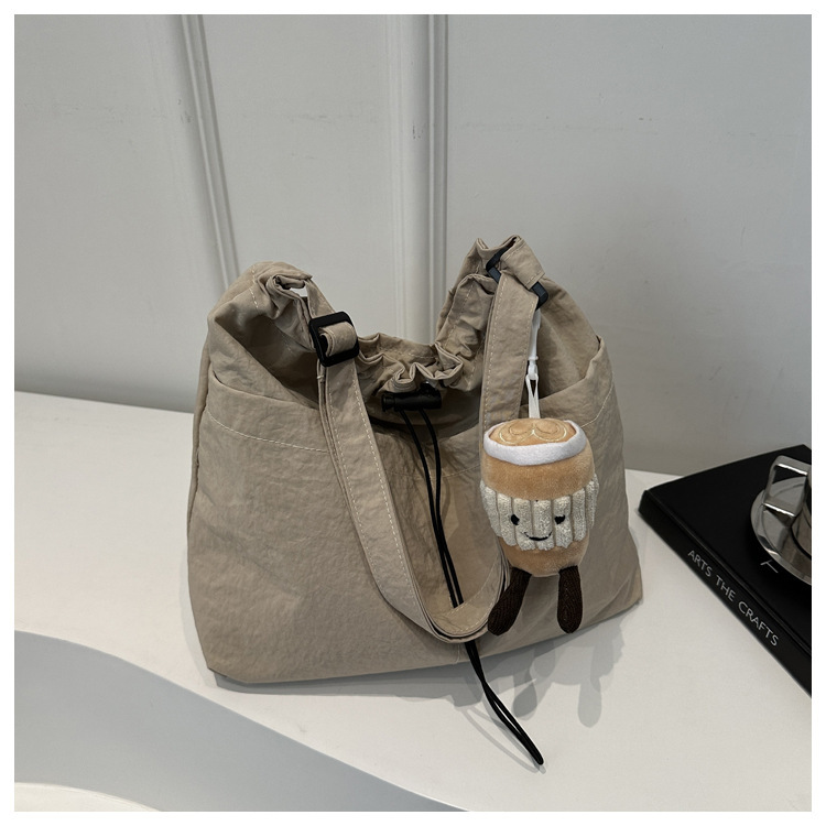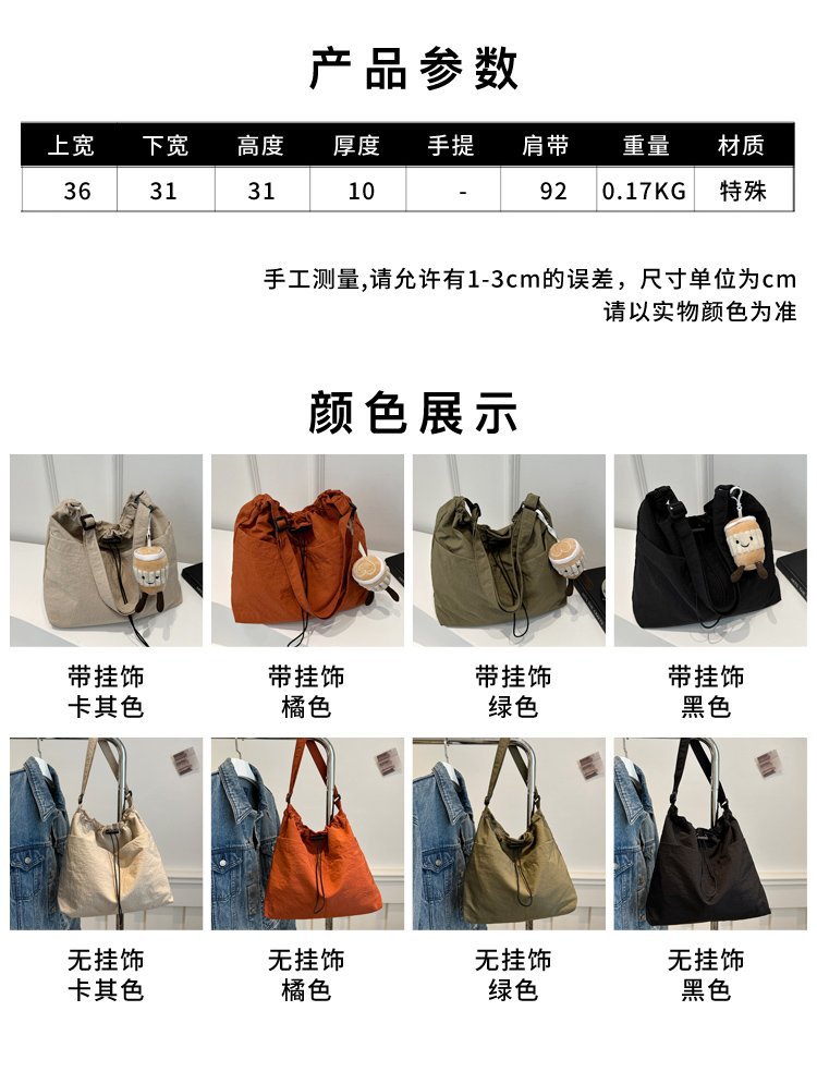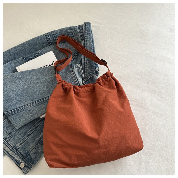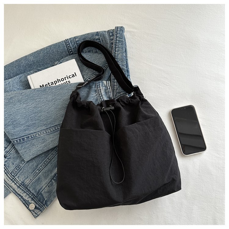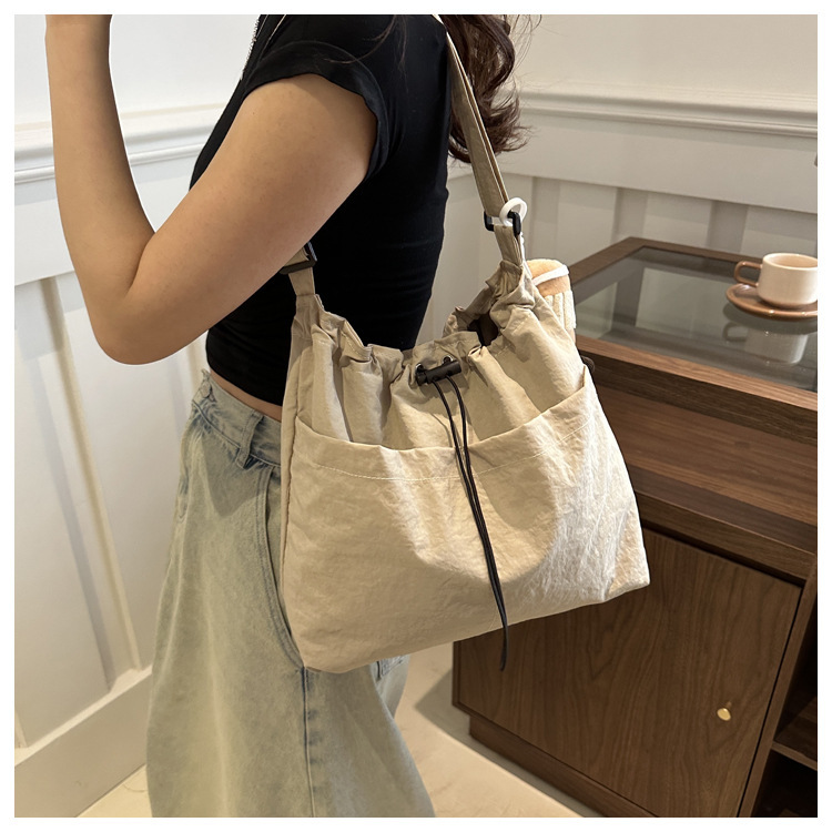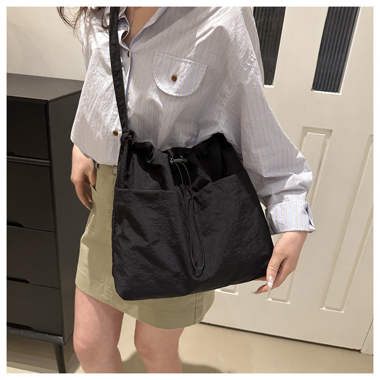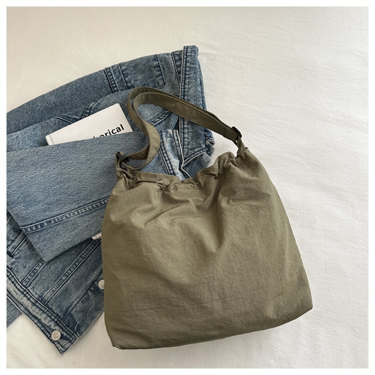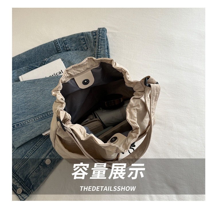 「29.9到手!拼团同款」韩版休闲文艺帆布水桶包 时尚抽绳单肩女包网红褶皱尼龙水洗斜挎包箱包