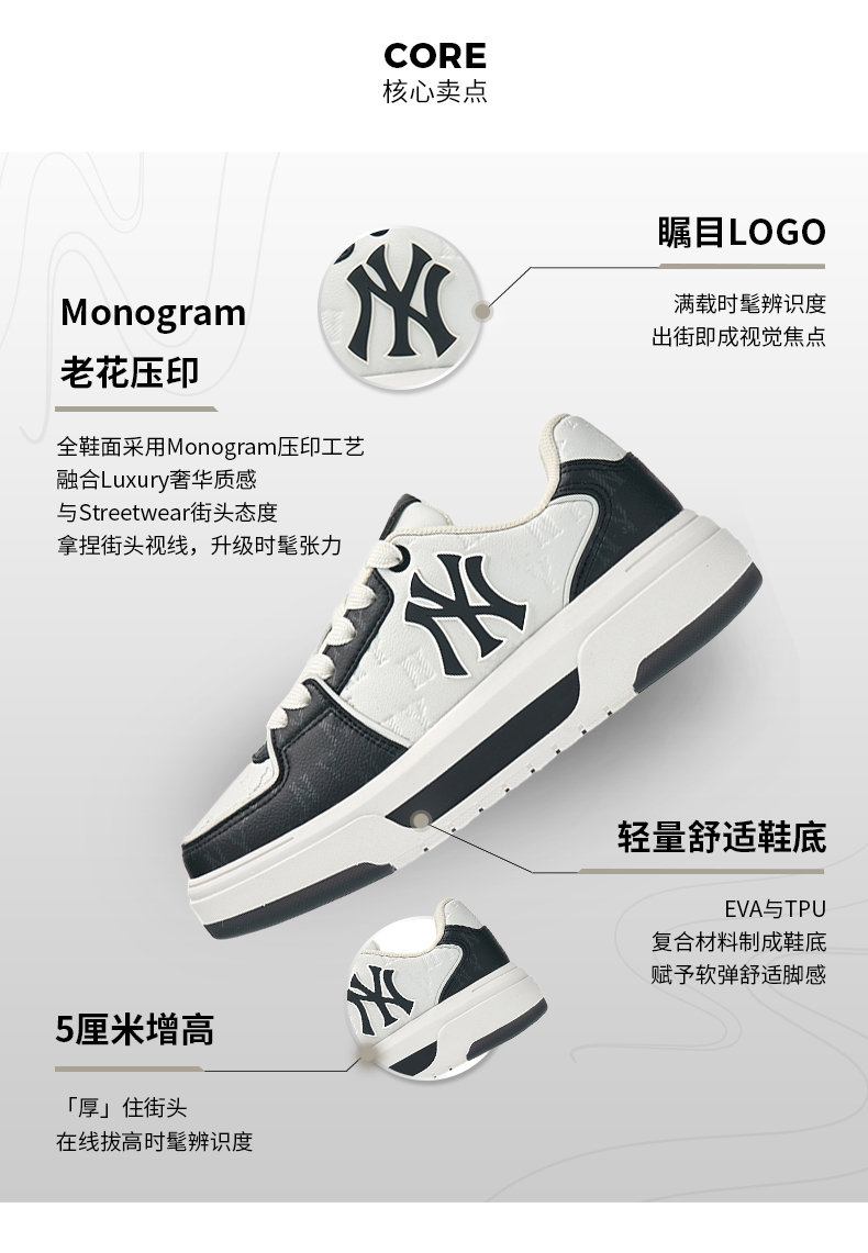 【奥莱新款直发 】MLB洋基队 SS25厚底增高休闲鞋板鞋 男女同款