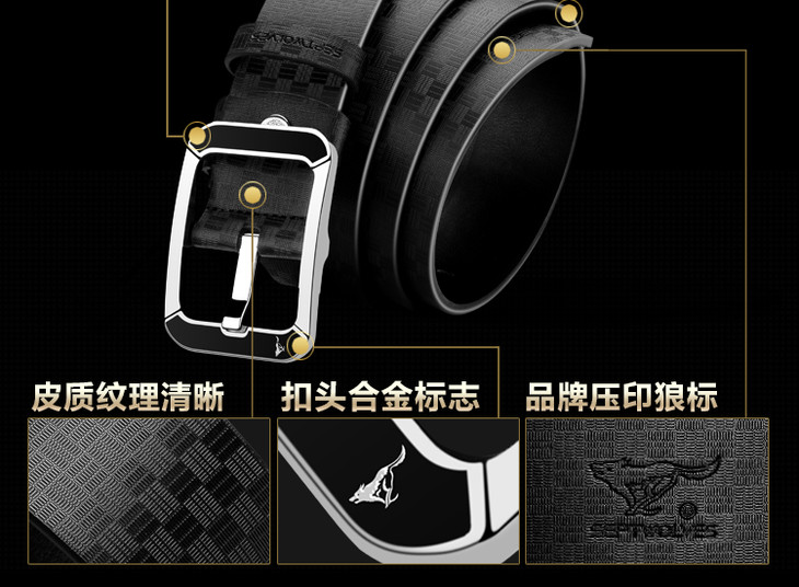 七匹狼皮带男士休闲牛皮腰带 韩版潮青年百搭针扣裤带7A02064300黑