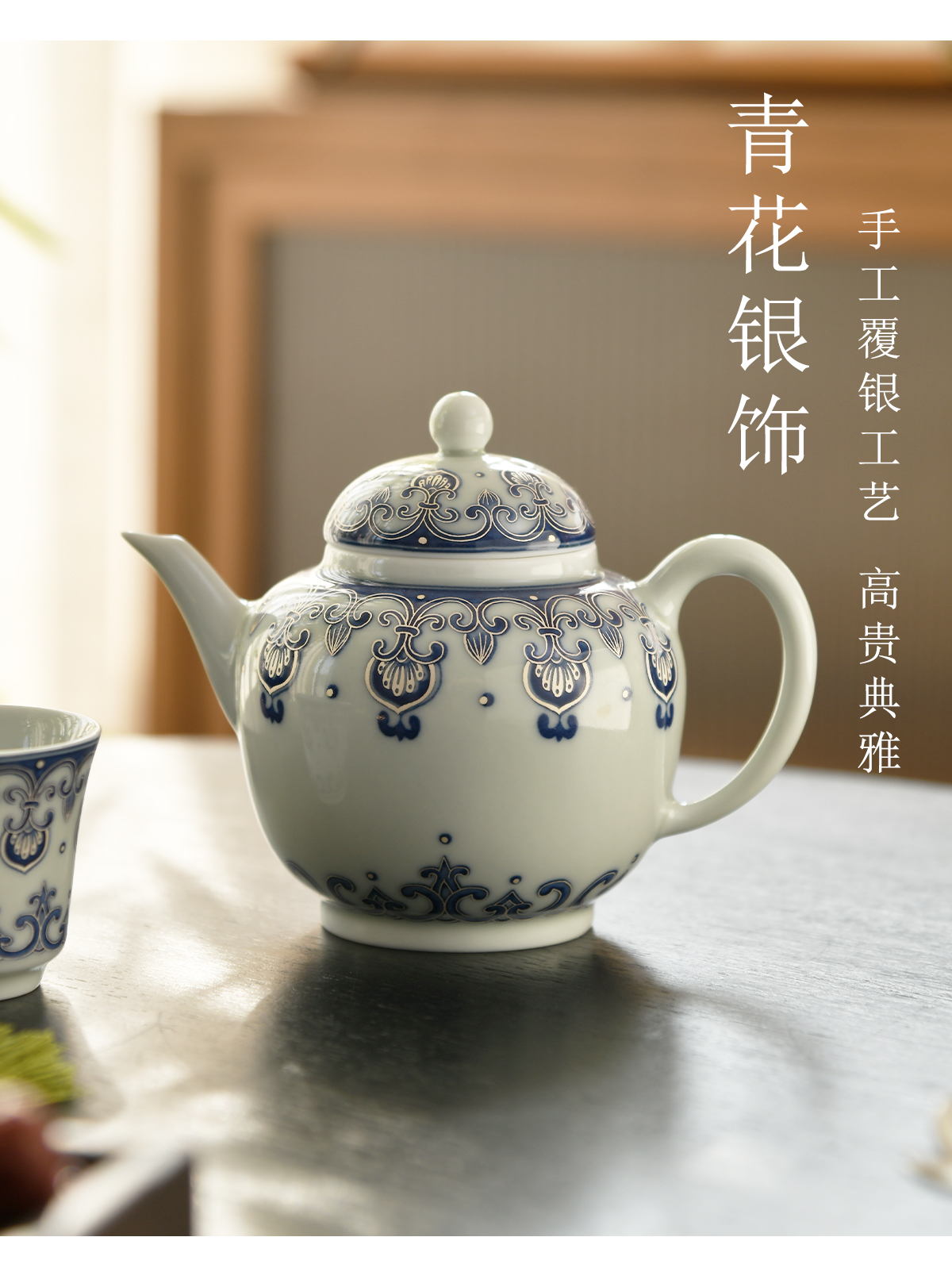 陶瓷覆银宝相纹茶具套装家用办公轻奢高档2025新款伴手礼物