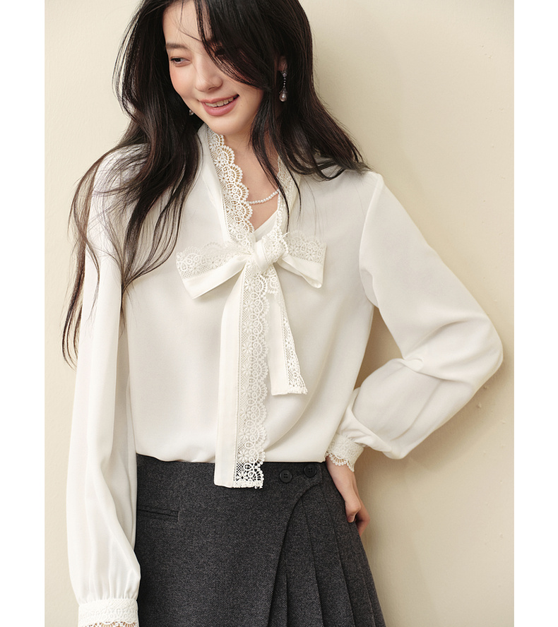 【严选】孟子义代言诗凡黎蕾丝飘带领衬衫2025秋新款优雅花边气质通勤上衣7G9320901
