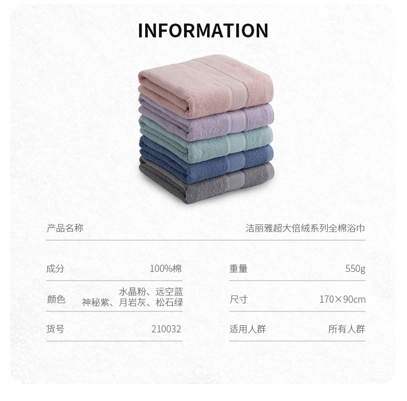 【纯棉大浴巾】 A类成人吸水不掉毛170*90cm全棉洗澡巾毛巾盖毯