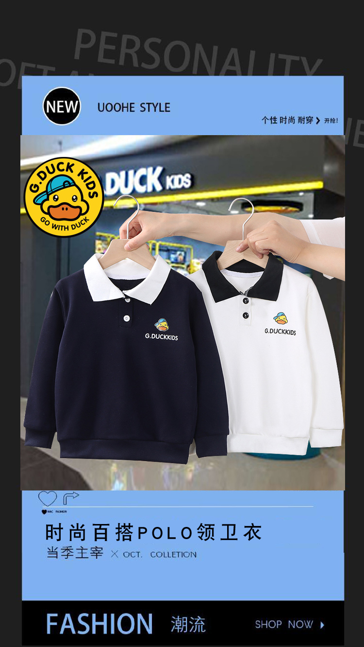 G.DUCK儿童polo衫长袖春秋童装男童翻领上衣中大童卫衣女童衬衫春秋洋气