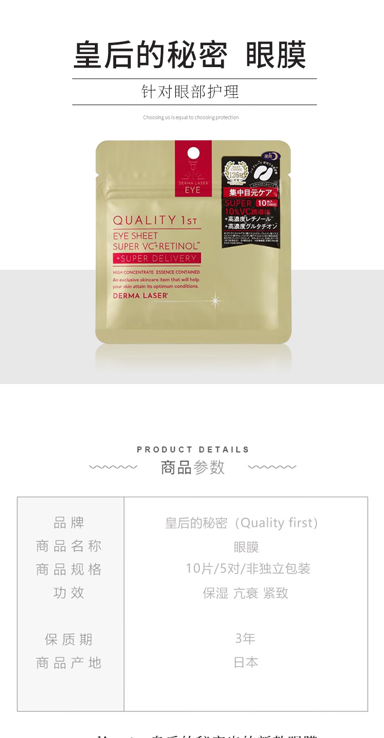 【跨境】皇后的秘密VC精华眼膜10片/5对(效期:2028/08/29)