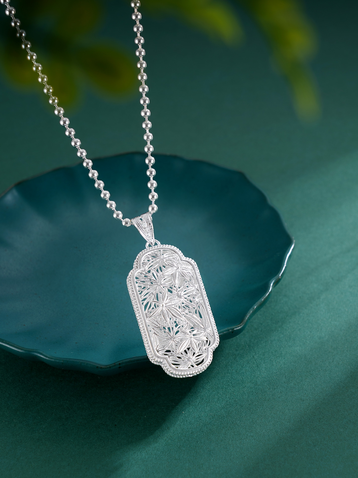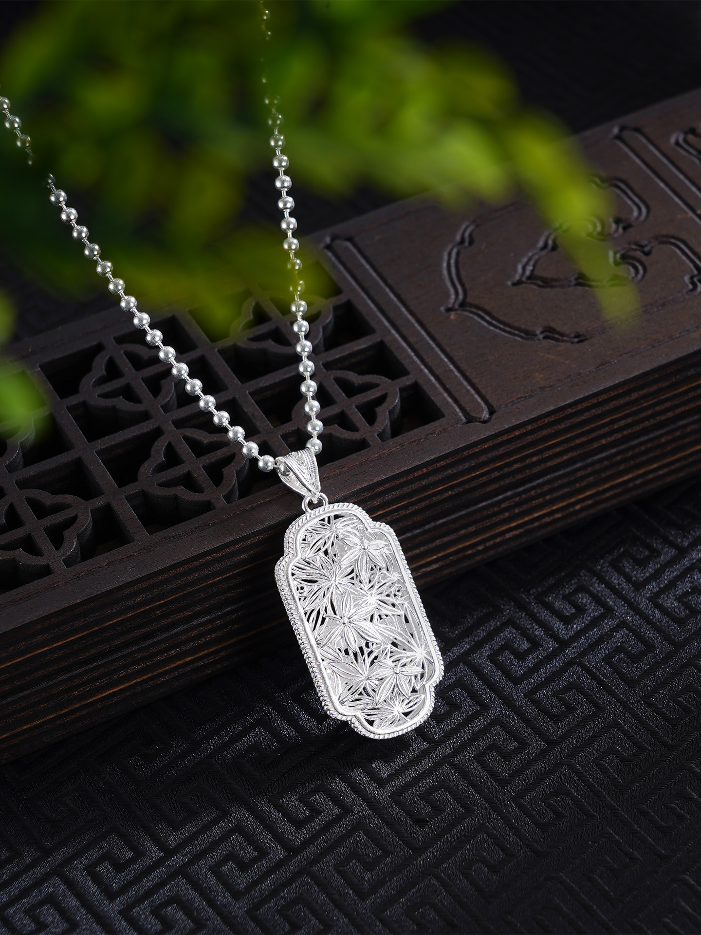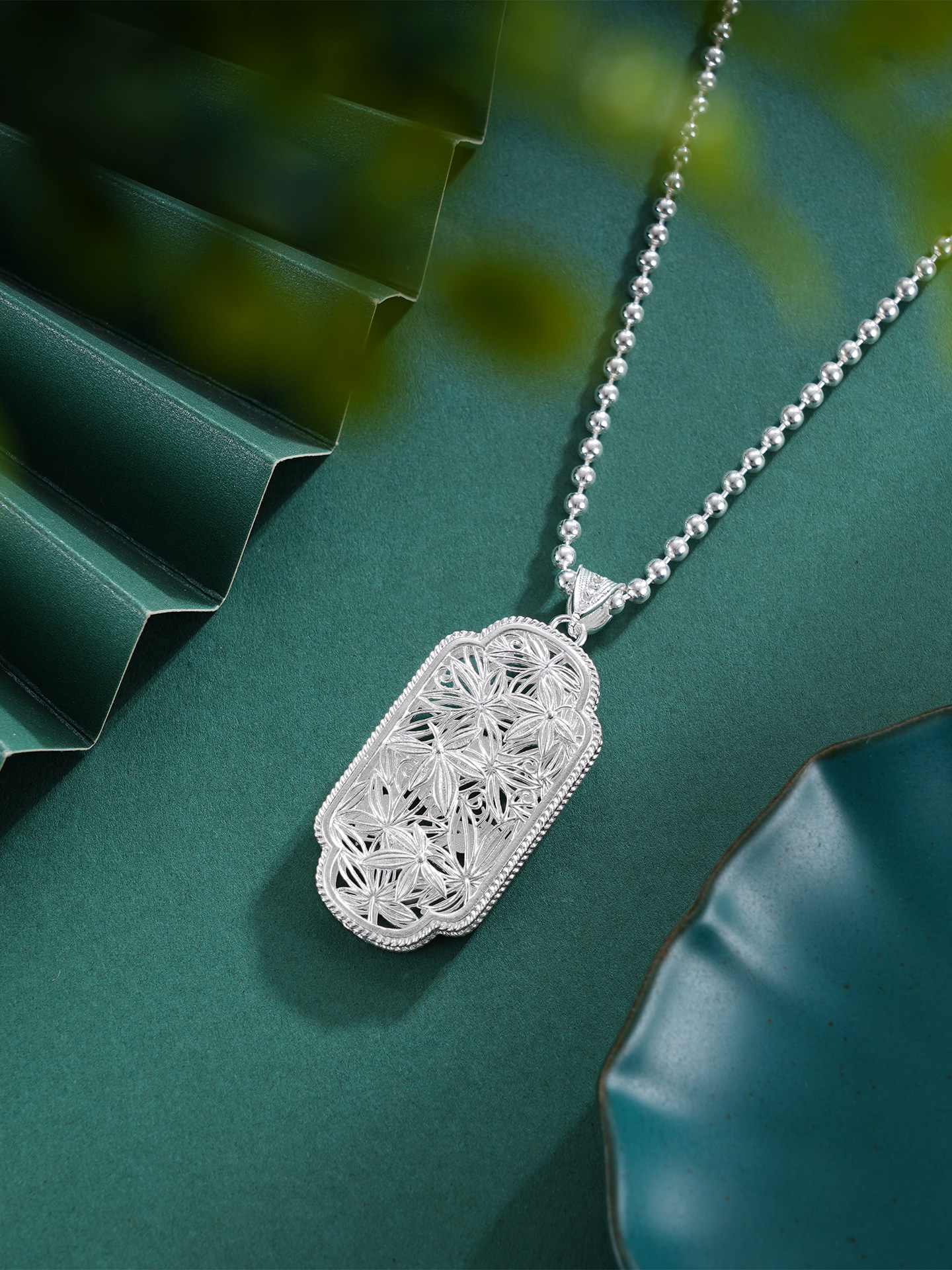 【寓意】:精选990足银,采用非遗银花丝工艺精制而成。五角枫的叶子呈现出独特的五角形,既像闪耀的五角星,又似一把挡风遮雨的伞,作品灵感源自长沙枫叶。银花丝以其纯白温润的特质,为长沙渲染出如诗如画的“枫”光盛景。作品不仅是长沙风景的细腻抒写,更寓意着祖国对人民的庇护。
