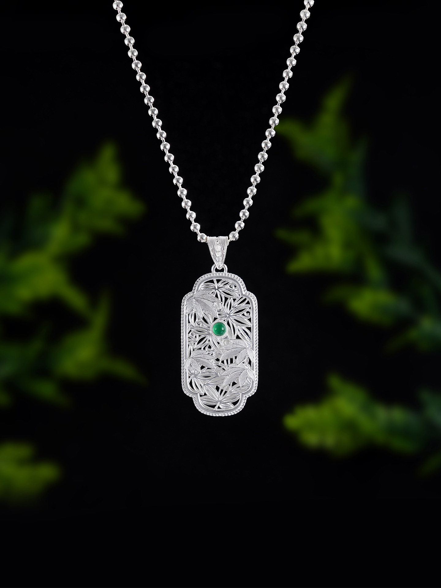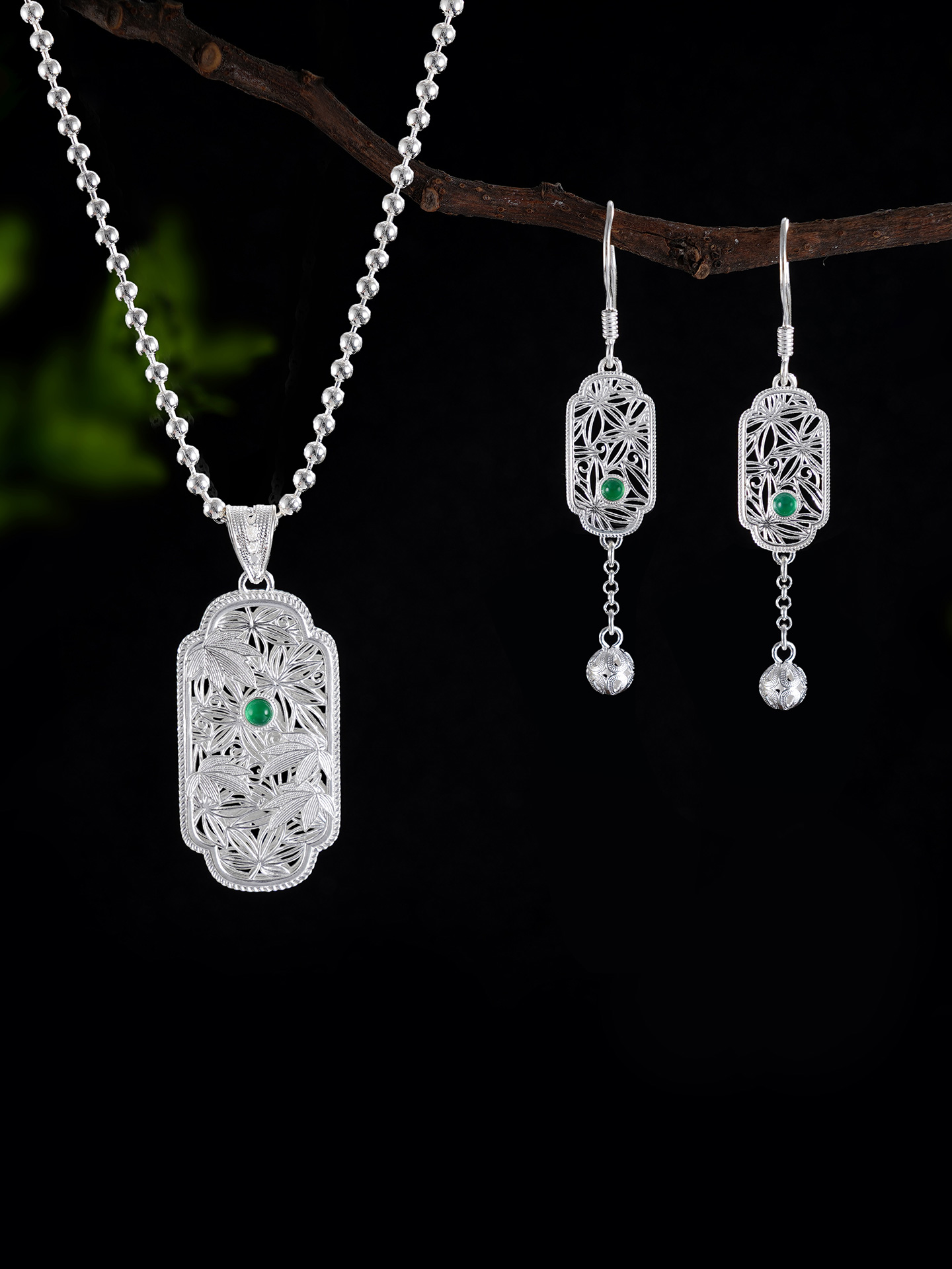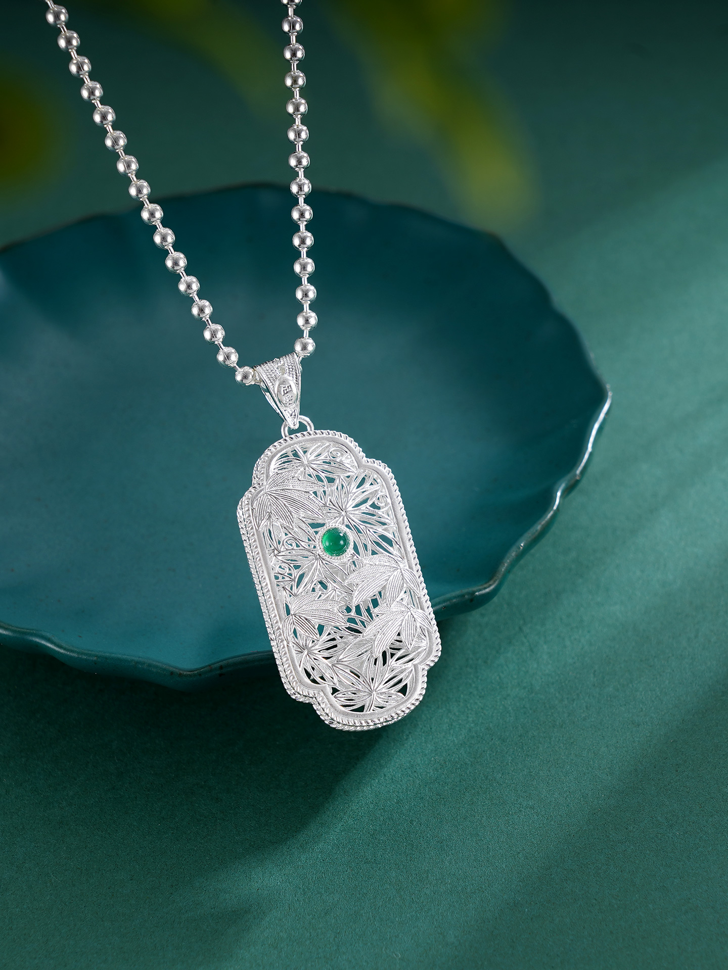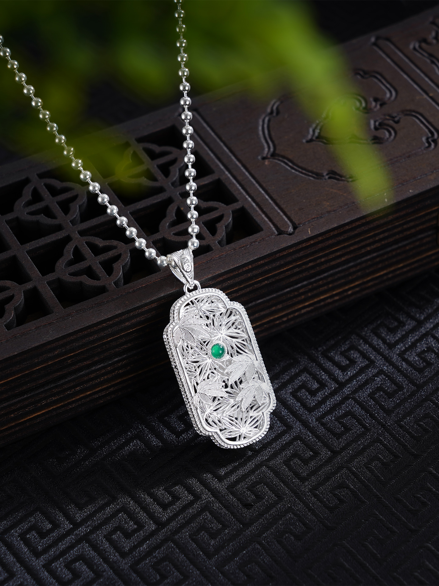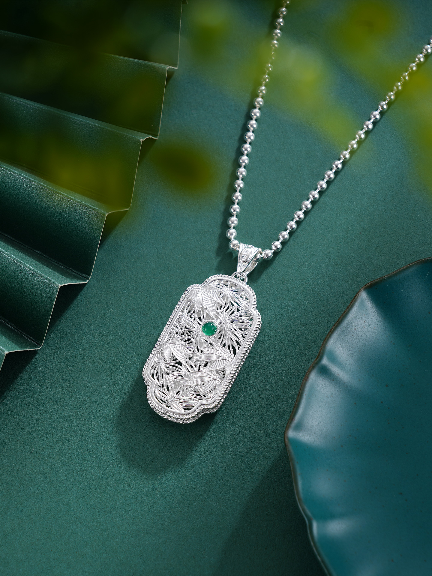 子佩集S990银【枫生水起】大号套链项链【DSDZ010】纯银花丝绿玉髓大师工坊原创作品枫叶2509