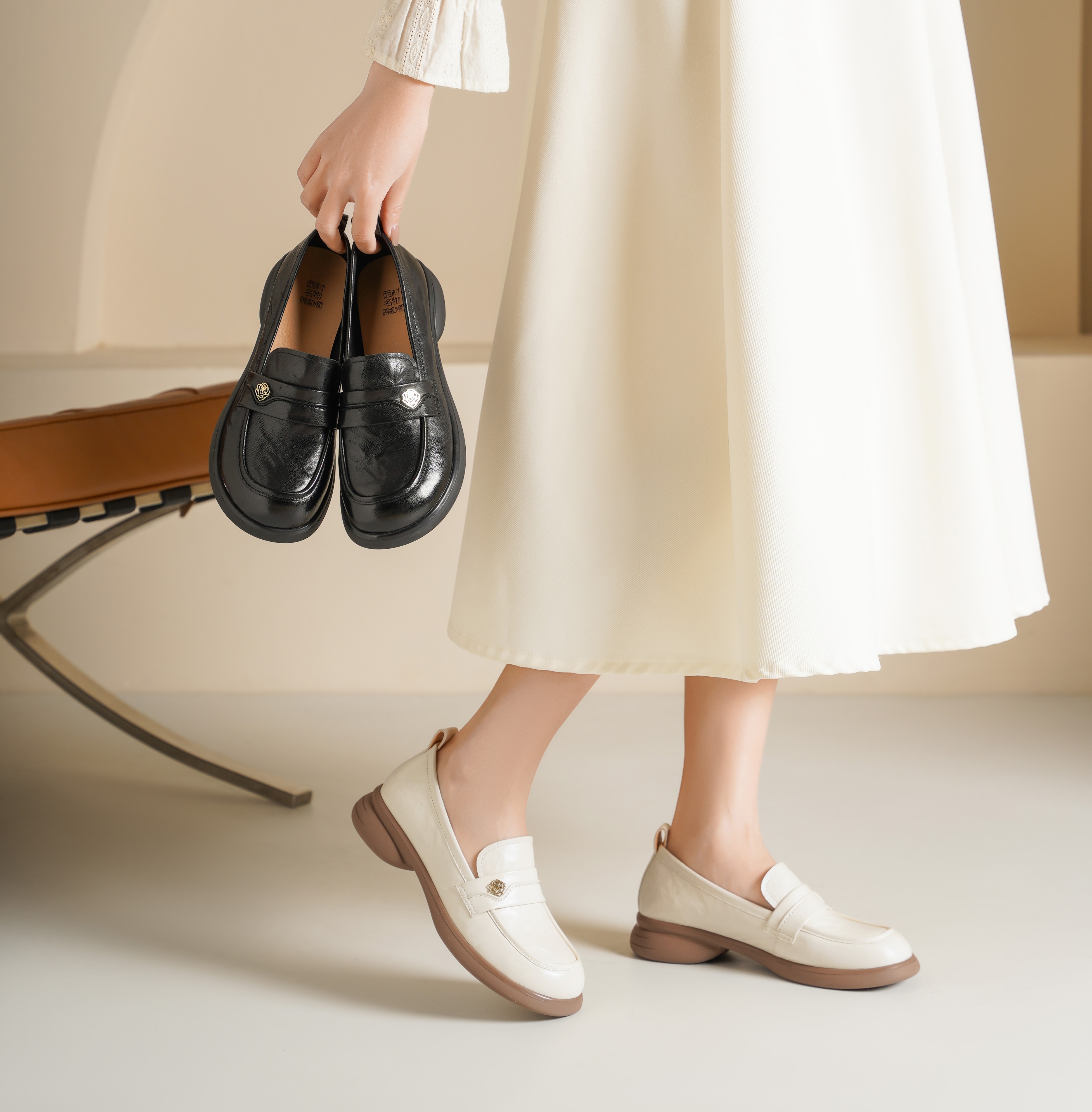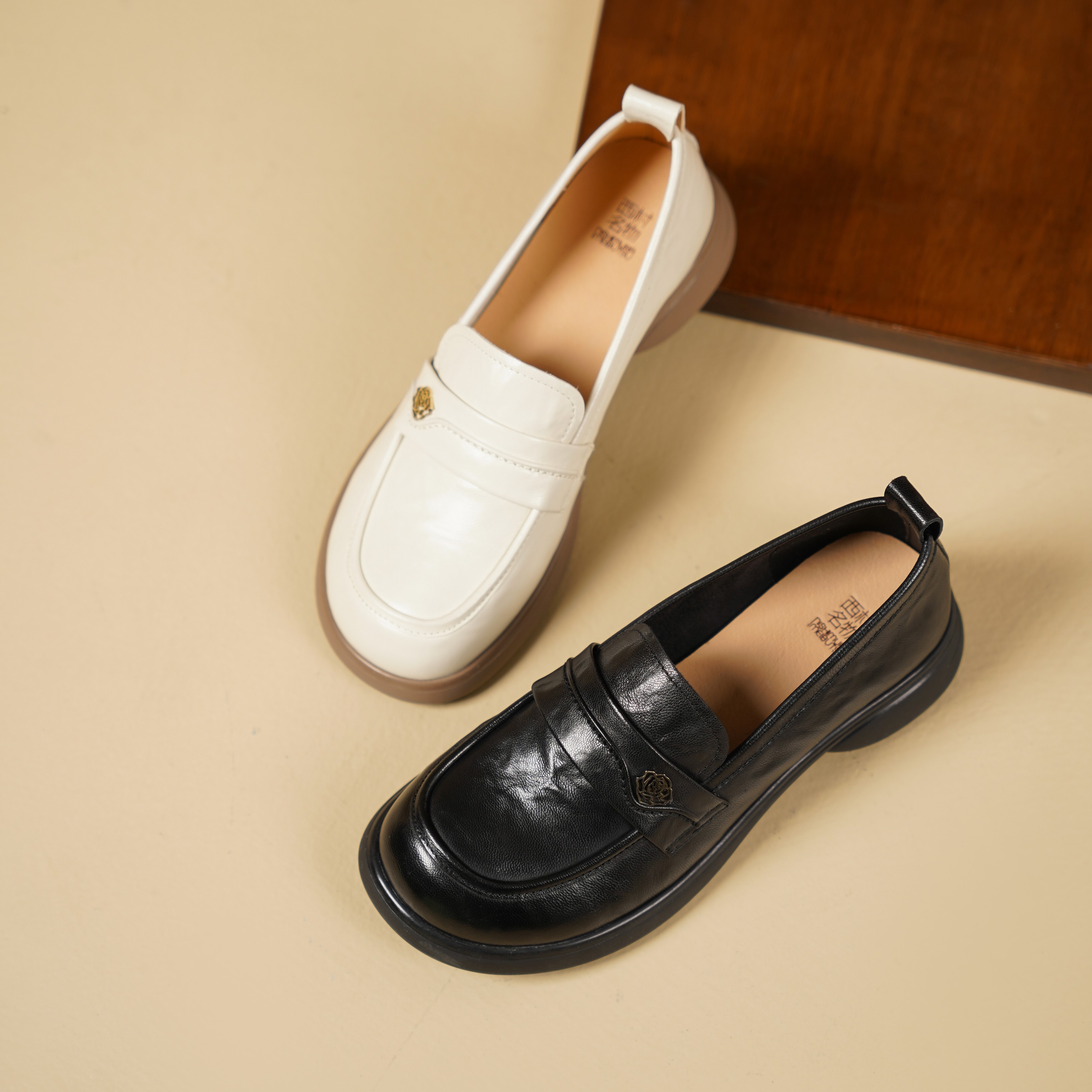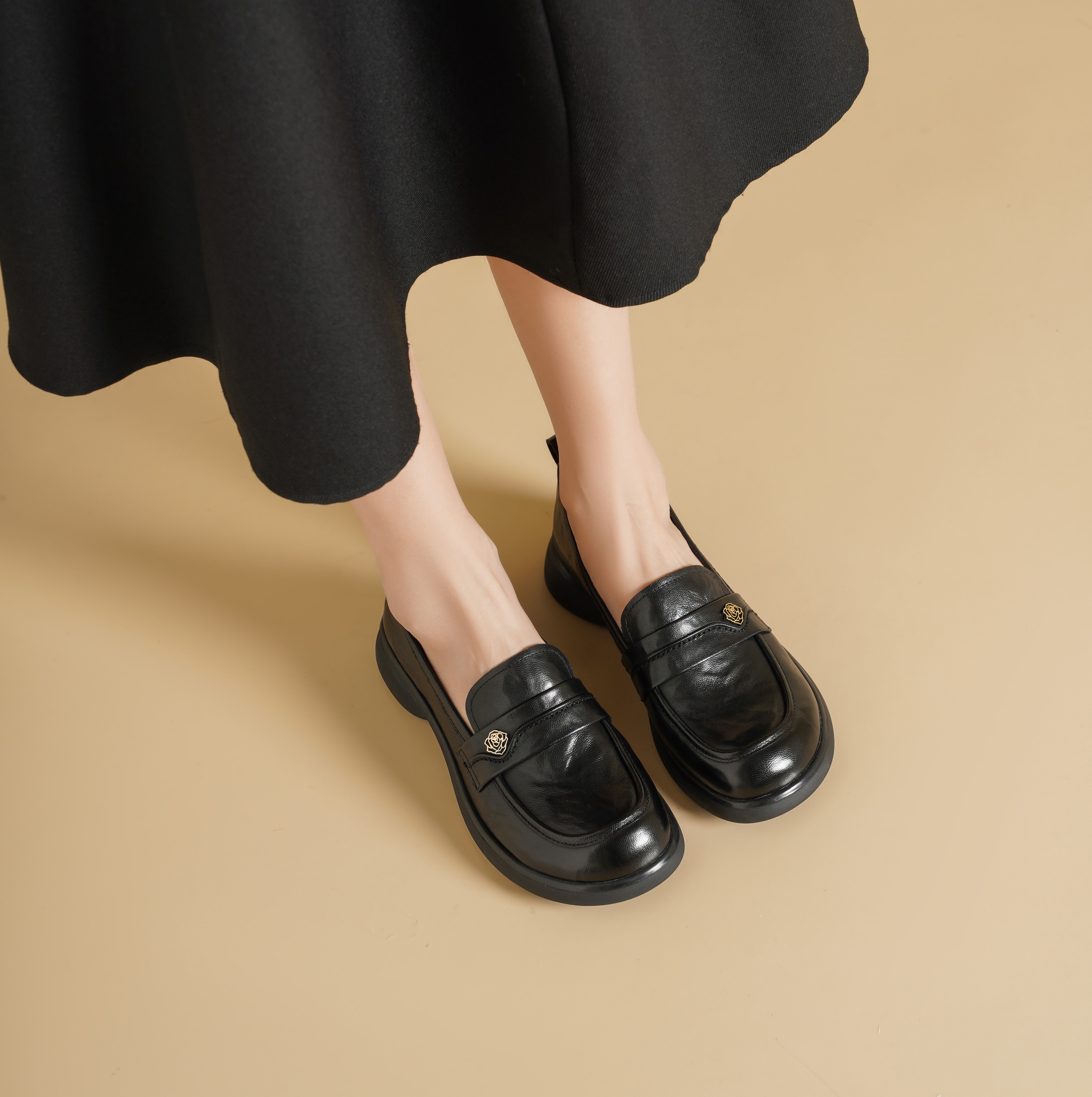 西村名物2025年春季新款厚底低跟舒适乐福鞋百搭通勤鞋T25AM15331
