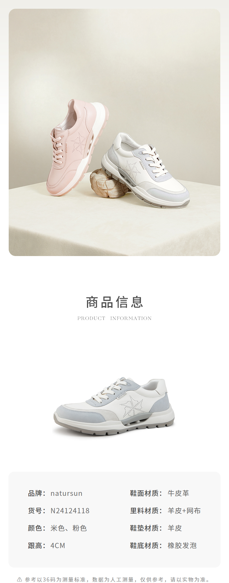 natursun运动鞋女秋季商场软底增高阿甘鞋休闲厚底德训鞋N24124118