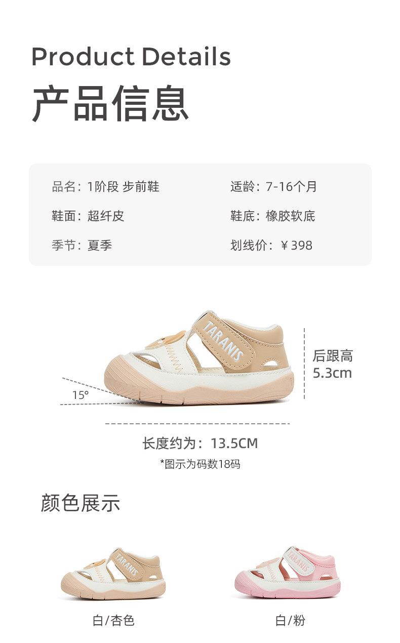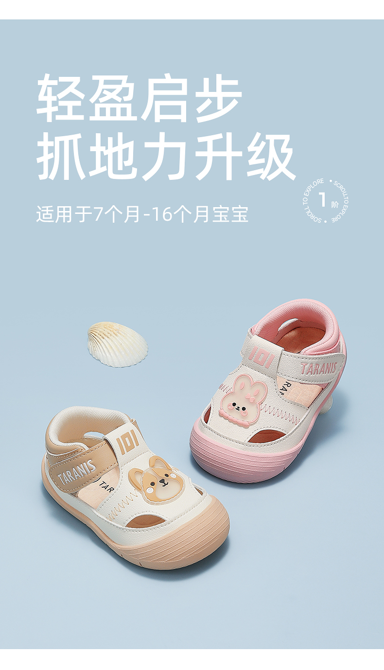 泰兰尼斯218户外男宝宝学步鞋春季新款防撞透气儿童鞋女童机能鞋 T01T5A5884