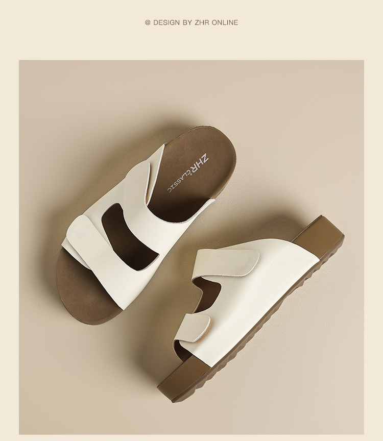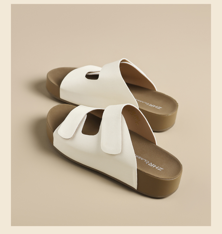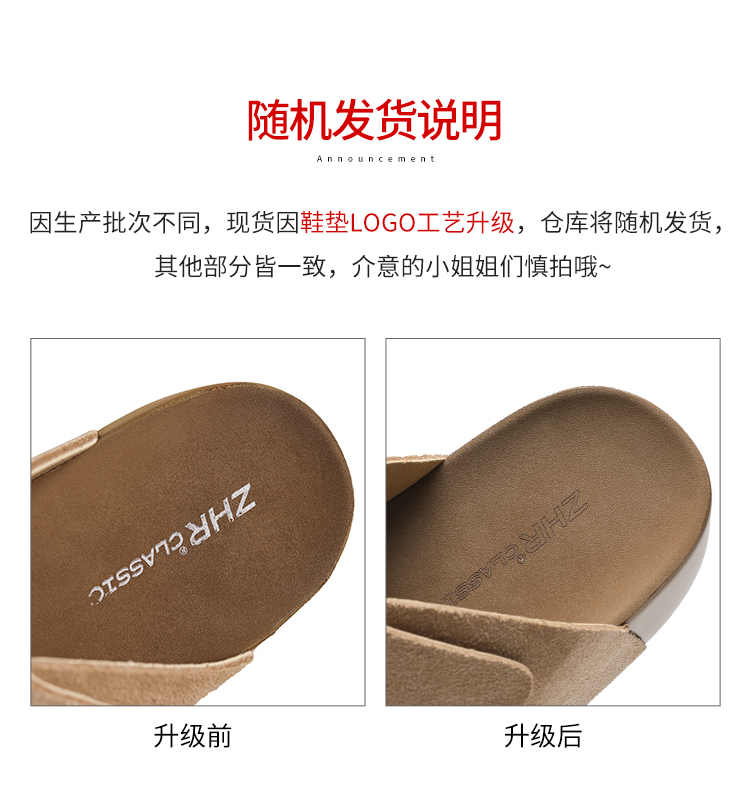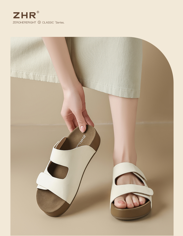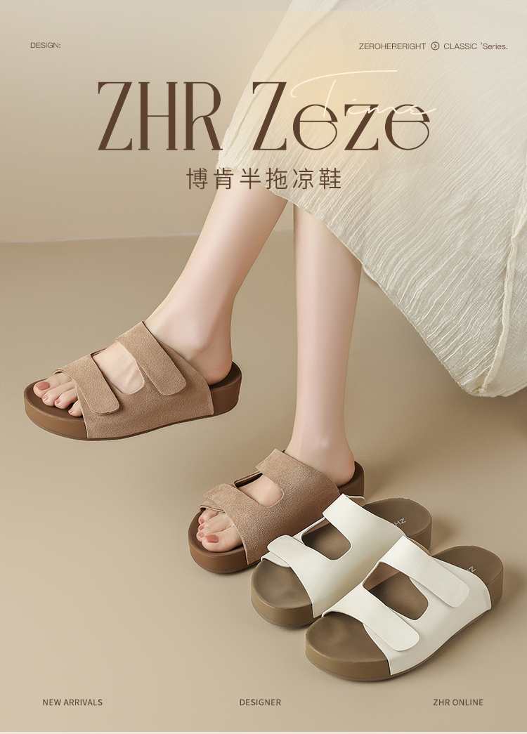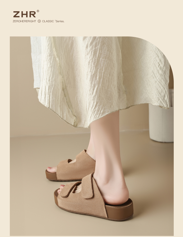ZHR凉鞋女2025新款夏季外穿百搭魔术贴配裙子凉拖鞋厚底勃肯半托