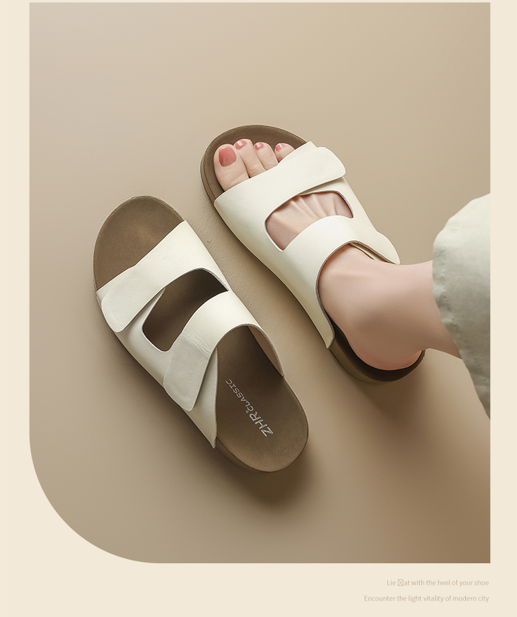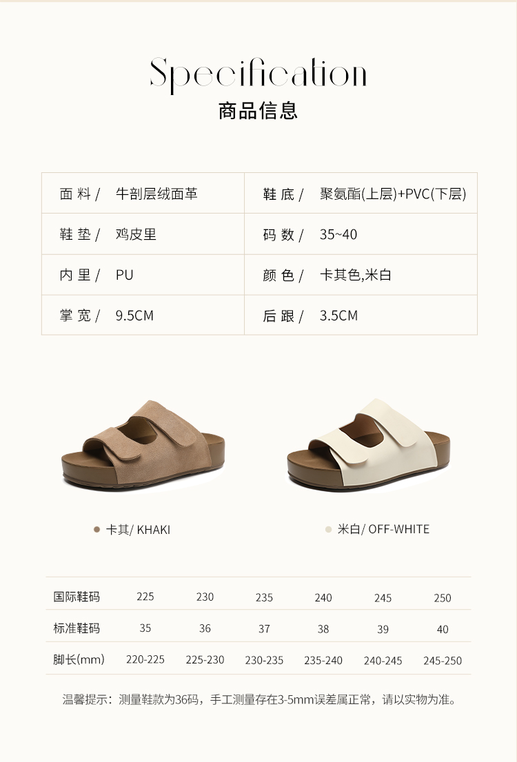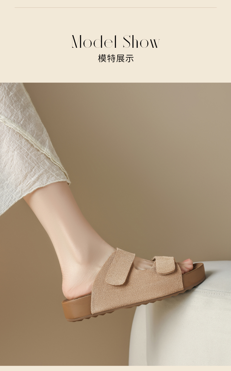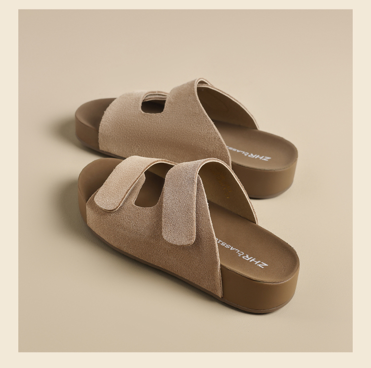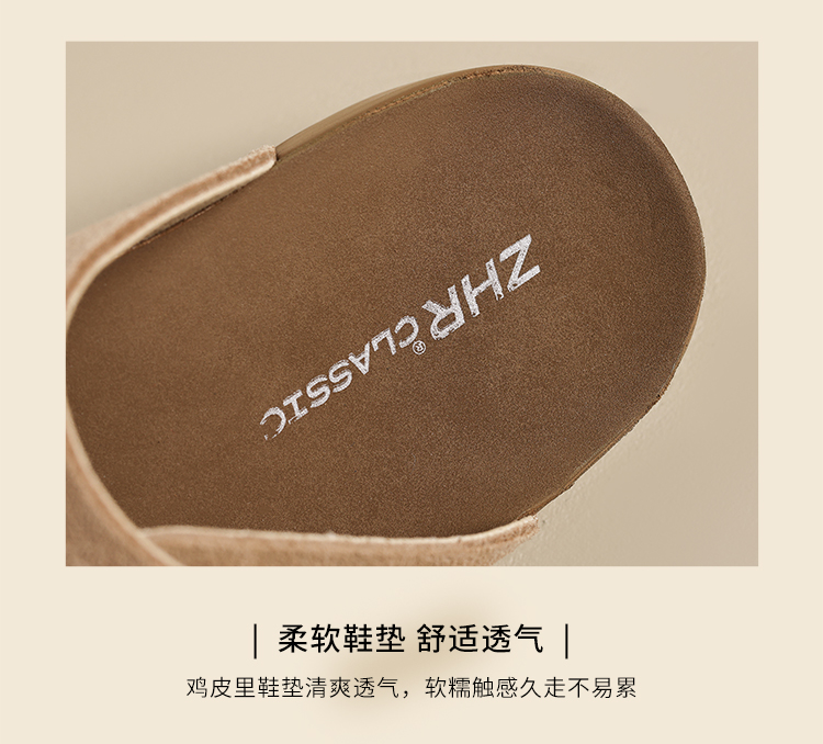 ZHR凉鞋女2025新款夏季外穿百搭魔术贴配裙子凉拖鞋厚底勃肯半托
