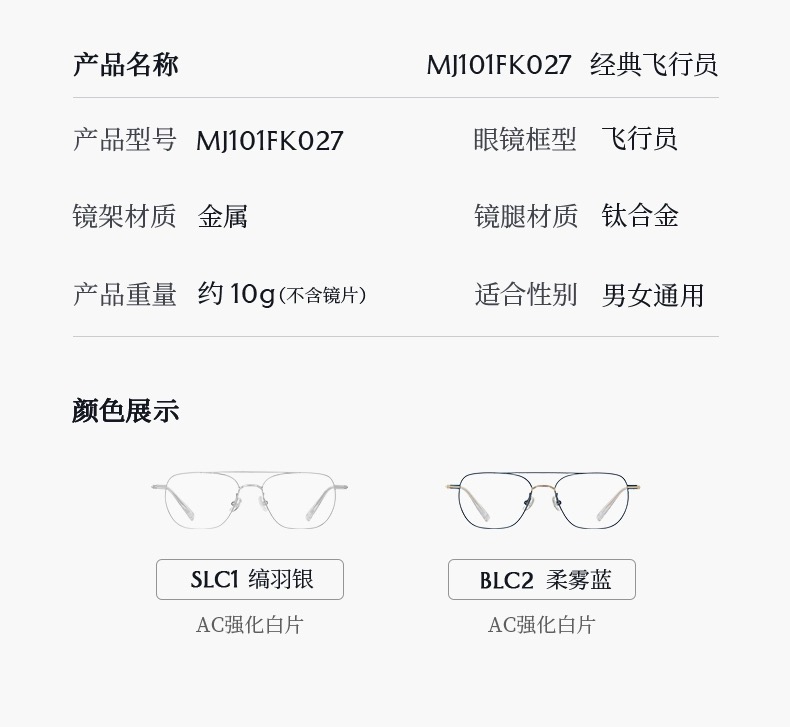 木九十镜框镜MJ101FK027