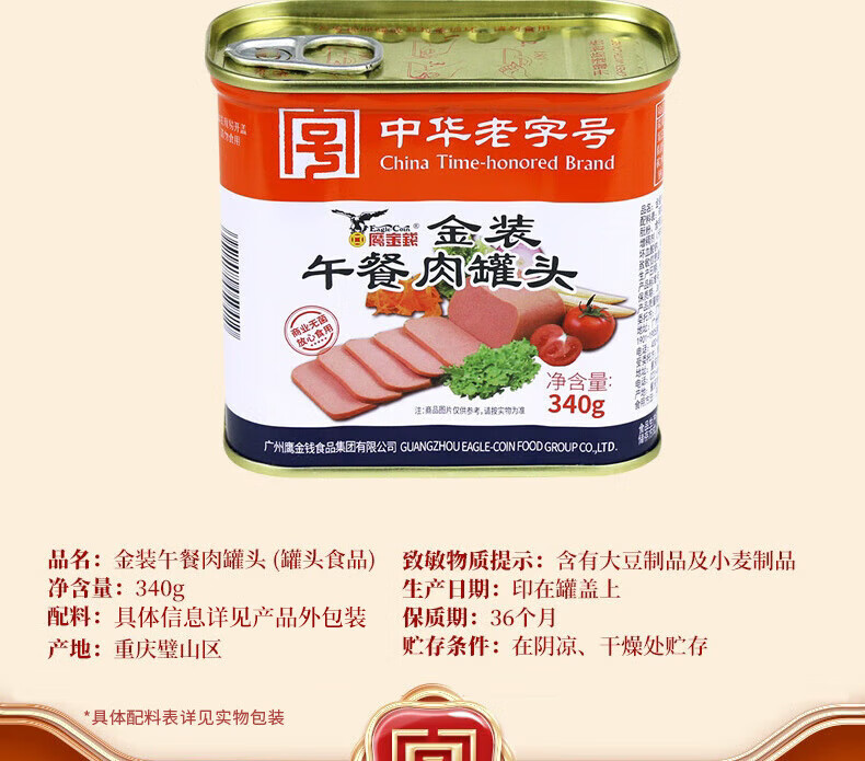 鹰金钱午餐肉罐头340g