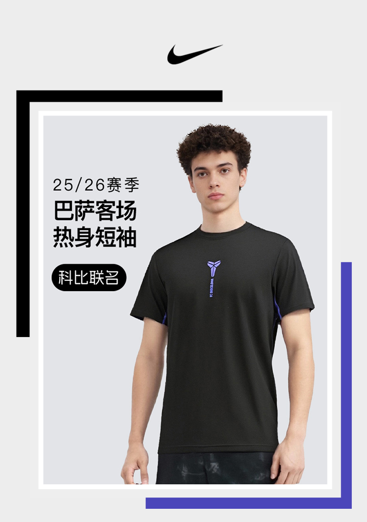 小李子正品耐克巴萨客场热身运动训练短袖成人男HQ1821-010