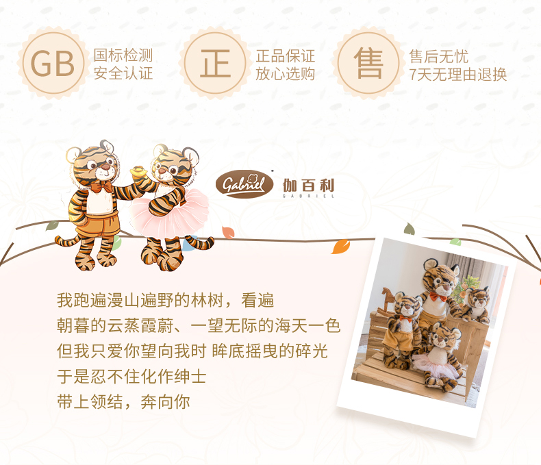 伽百利Gabriel老虎毛绒玩偶可爱抱枕公仔虎虎玩具新年礼物女孩
